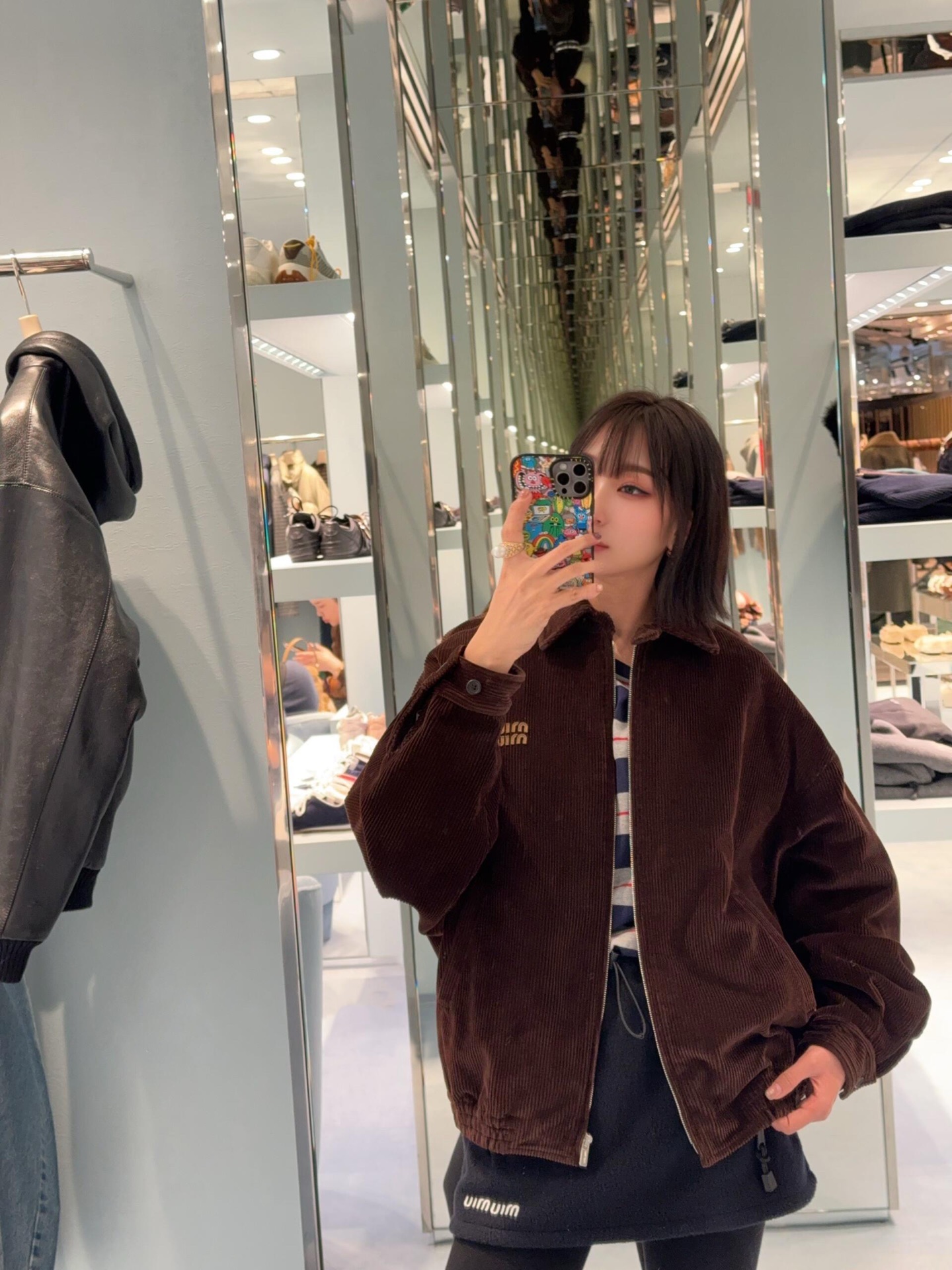 这款衣服是AAAAA 1:1 质量 (非常棒). 使用了和原版一模一样的材料. 商标部分也保持了和缪缪/Miu Miu一样. 图片拍摄是实物衣服拍摄, 您所收到的实物保证和我们图片一模一样.