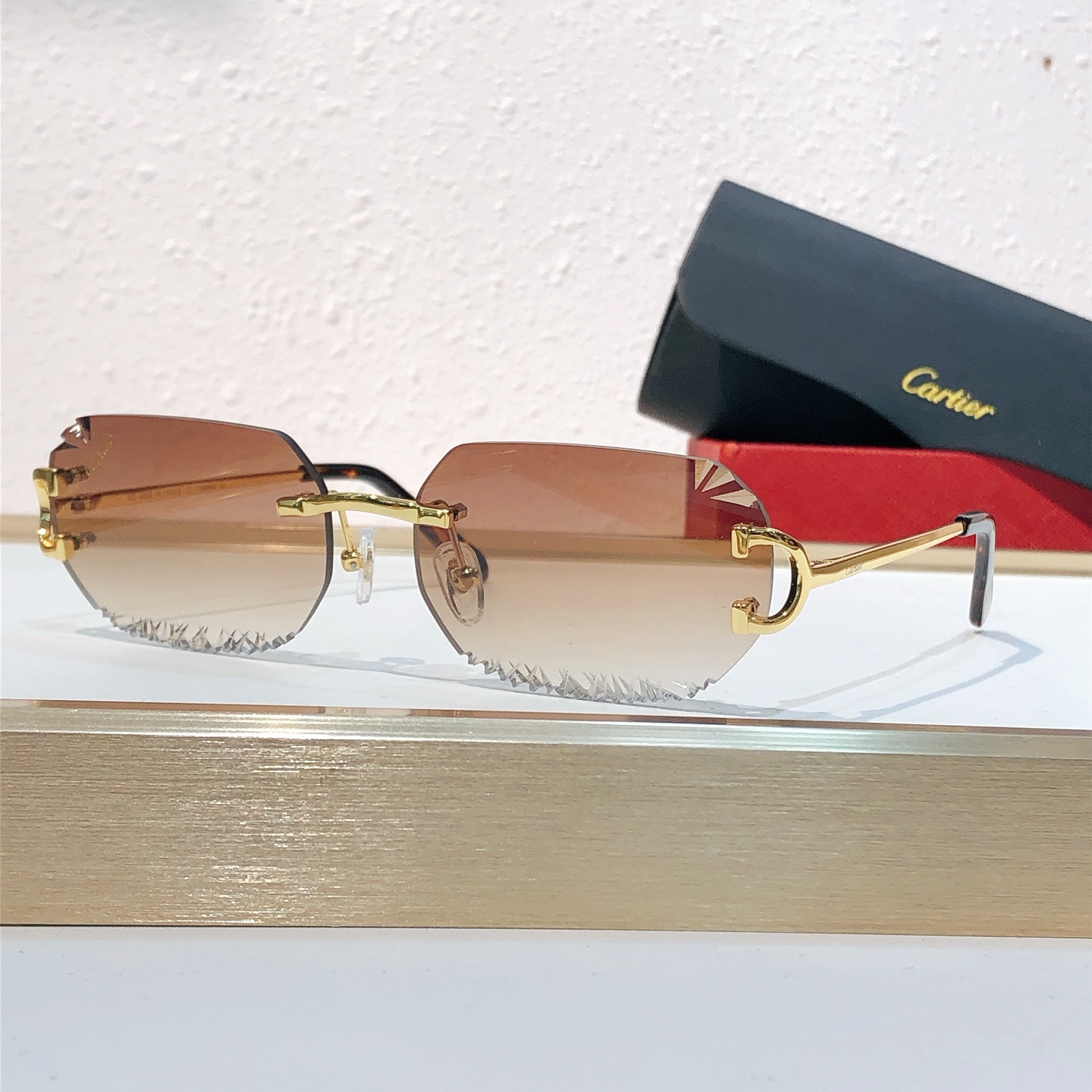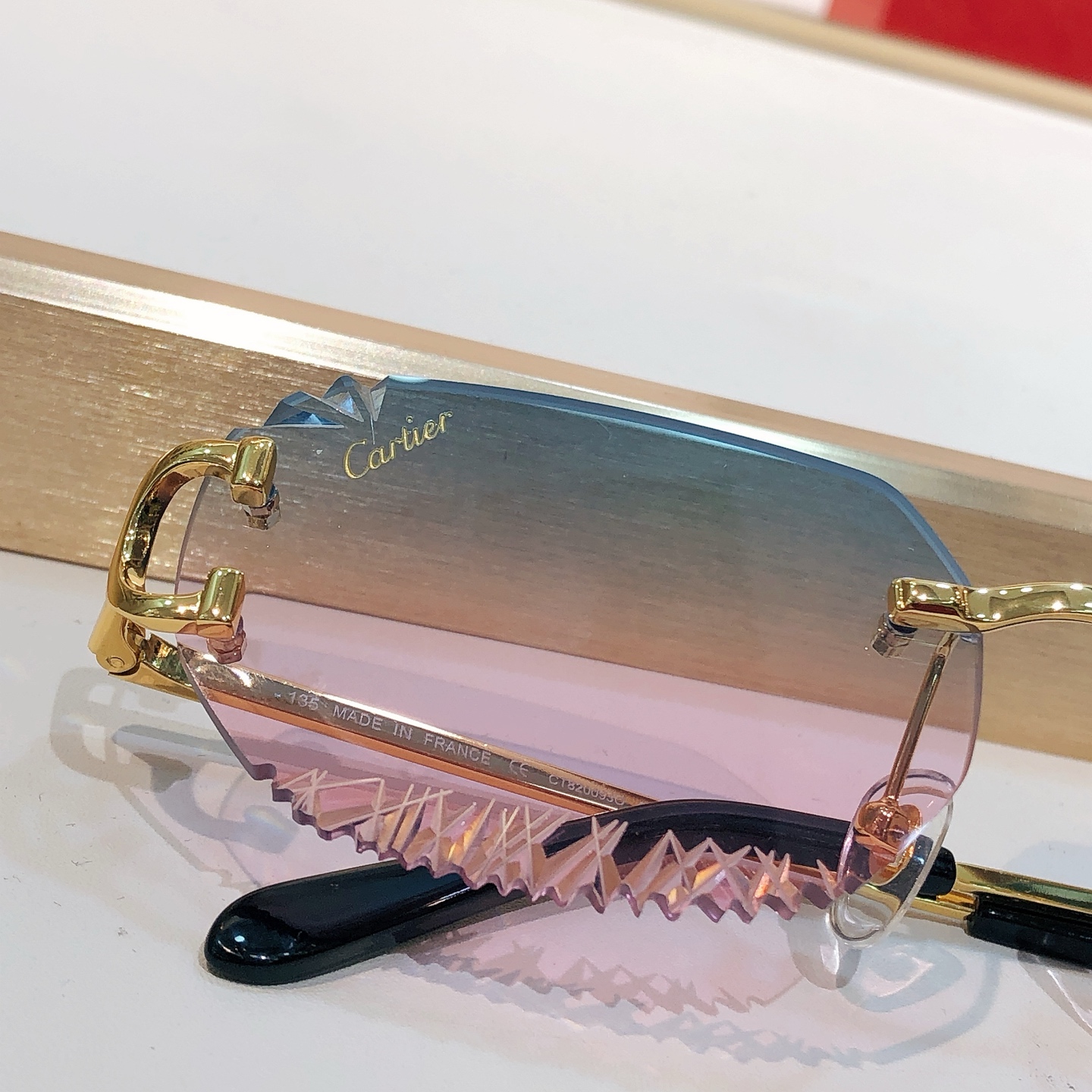 这款太阳眼镜是AAAAA 1:1 质量 (非常棒). 使用了和原版一模一样的材料. 商标部分也保持了和卡地亚/Cartier一样. 图片拍摄是实物太阳眼镜拍摄, 您所收到的实物保证和我们图片一模一样.