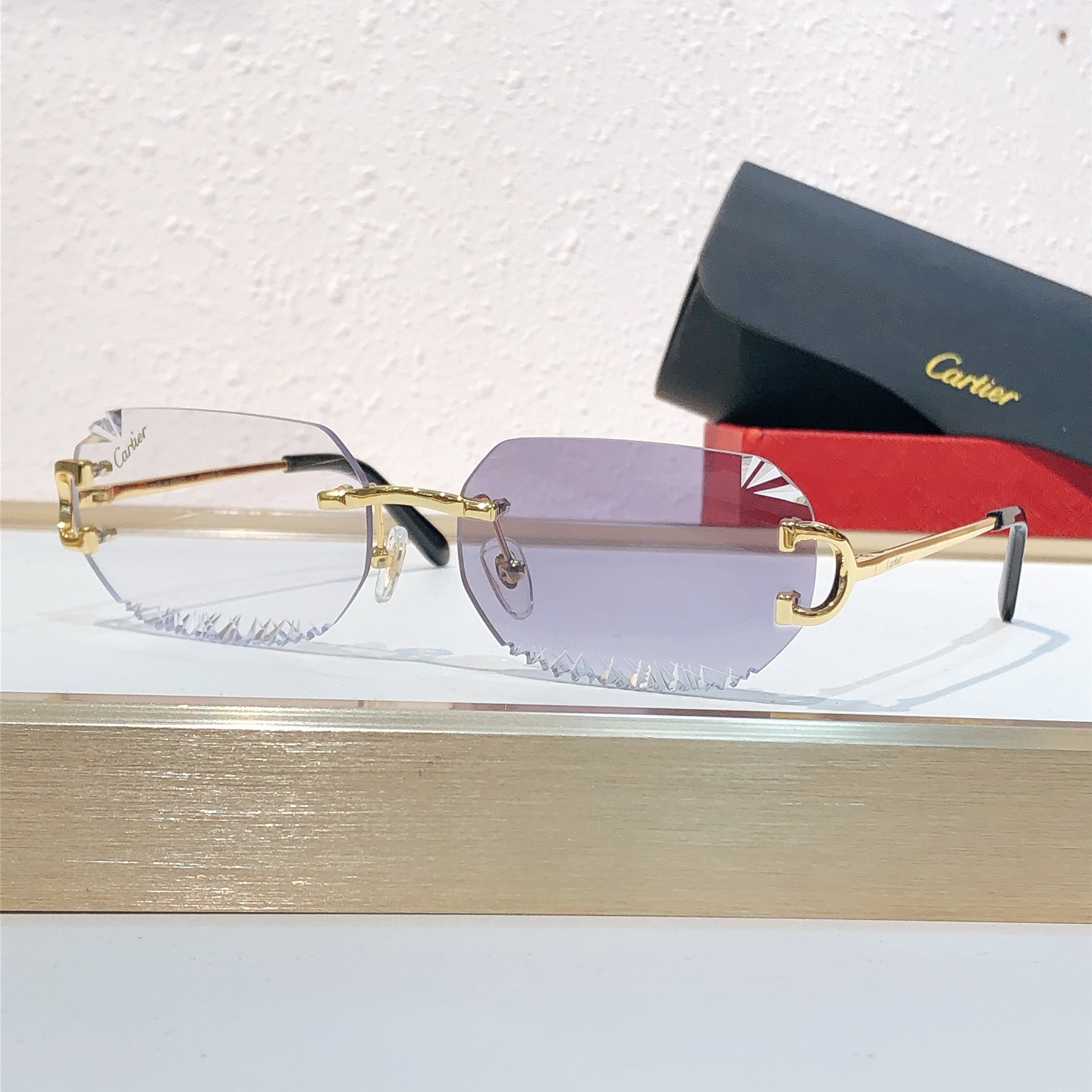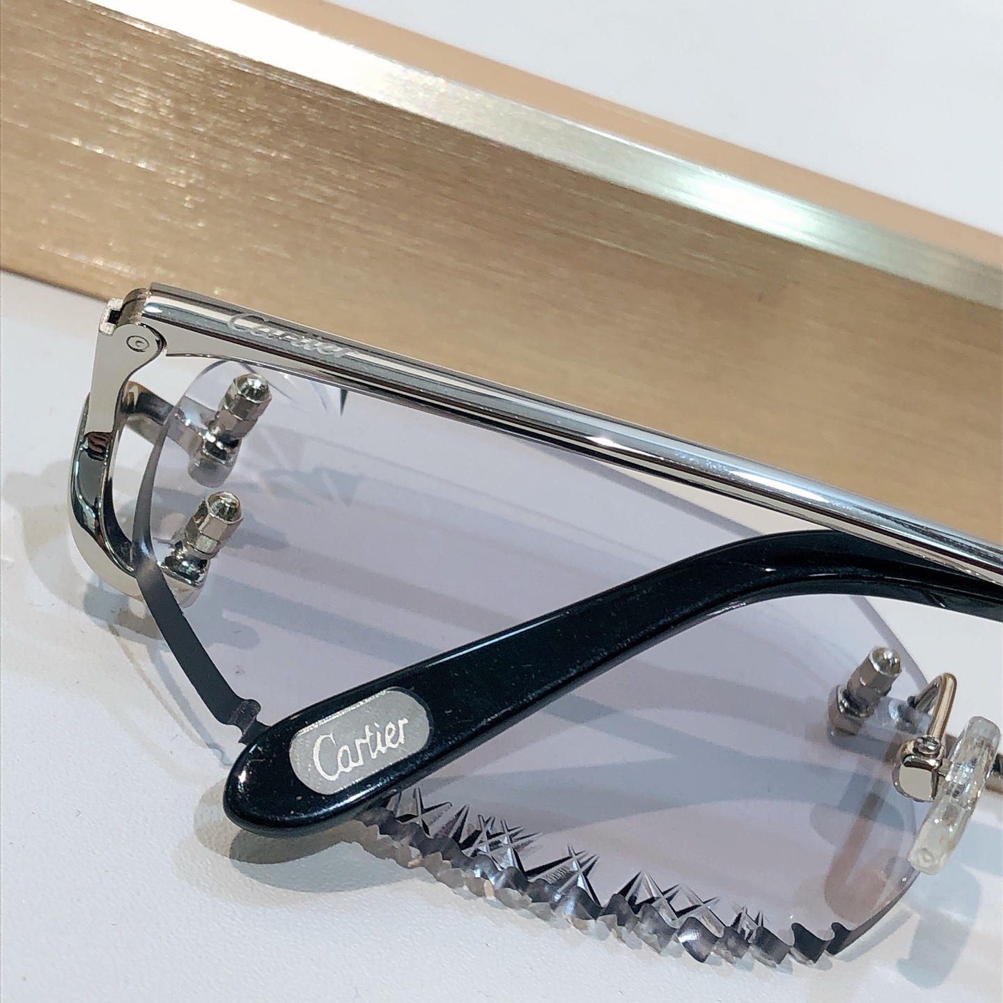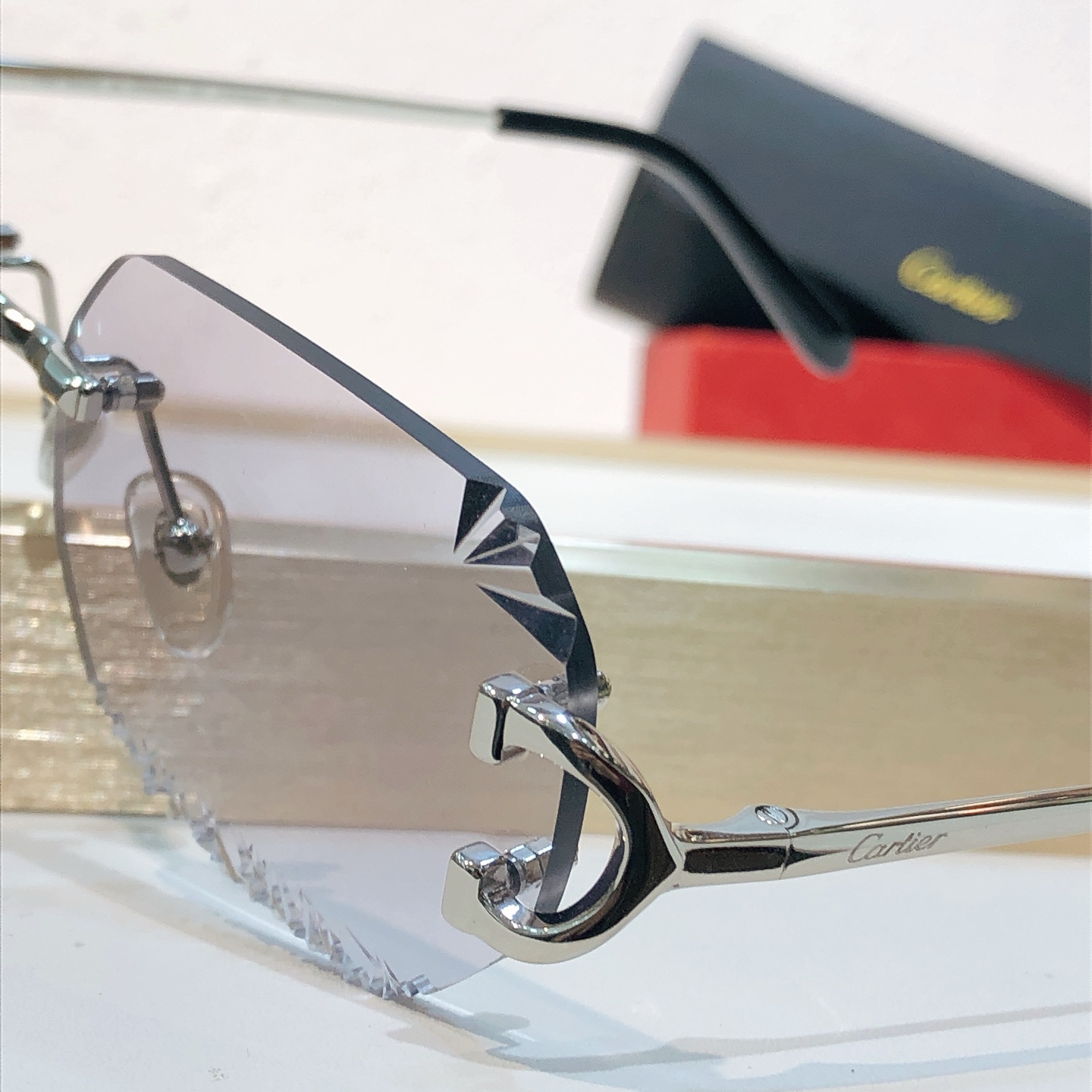 这款太阳眼镜是AAAAA 1:1 质量 (非常棒). 使用了和原版一模一样的材料. 商标部分也保持了和卡地亚/Cartier一样. 图片拍摄是实物太阳眼镜拍摄, 您所收到的实物保证和我们图片一模一样.