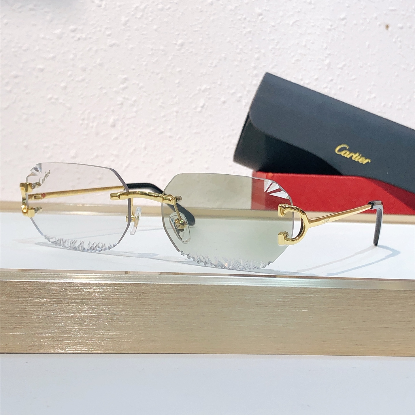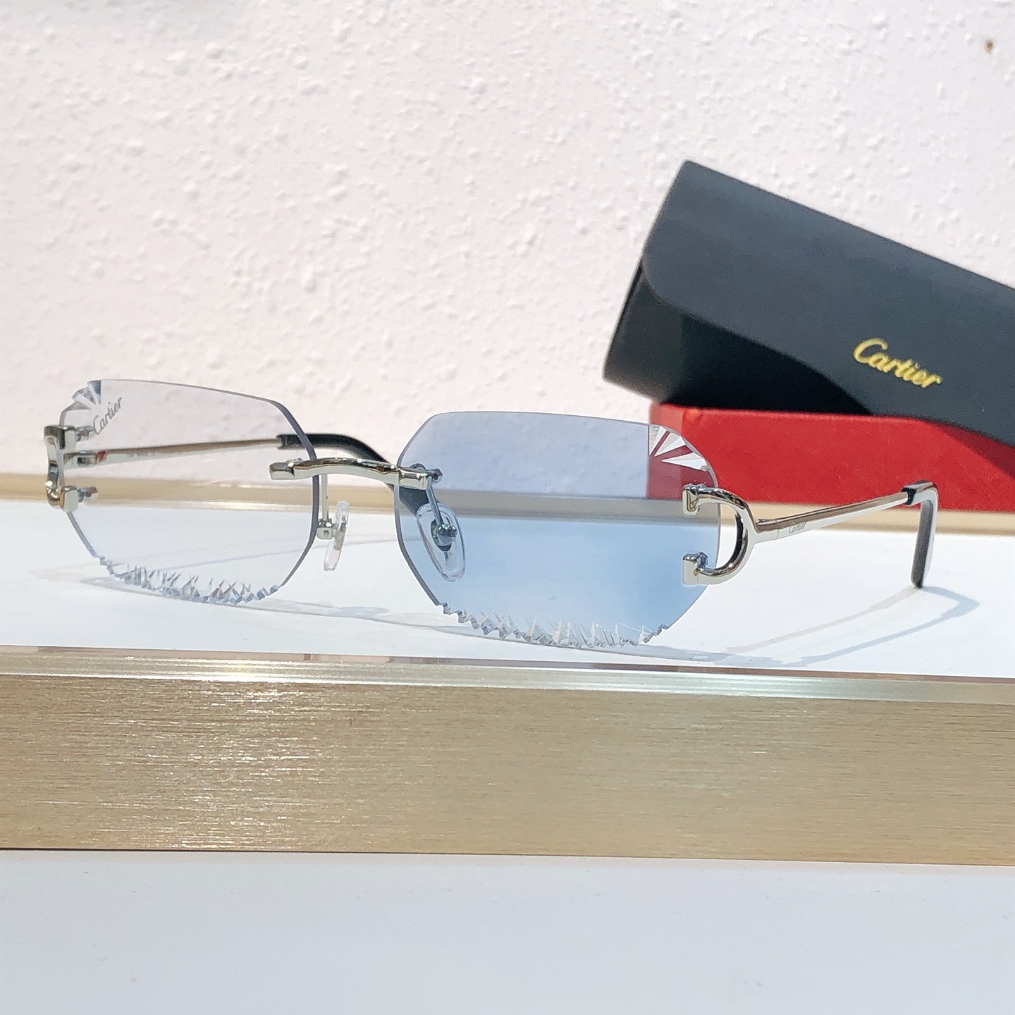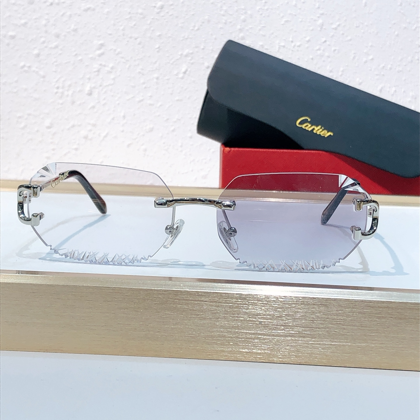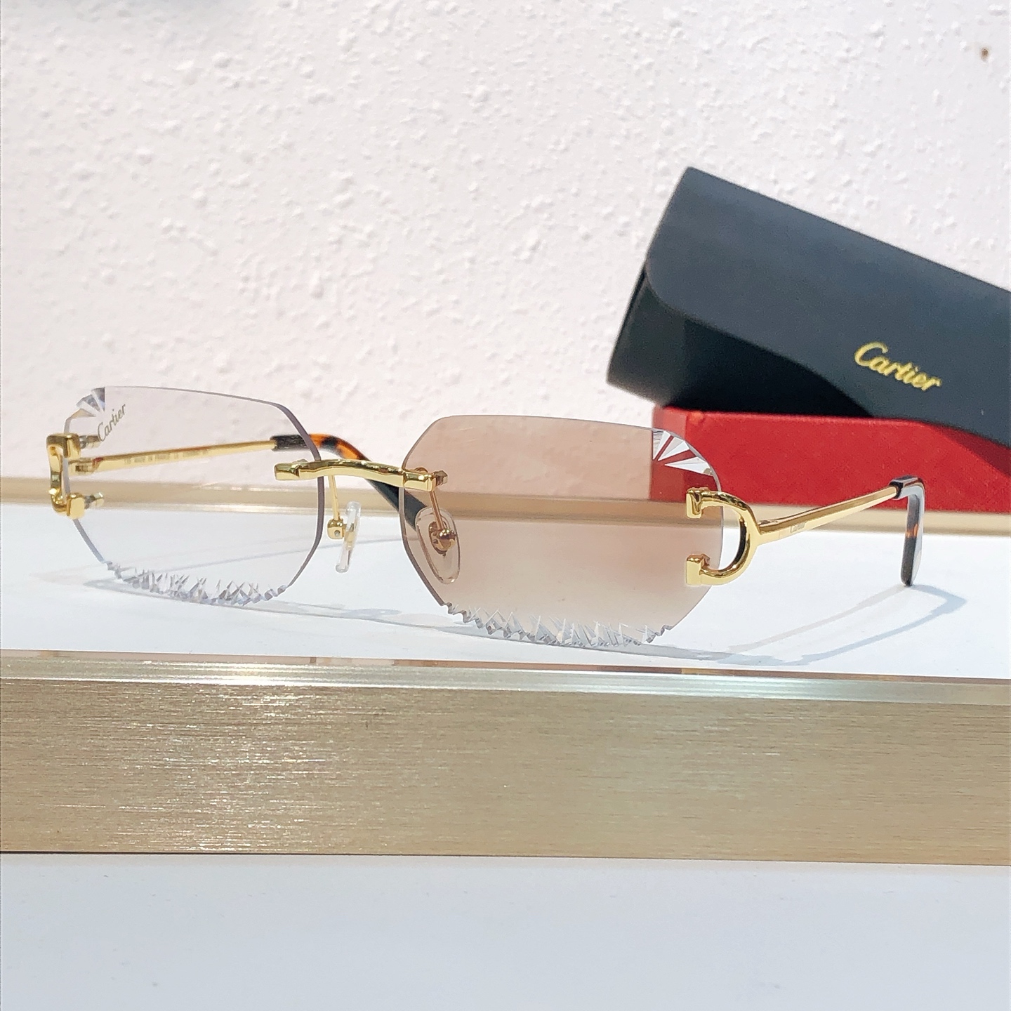 这款太阳眼镜是AAAAA 1:1 质量 (非常棒). 使用了和原版一模一样的材料. 商标部分也保持了和卡地亚/Cartier一样. 图片拍摄是实物太阳眼镜拍摄, 您所收到的实物保证和我们图片一模一样.