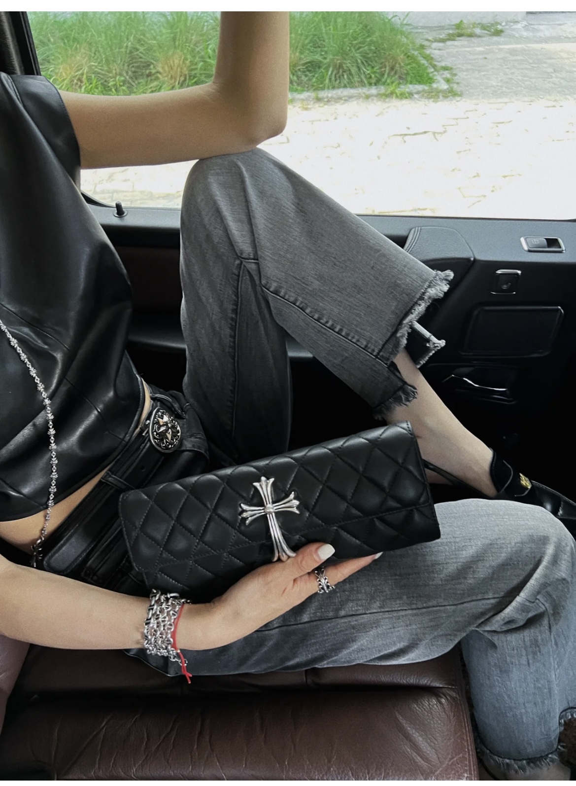 这款包包是AAAAA 1:1 质量 (非常棒). 使用了和原版一模一样的材料. 商标部分也保持了和克罗心/Chrome Hearts一样. 图片拍摄是实物包包拍摄, 您所收到的实物保证和我们图片一模一样.