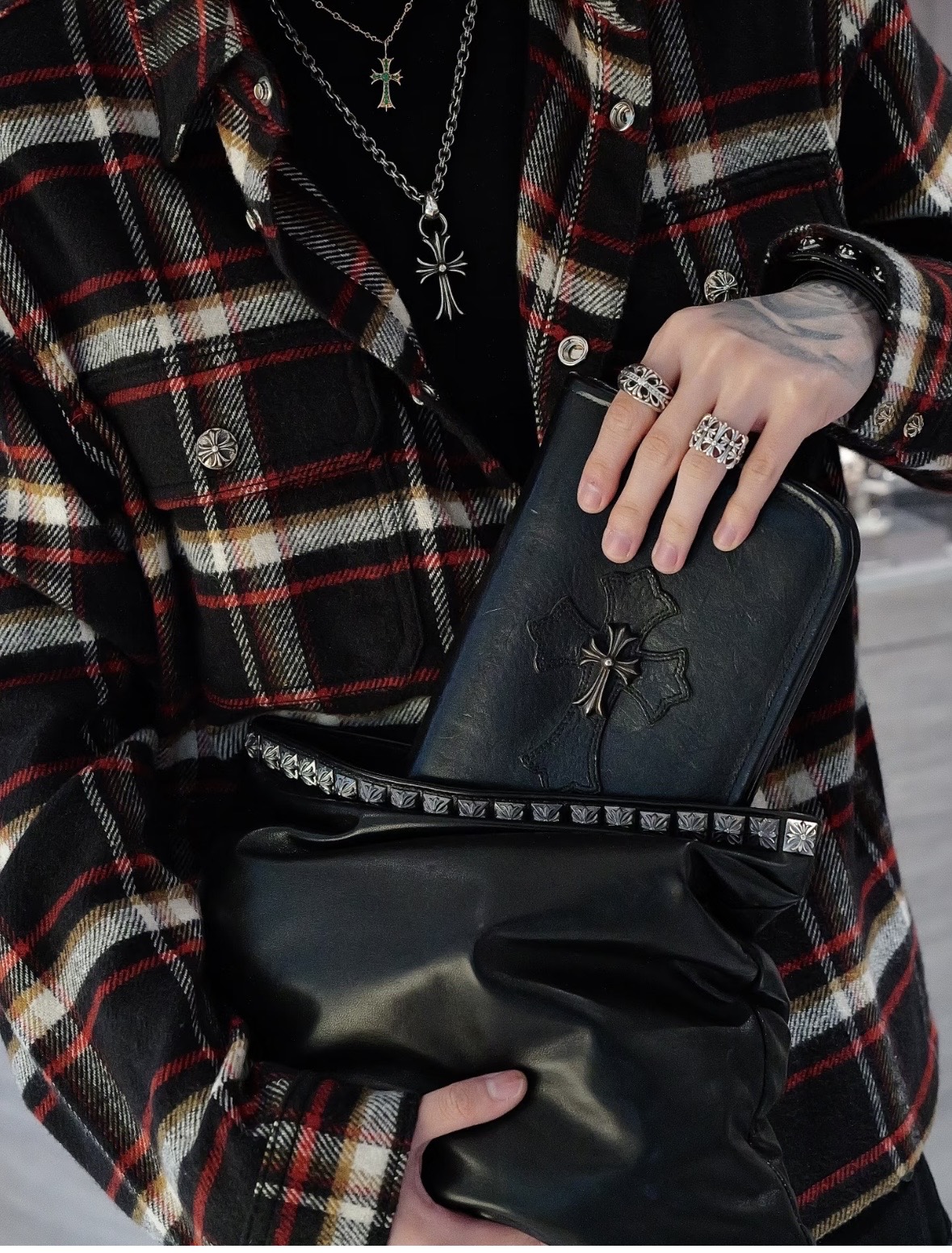 这款包包是AAAAA 1:1 质量 (非常棒). 使用了和原版一模一样的材料. 商标部分也保持了和克罗心/Chrome Hearts一样. 图片拍摄是实物包包拍摄, 您所收到的实物保证和我们图片一模一样.