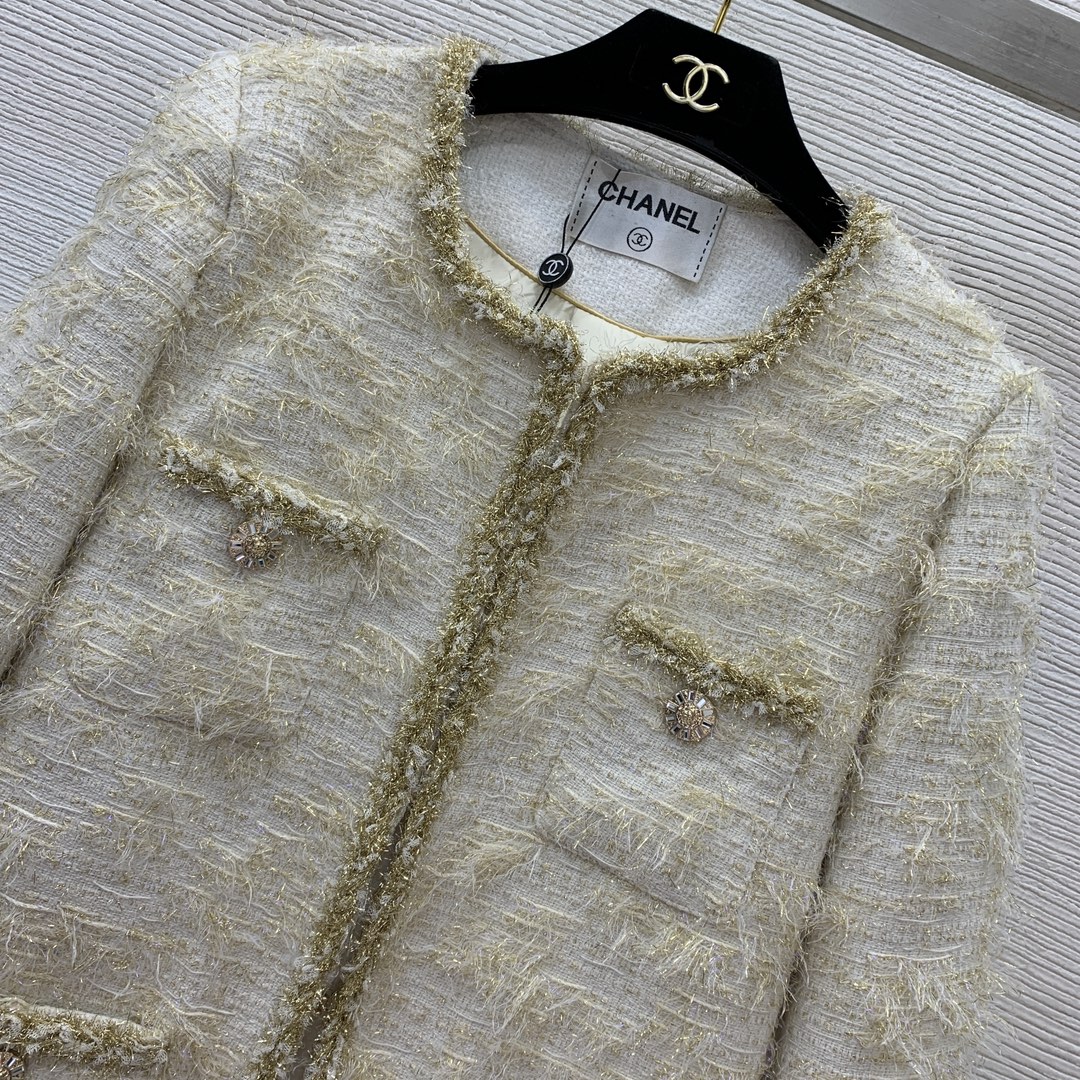 这款衣服是AAAAA 1:1 质量 (非常棒). 使用了和原版一模一样的材料. 商标部分也保持了和香奈儿/Chanel一样. 图片拍摄是实物衣服拍摄, 您所收到的实物保证和我们图片一模一样.
