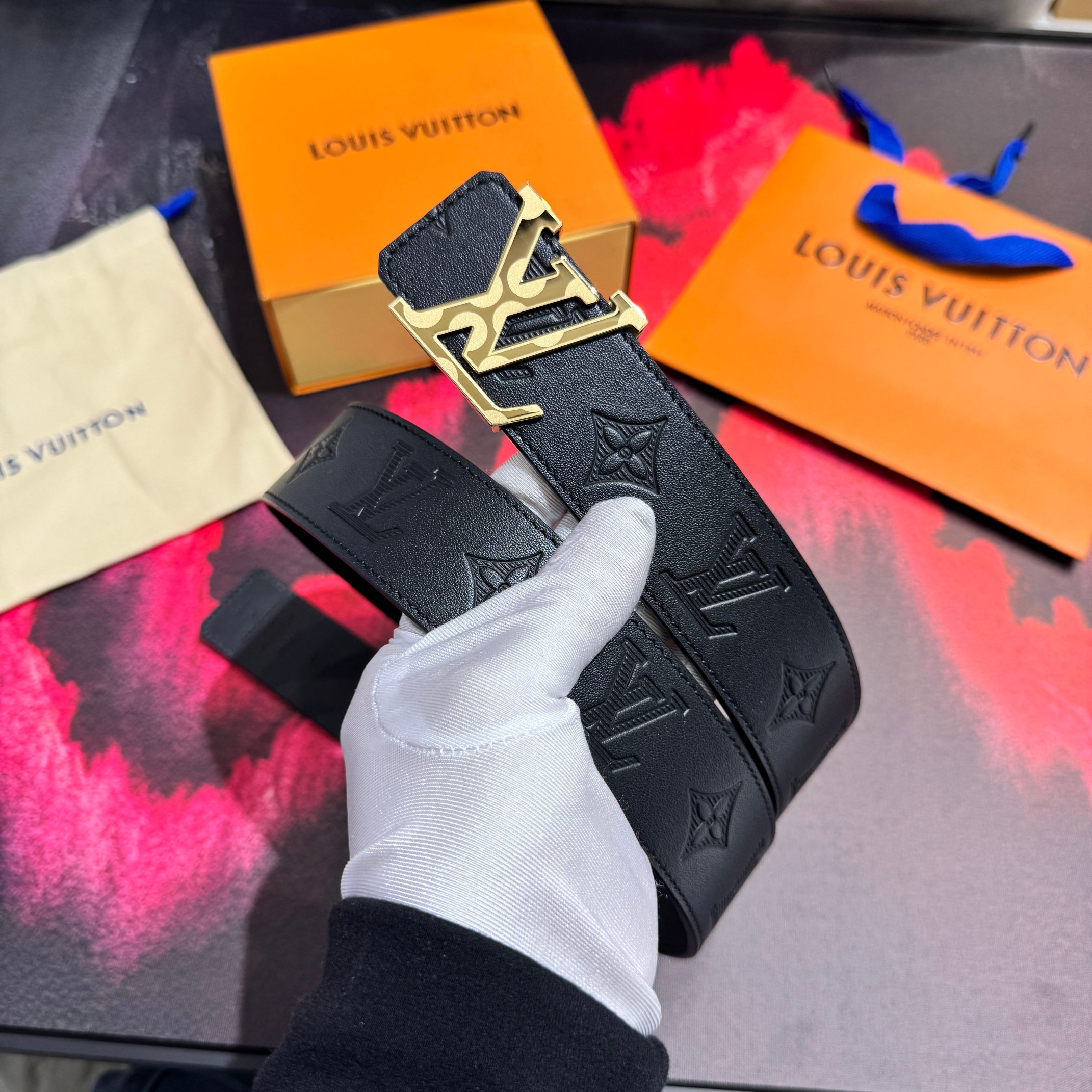 这款皮带是AAAAA 1:1 质量 (非常棒). 使用了和原版一模一样的材料. 商标部分也保持了和路易威登/Louis Vuitton一样. 图片拍摄是实物皮带拍摄, 您所收到的实物保证和我们图片一模一样.