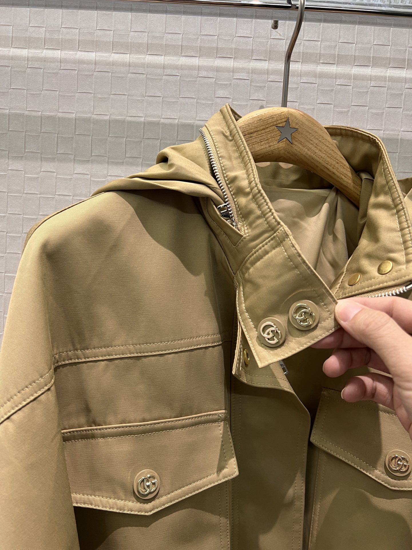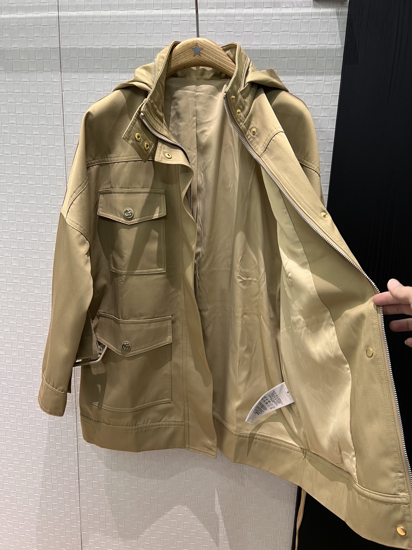 这款衣服是AAAAA 1:1 质量 (非常棒). 使用了和原版一模一样的材料. 商标部分也保持了和古奇/Gucci一样. 图片拍摄是实物衣服拍摄, 您所收到的实物保证和我们图片一模一样.