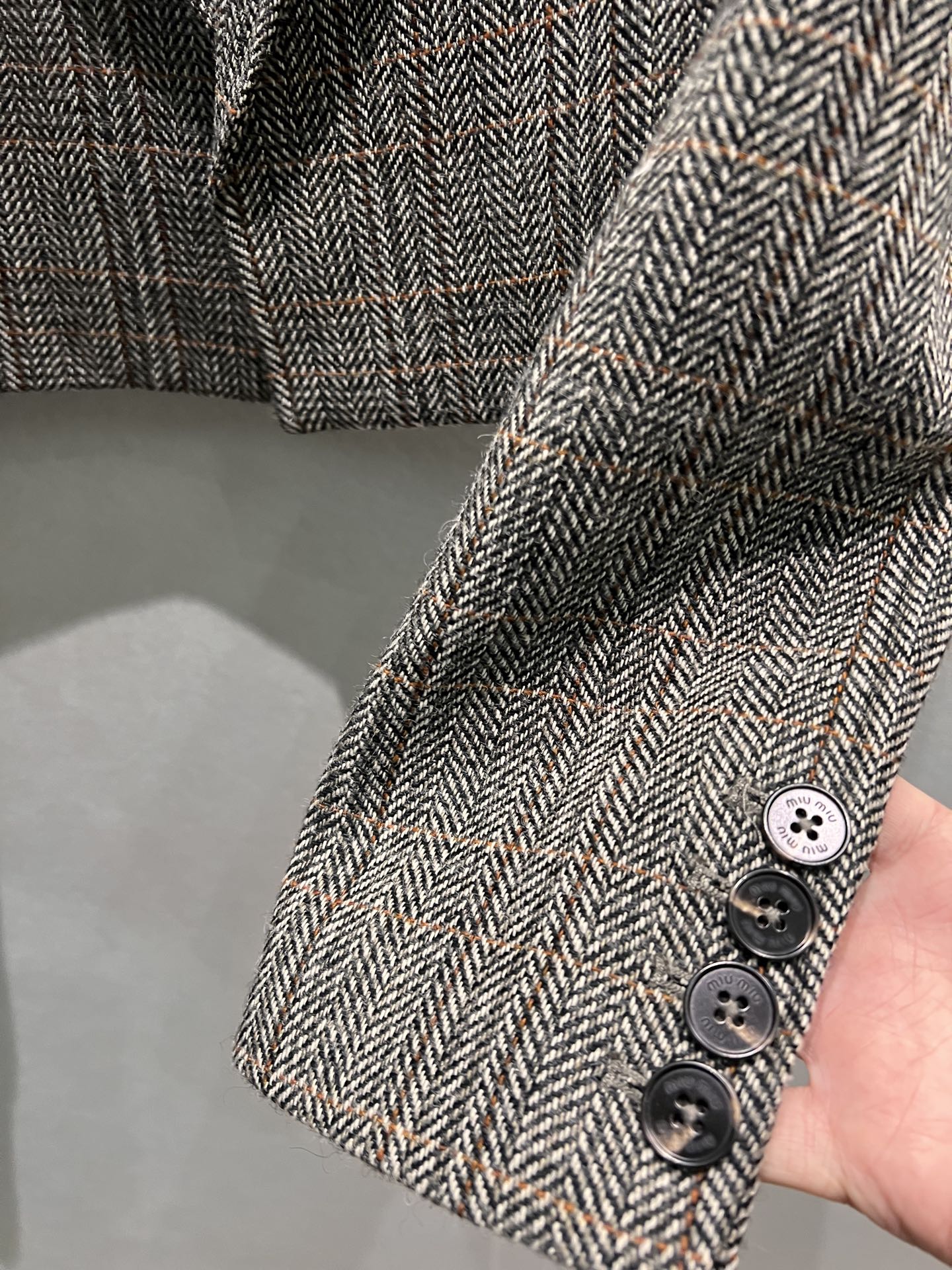 这款衣服是AAAAA 1:1 质量 (非常棒). 使用了和原版一模一样的材料. 商标部分也保持了和缪缪/Miu Miu一样. 图片拍摄是实物衣服拍摄, 您所收到的实物保证和我们图片一模一样.