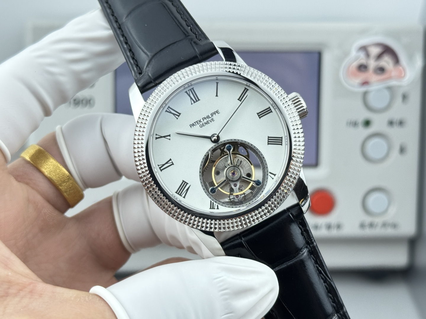 这款手表是AAAAA 1:1 质量 (非常棒). 使用了和原版一模一样的材料. 商标部分也保持了和百达翡丽/Patek Philippe一样. 图片拍摄是实物手表拍摄, 您所收到的实物保证和我们图片一模一样.