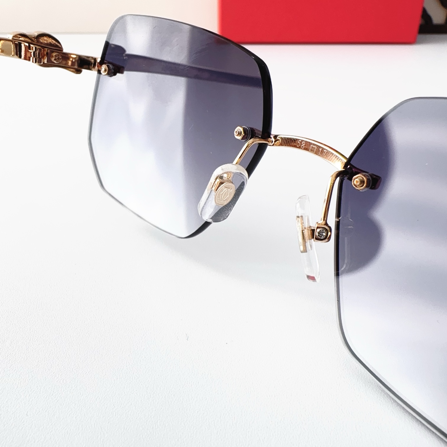 这款太阳眼镜是AAAAA 1:1 质量 (非常棒). 使用了和原版一模一样的材料. 商标部分也保持了和卡地亚/Cartier一样. 图片拍摄是实物太阳眼镜拍摄, 您所收到的实物保证和我们图片一模一样.