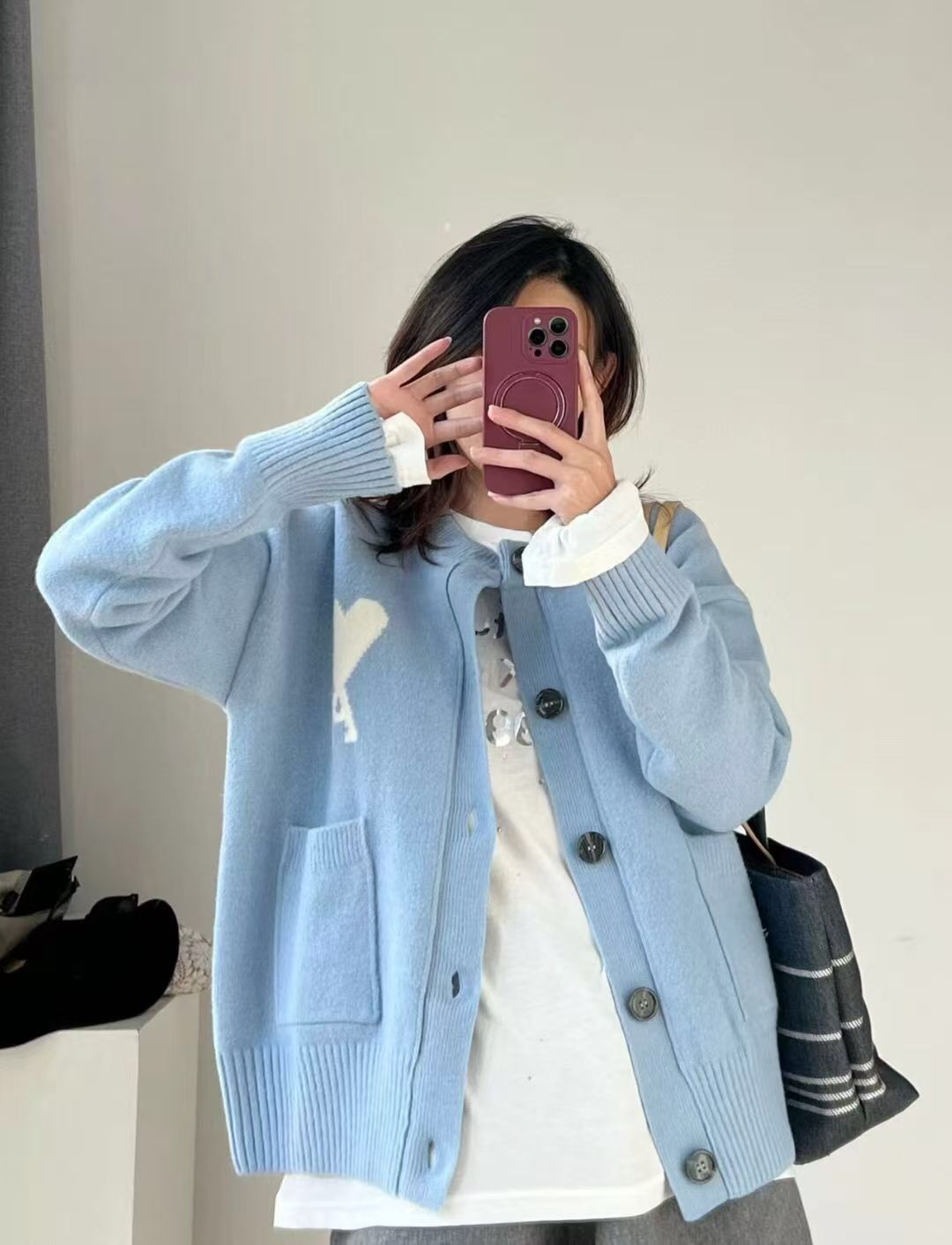 这款衣服是AAAAA 1:1 质量 (非常棒). 使用了和原版一模一样的材料. 商标部分也保持了和Ami一样. 图片拍摄是实物衣服拍摄, 您所收到的实物保证和我们图片一模一样.