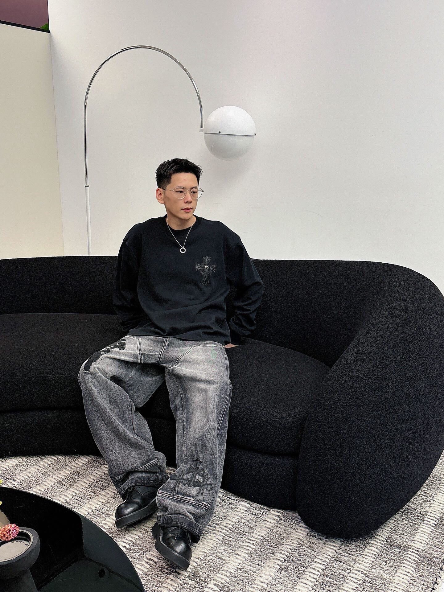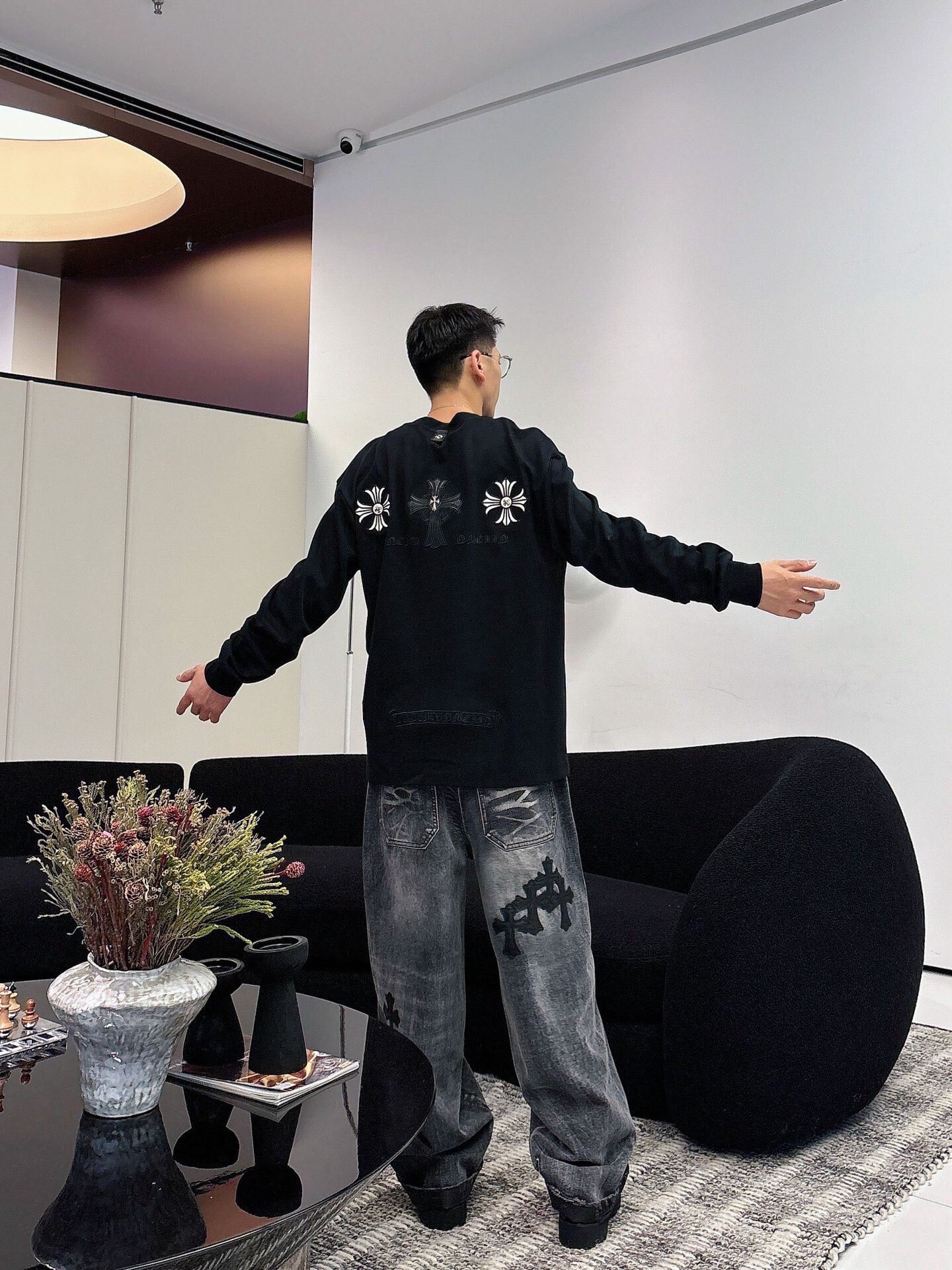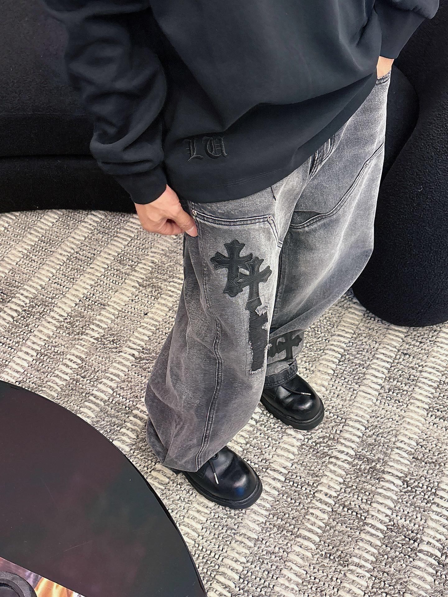 这款衣服是AAAAA 1:1 质量 (非常棒). 使用了和原版一模一样的材料. 商标部分也保持了和克罗心/Chrome Hearts一样. 图片拍摄是实物衣服拍摄, 您所收到的实物保证和我们图片一模一样.