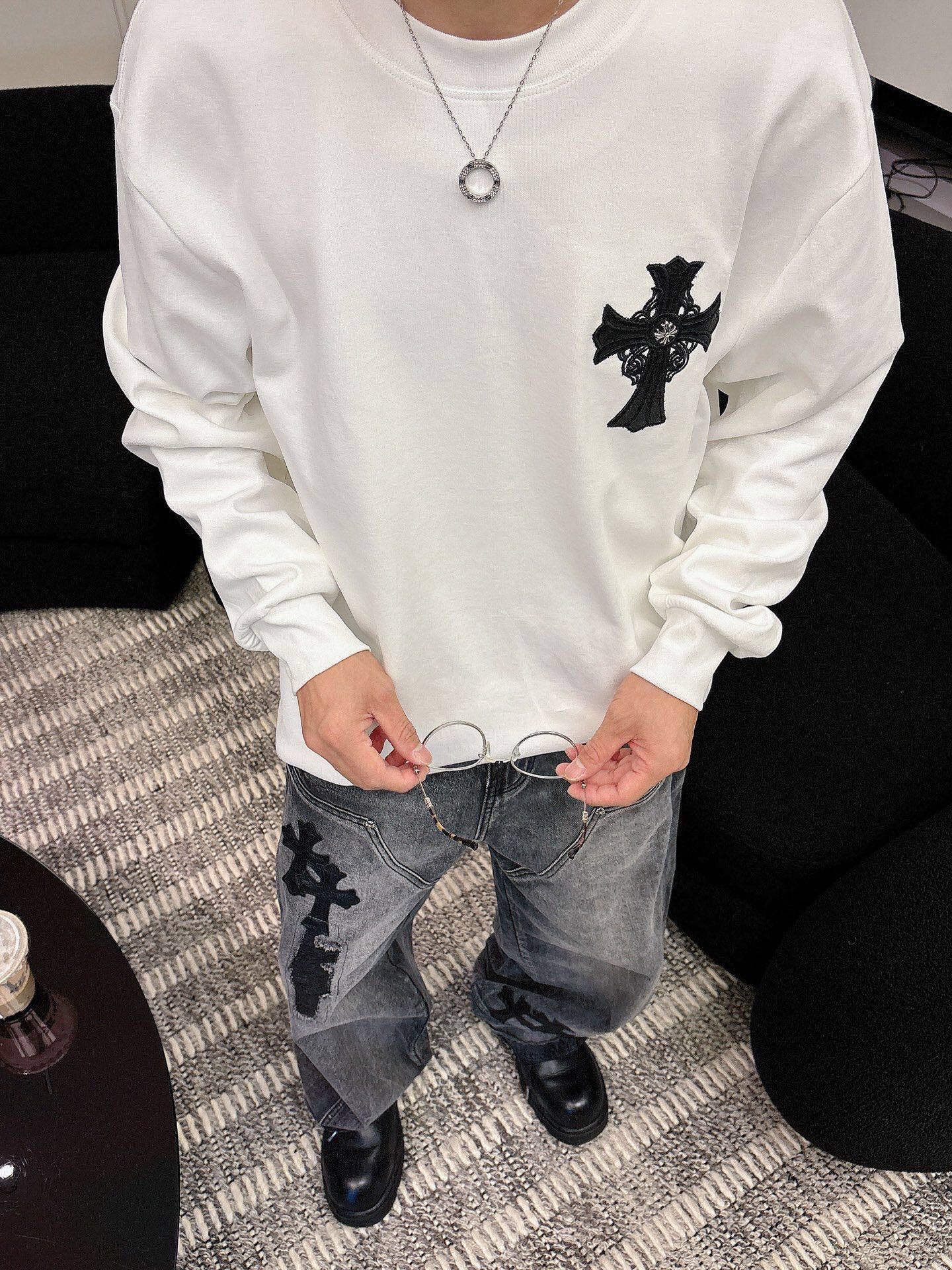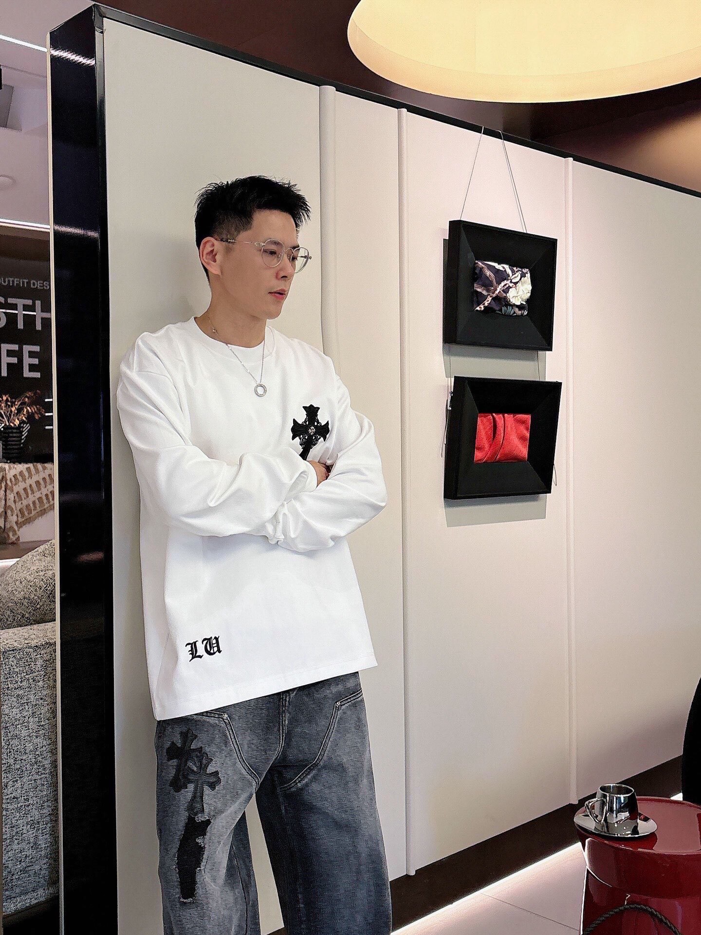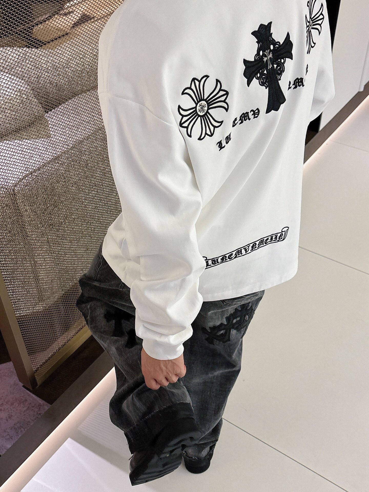 这款衣服是AAAAA 1:1 质量 (非常棒). 使用了和原版一模一样的材料. 商标部分也保持了和克罗心/Chrome Hearts一样. 图片拍摄是实物衣服拍摄, 您所收到的实物保证和我们图片一模一样.