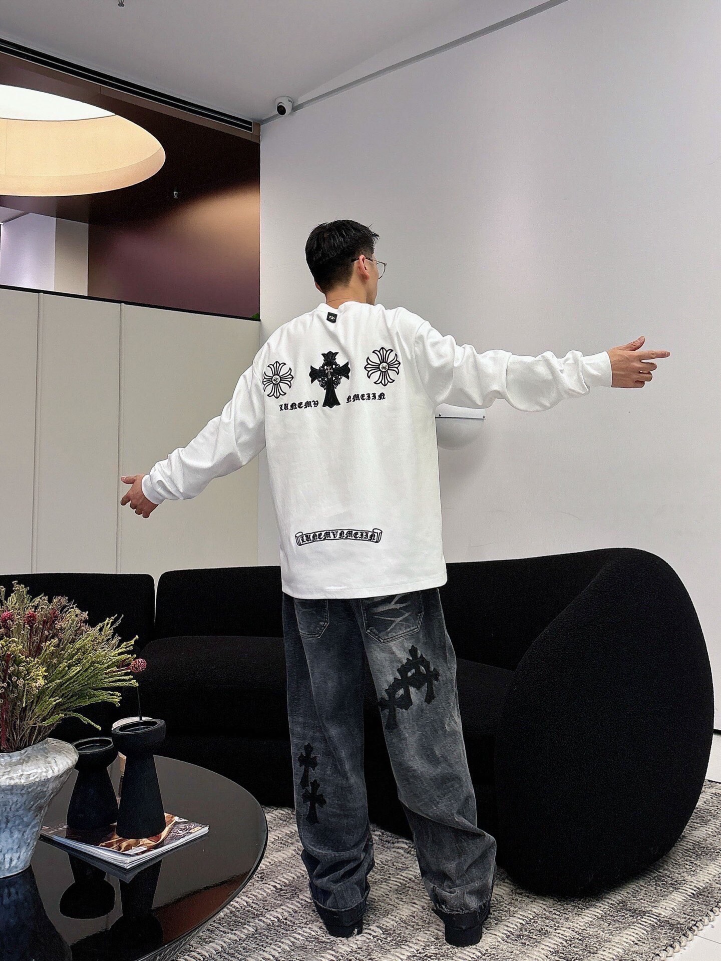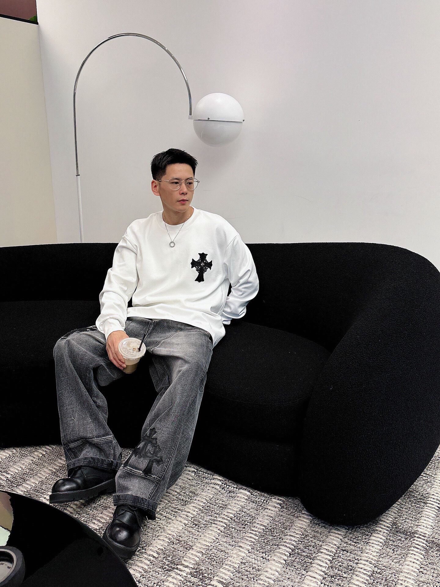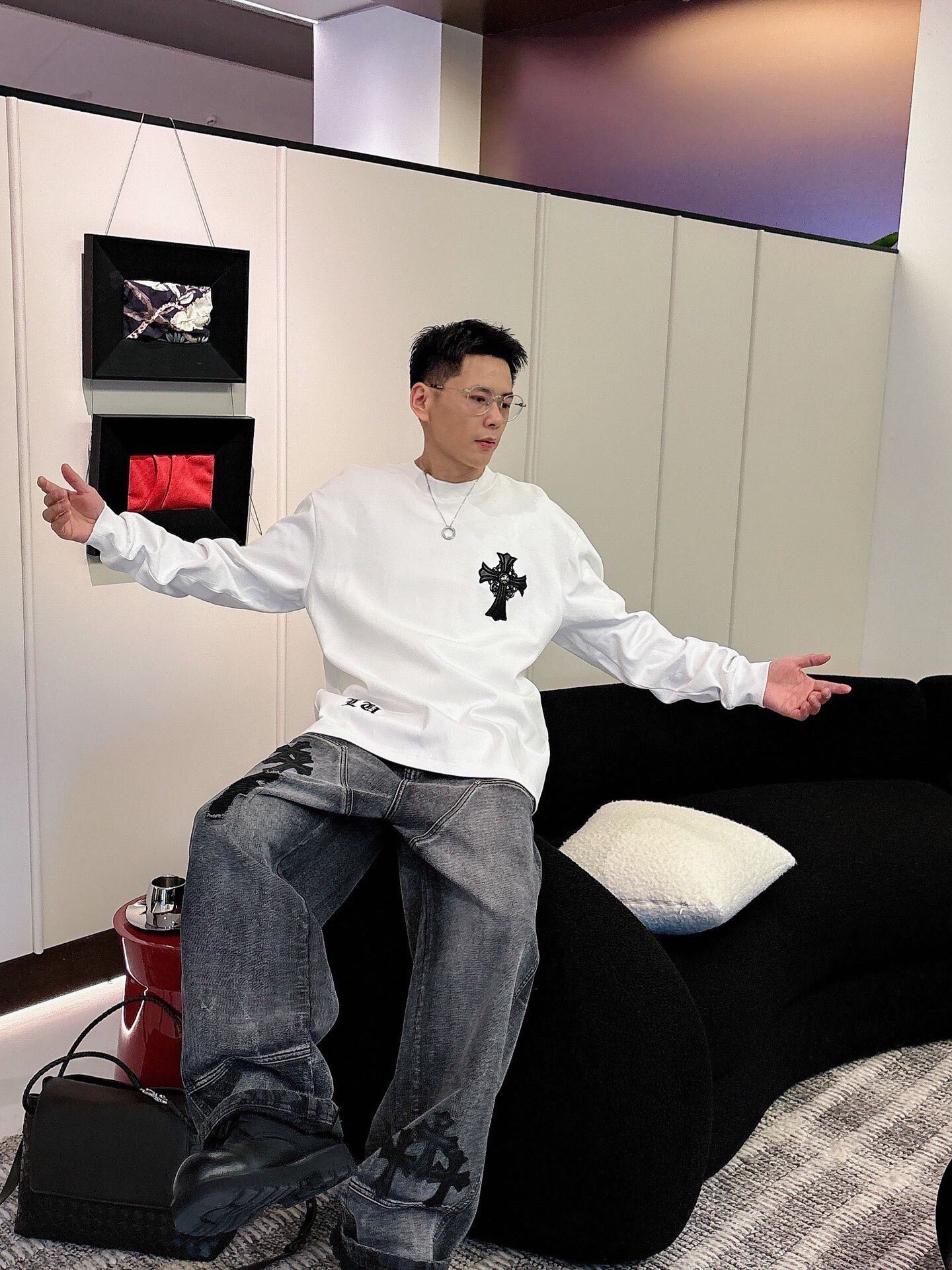 这款衣服是AAAAA 1:1 质量 (非常棒). 使用了和原版一模一样的材料. 商标部分也保持了和克罗心/Chrome Hearts一样. 图片拍摄是实物衣服拍摄, 您所收到的实物保证和我们图片一模一样.