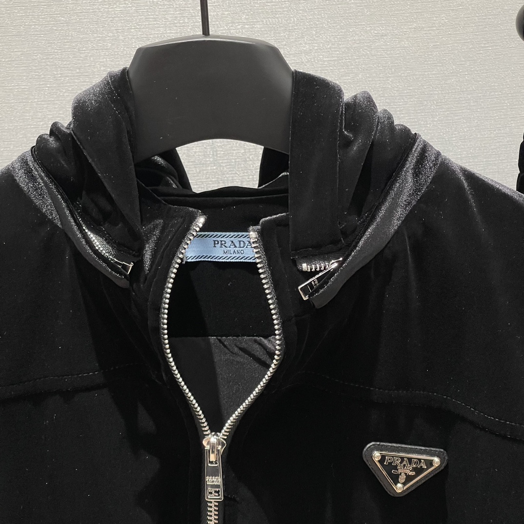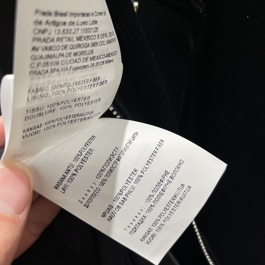 这款衣服是AAAAA 1:1 质量 (非常棒). 使用了和原版一模一样的材料. 商标部分也保持了和普拉达/Prada一样. 图片拍摄是实物衣服拍摄, 您所收到的实物保证和我们图片一模一样.