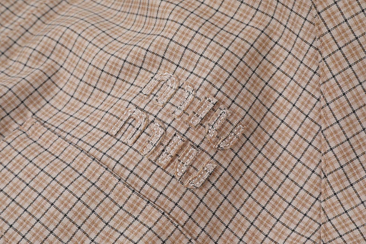 这款衣服是AAAAA 1:1 质量 (非常棒). 使用了和原版一模一样的材料. 商标部分也保持了和缪缪/Miu Miu一样. 图片拍摄是实物衣服拍摄, 您所收到的实物保证和我们图片一模一样.