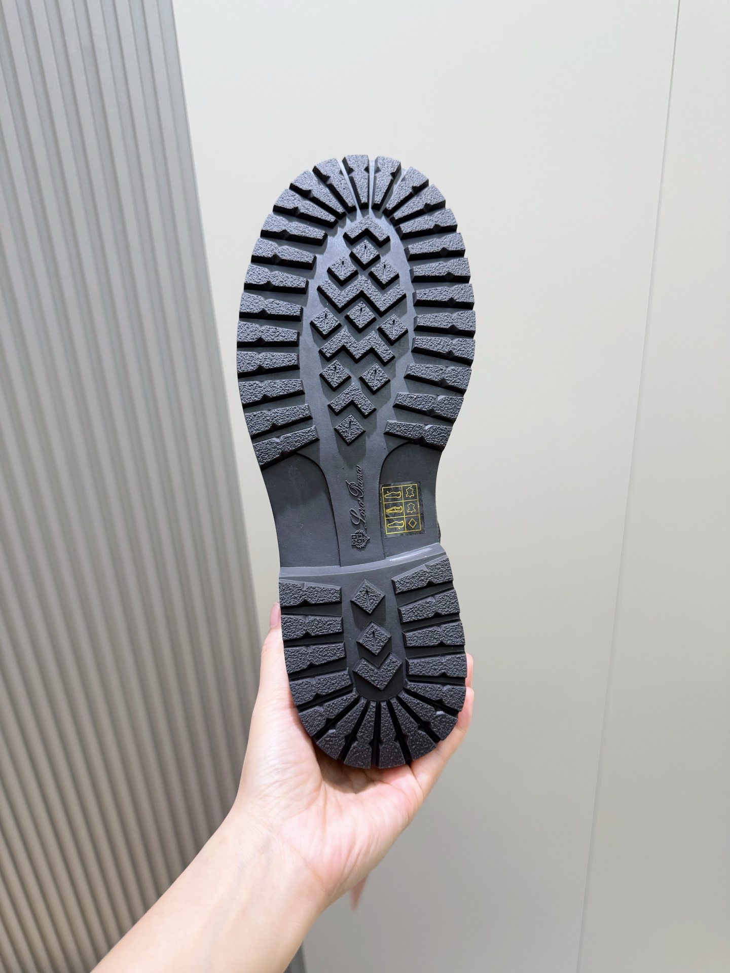 这款鞋子是AAAAA 1:1 质量 (非常棒). 使用了和原版一模一样的材料. 商标部分也保持了和洛罗皮亚纳/Loro Piana一样. 图片拍摄是实物鞋子拍摄, 您所收到的实物保证和我们图片一模一样.