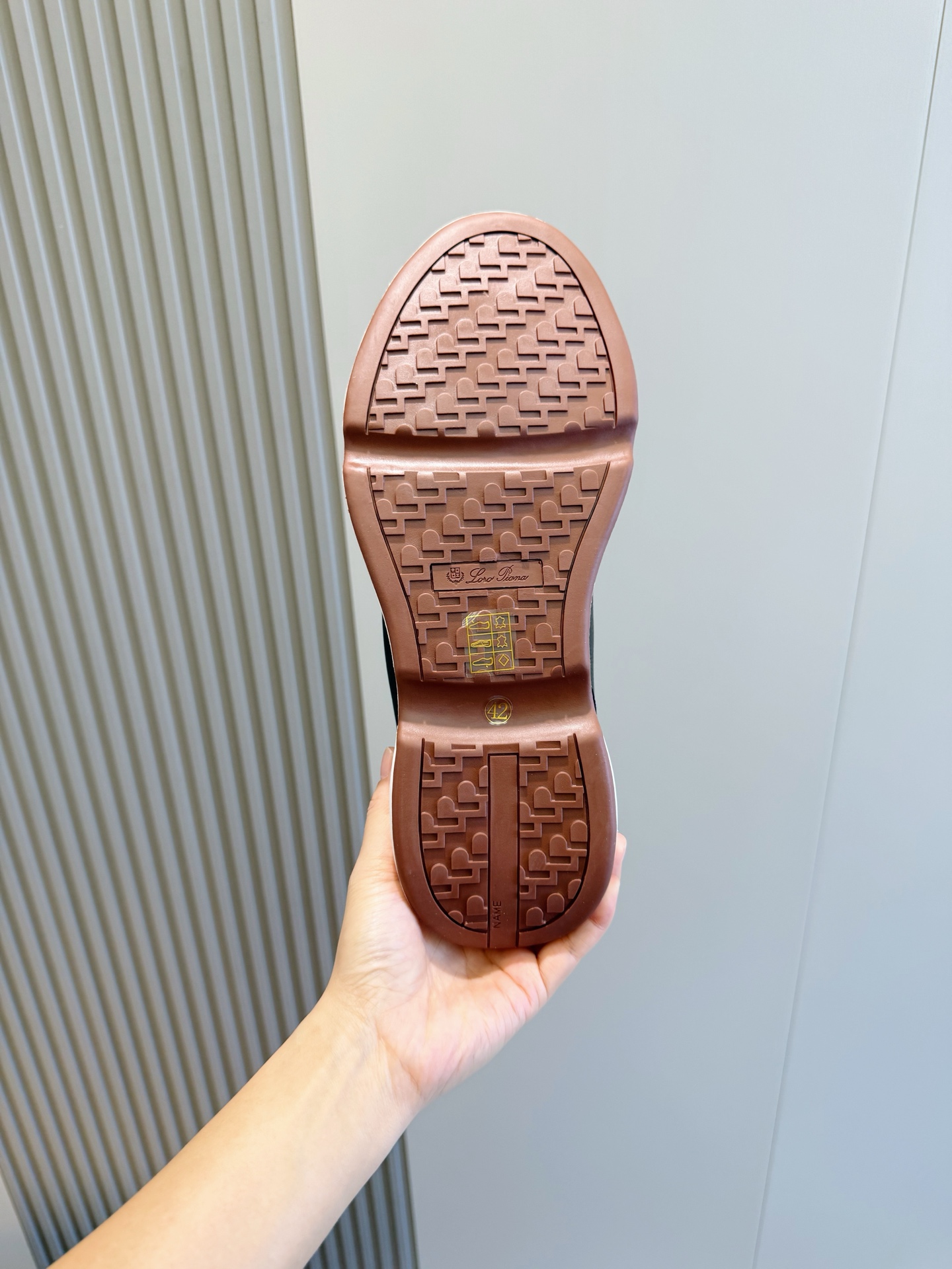 这款鞋子是AAAAA 1:1 质量 (非常棒). 使用了和原版一模一样的材料. 商标部分也保持了和洛罗皮亚纳/Loro Piana一样. 图片拍摄是实物鞋子拍摄, 您所收到的实物保证和我们图片一模一样.