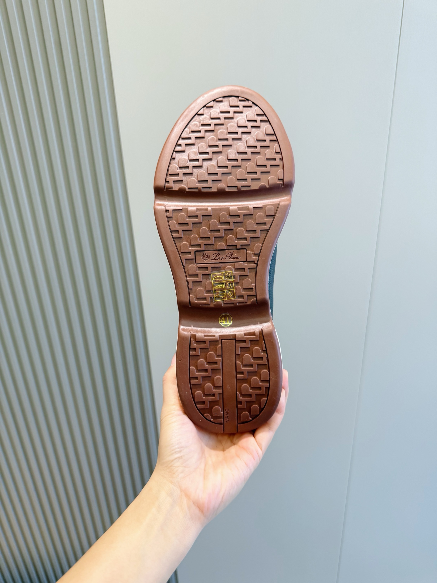 这款鞋子是AAAAA 1:1 质量 (非常棒). 使用了和原版一模一样的材料. 商标部分也保持了和洛罗皮亚纳/Loro Piana一样. 图片拍摄是实物鞋子拍摄, 您所收到的实物保证和我们图片一模一样.