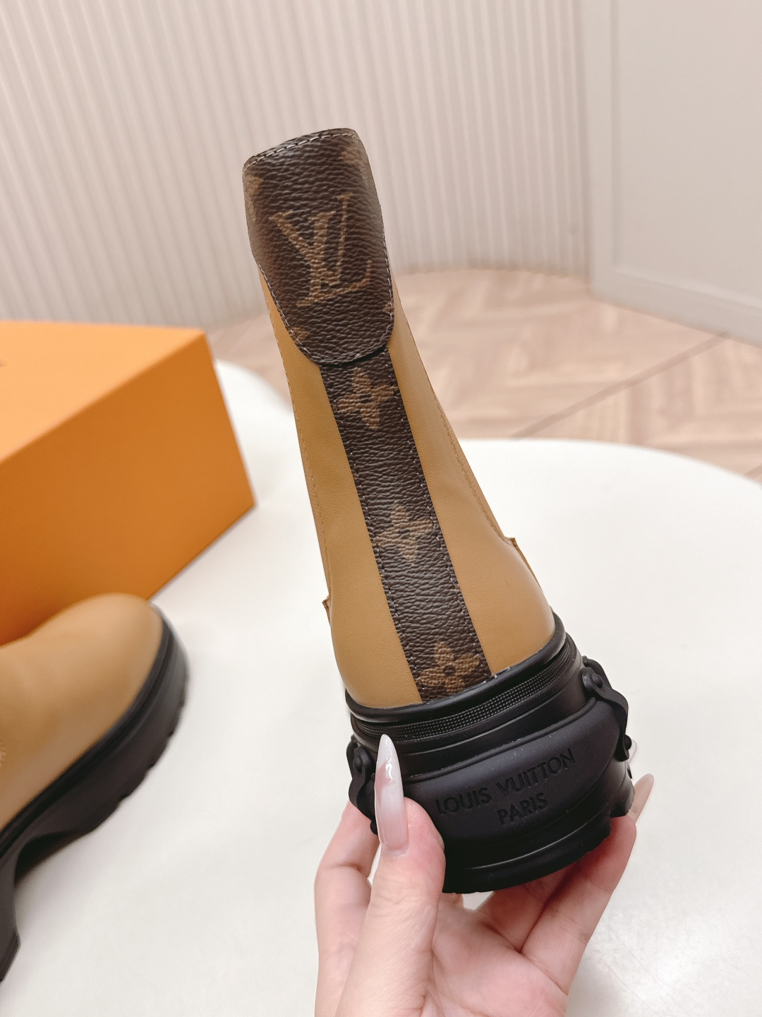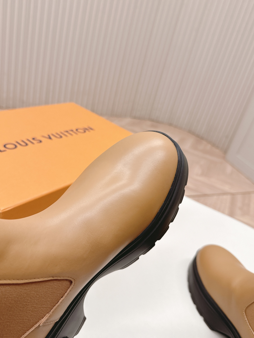 这款鞋子是AAAAA 1:1 质量 (非常棒). 使用了和原版一模一样的材料. 商标部分也保持了和路易威登/Louis Vuitton一样. 图片拍摄是实物鞋子拍摄, 您所收到的实物保证和我们图片一模一样.