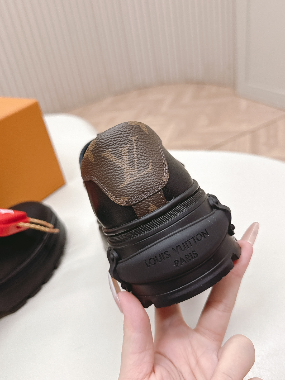 这款鞋子是AAAAA 1:1 质量 (非常棒). 使用了和原版一模一样的材料. 商标部分也保持了和路易威登/Louis Vuitton一样. 图片拍摄是实物鞋子拍摄, 您所收到的实物保证和我们图片一模一样.