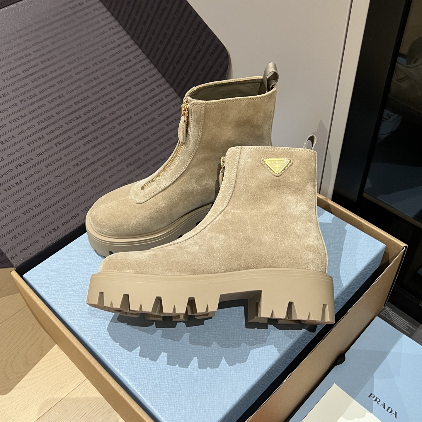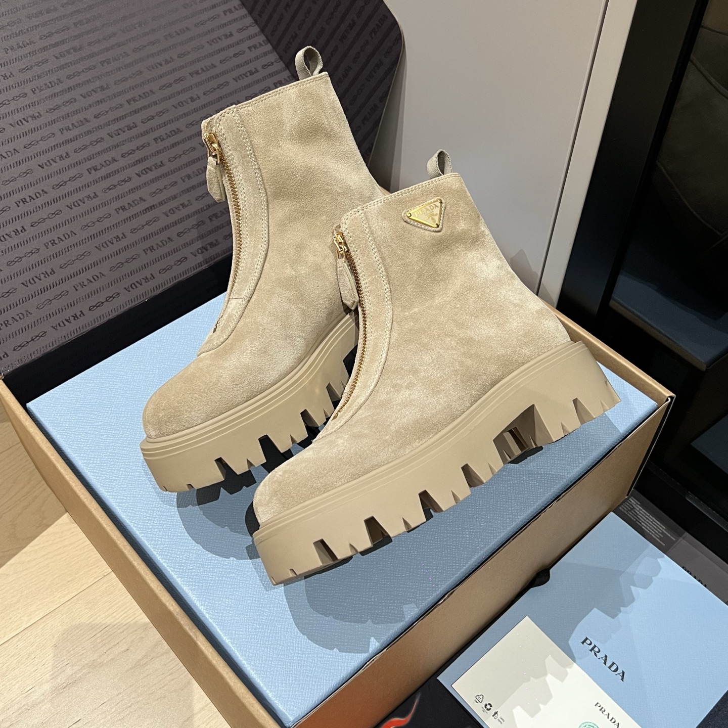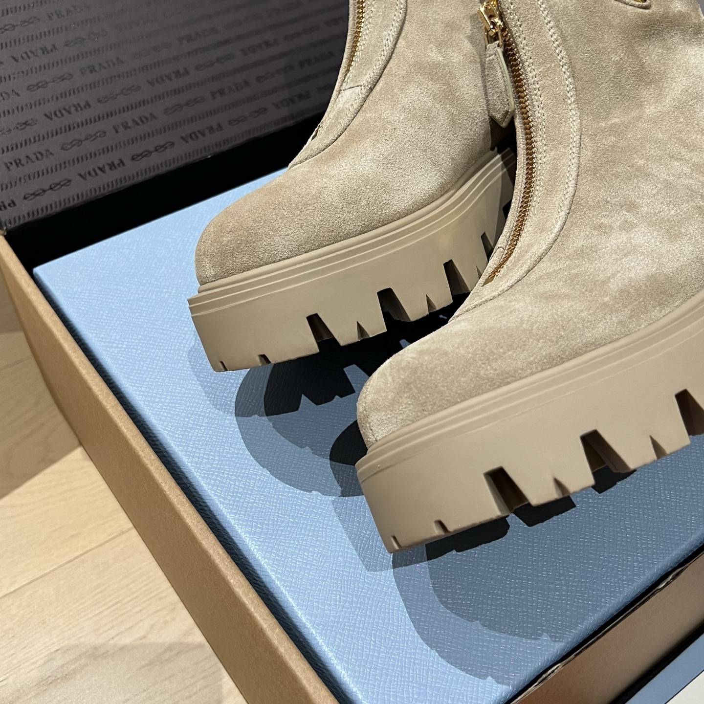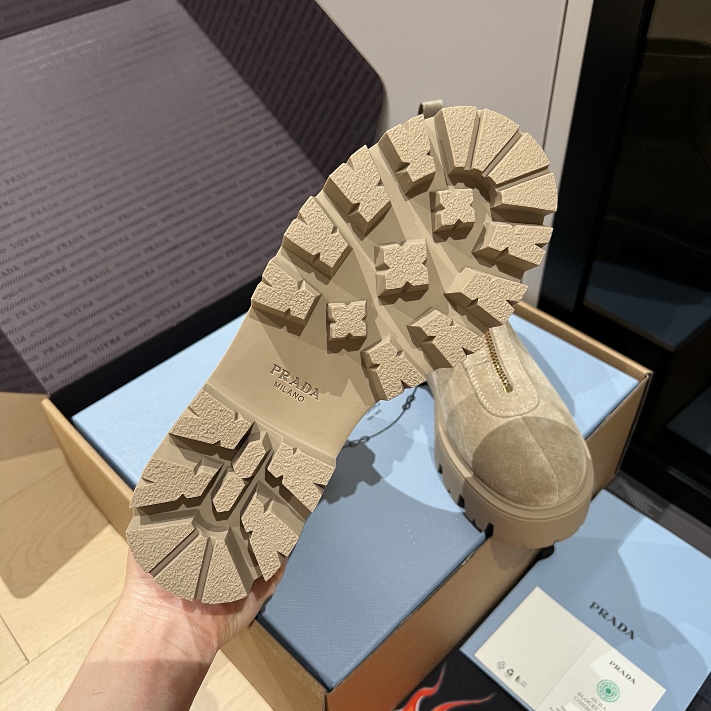 这款鞋子是AAAAA 1:1 质量 (非常棒). 使用了和原版一模一样的材料. 商标部分也保持了和普拉达/Prada一样. 图片拍摄是实物鞋子拍摄, 您所收到的实物保证和我们图片一模一样.