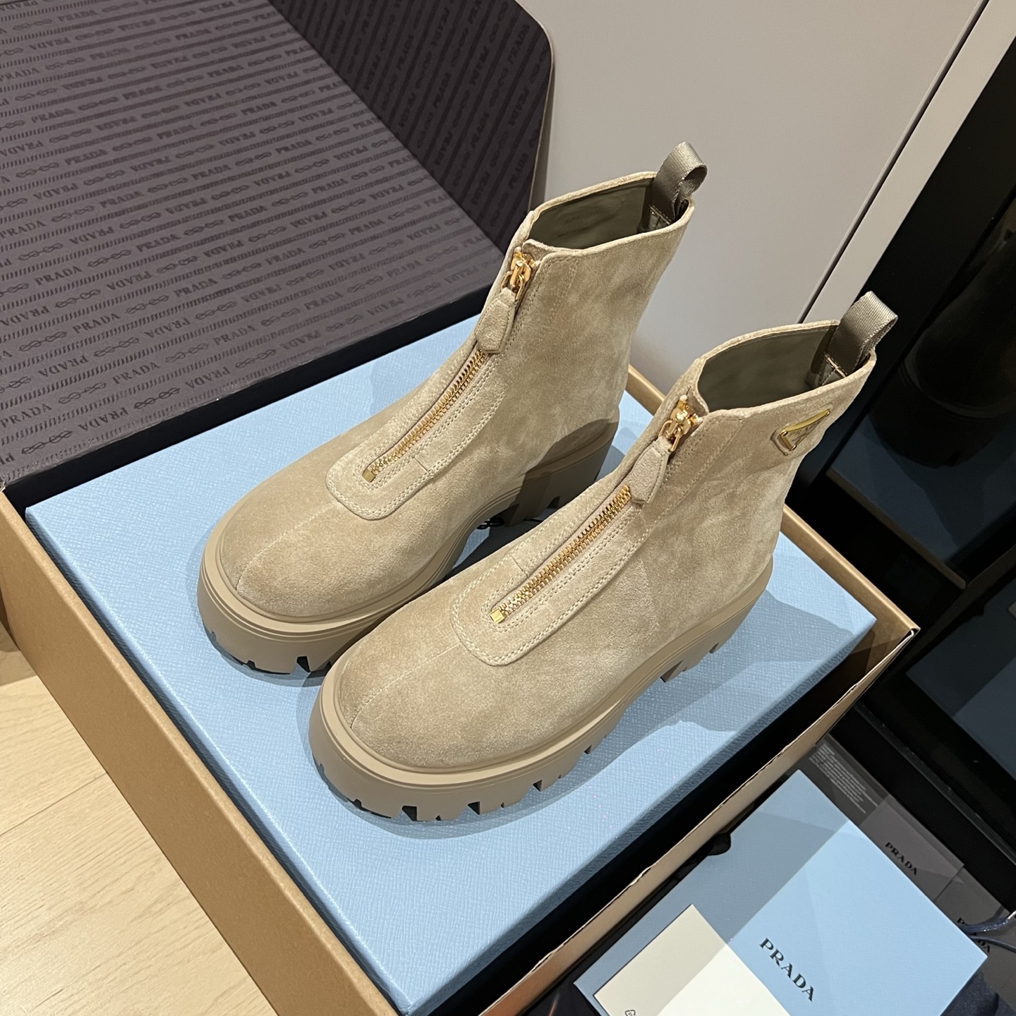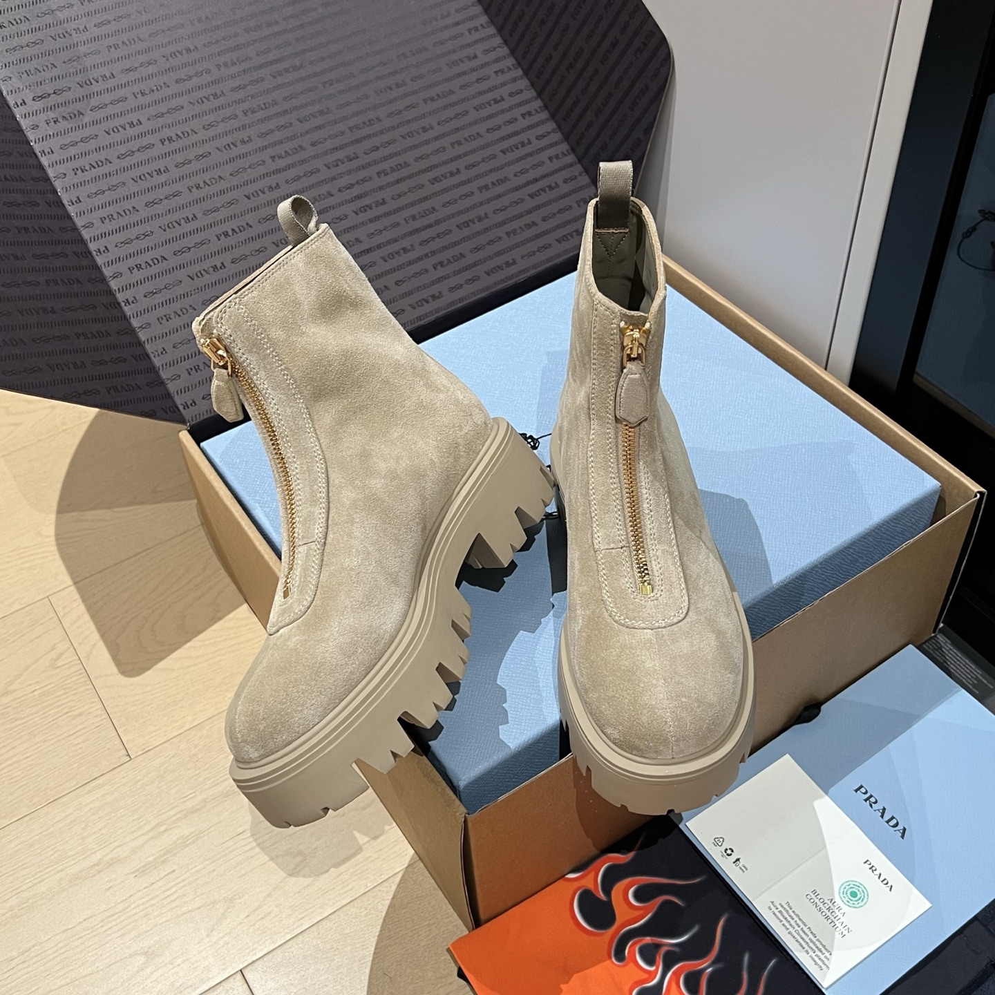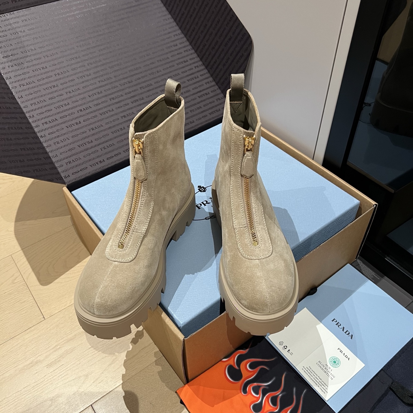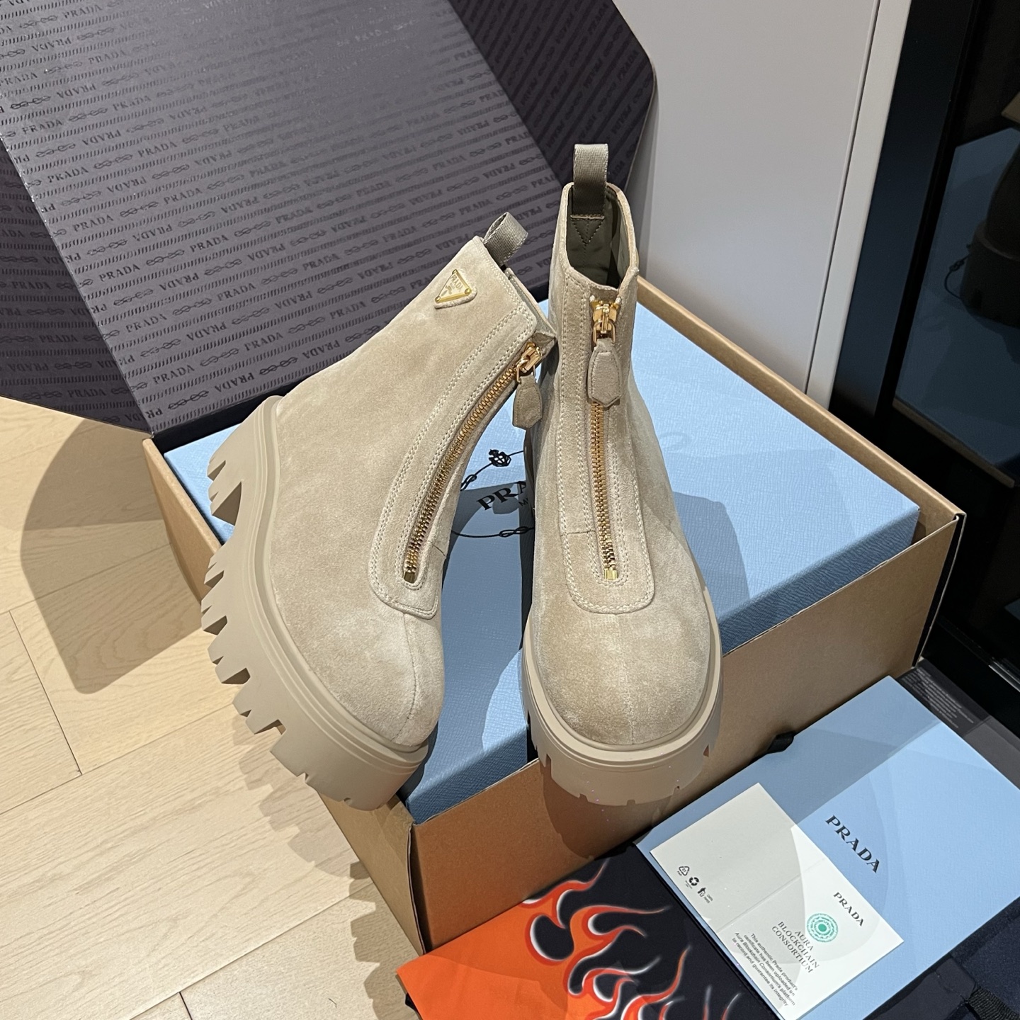 这款鞋子是AAAAA 1:1 质量 (非常棒). 使用了和原版一模一样的材料. 商标部分也保持了和普拉达/Prada一样. 图片拍摄是实物鞋子拍摄, 您所收到的实物保证和我们图片一模一样.