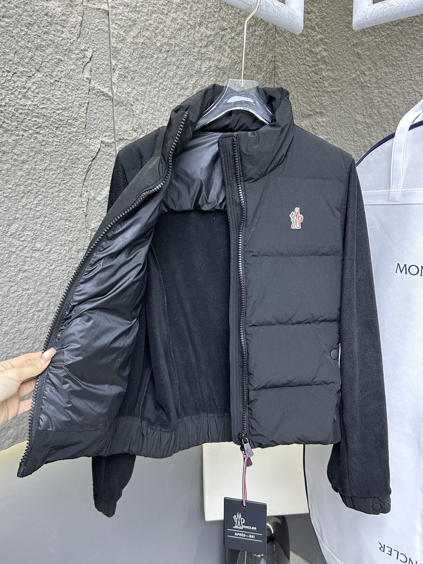 这款衣服是AAAAA 1:1 质量 (非常棒). 使用了和原版一模一样的材料. 商标部分也保持了和盟可睐/moncler一样. 图片拍摄是实物衣服拍摄, 您所收到的实物保证和我们图片一模一样.