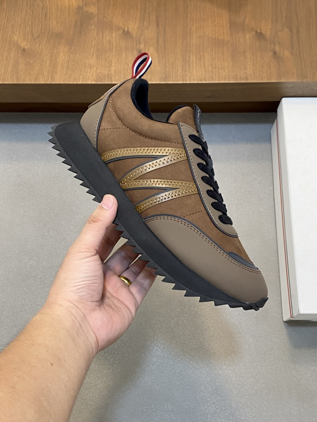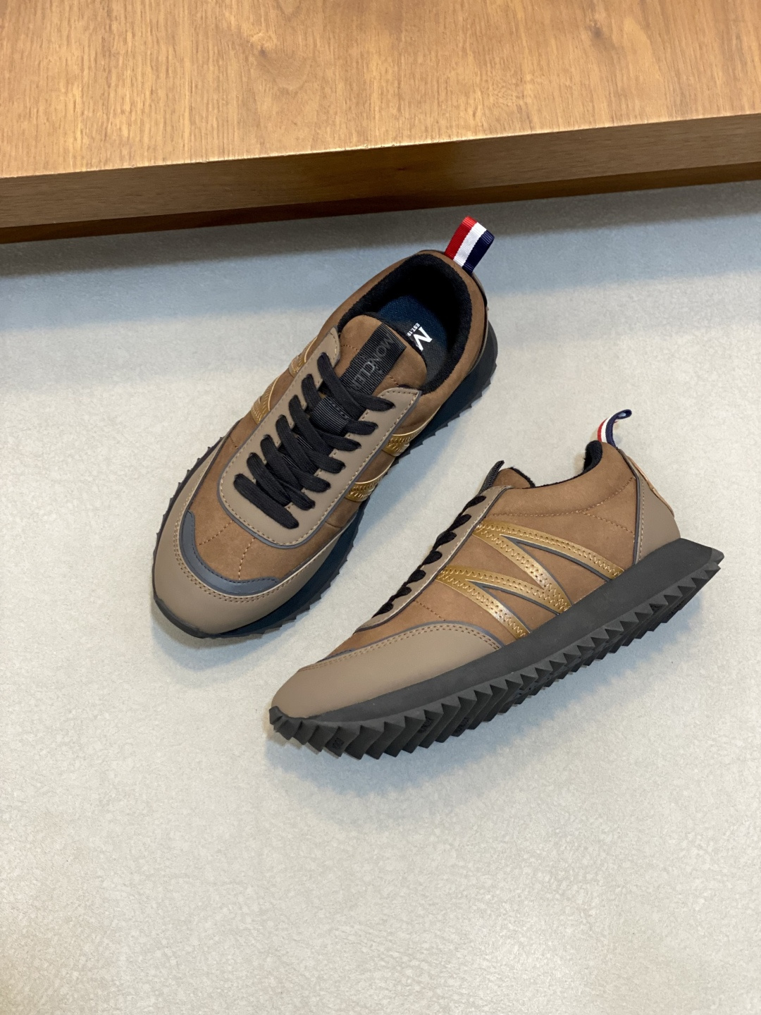 这款鞋子是AAAAA 1:1 质量 (非常棒). 使用了和原版一模一样的材料. 商标部分也保持了和盟可睐/moncler一样. 图片拍摄是实物鞋子拍摄, 您所收到的实物保证和我们图片一模一样.