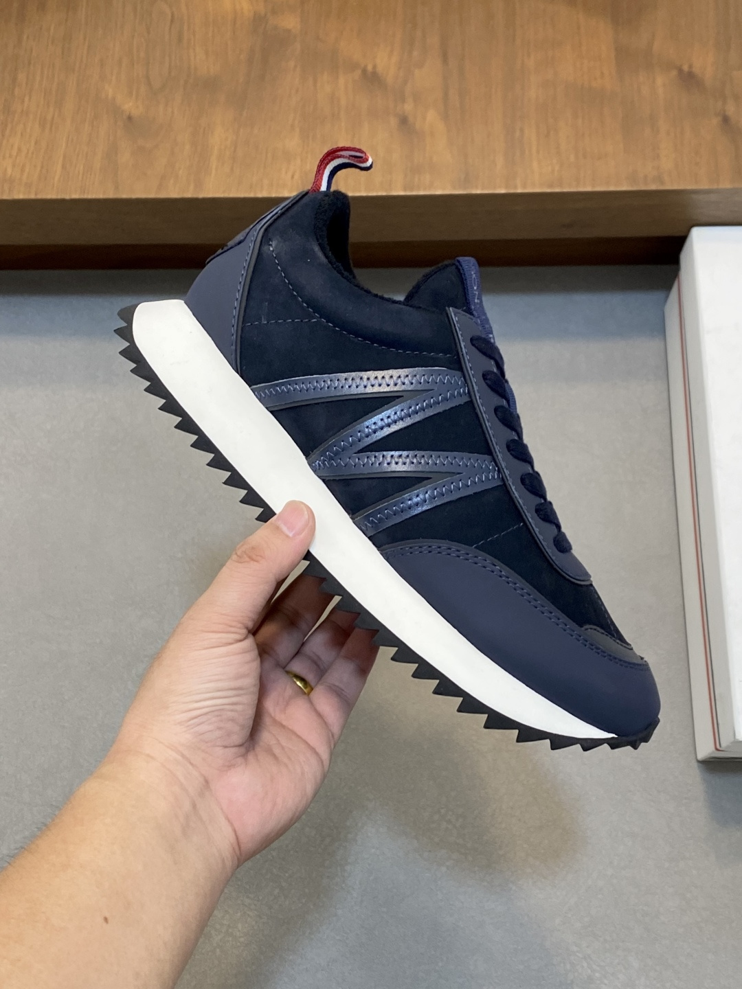这款鞋子是AAAAA 1:1 质量 (非常棒). 使用了和原版一模一样的材料. 商标部分也保持了和盟可睐/moncler一样. 图片拍摄是实物鞋子拍摄, 您所收到的实物保证和我们图片一模一样.