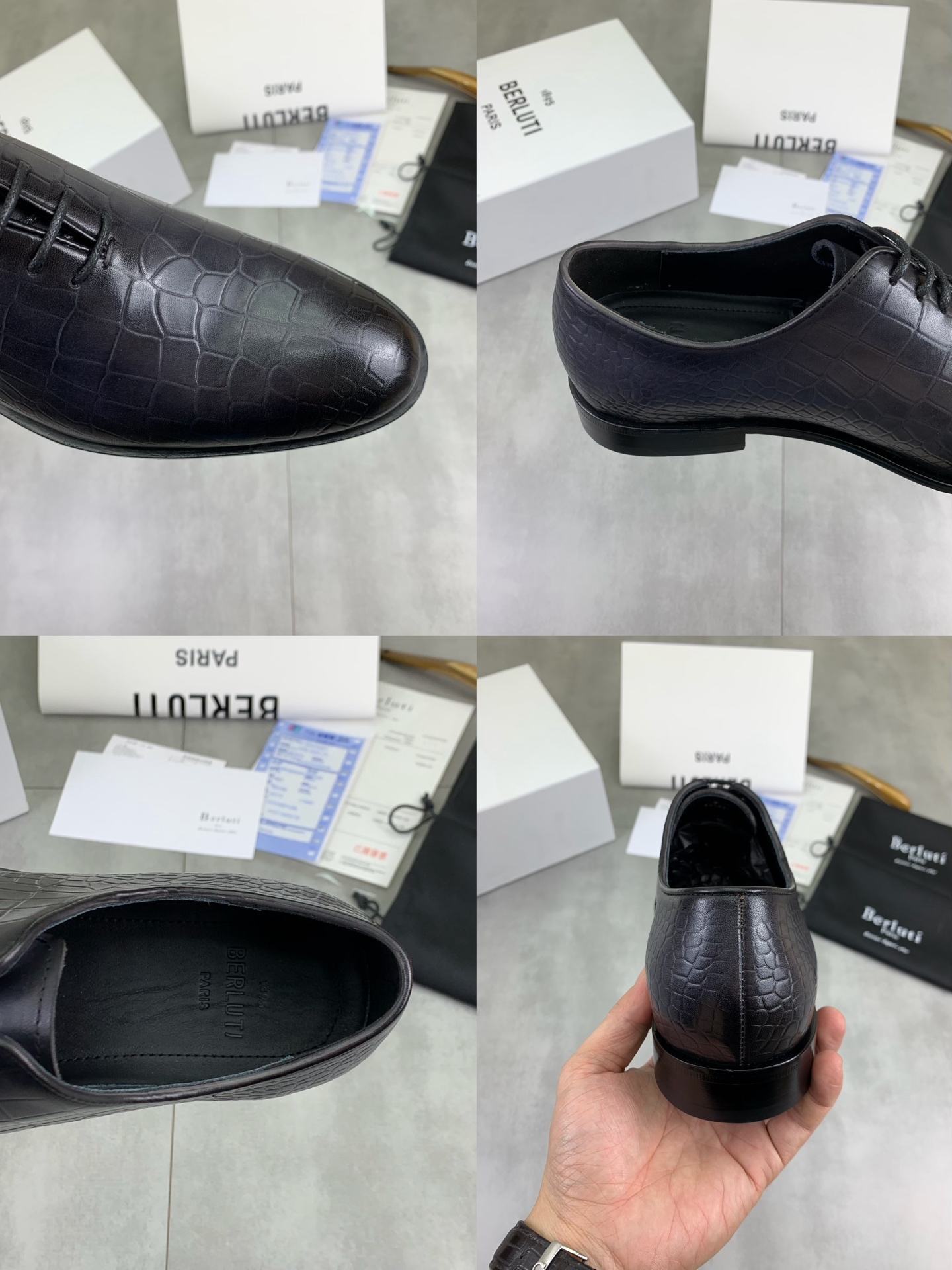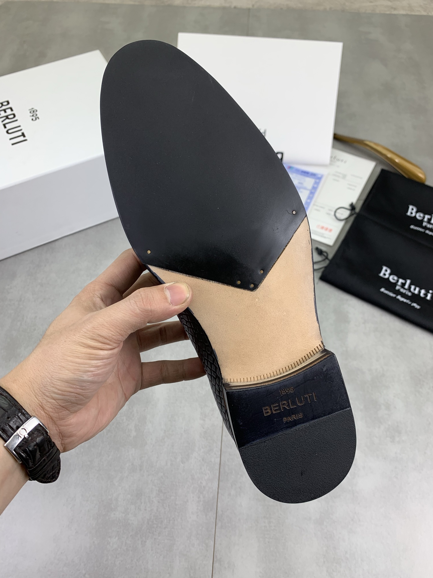 这款鞋子是AAAAA 1:1 质量 (非常棒). 使用了和原版一模一样的材料. 商标部分也保持了和Berluti一样. 图片拍摄是实物鞋子拍摄, 您所收到的实物保证和我们图片一模一样.
