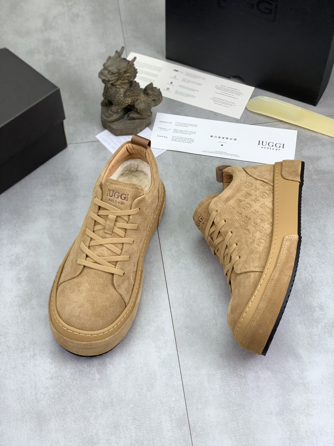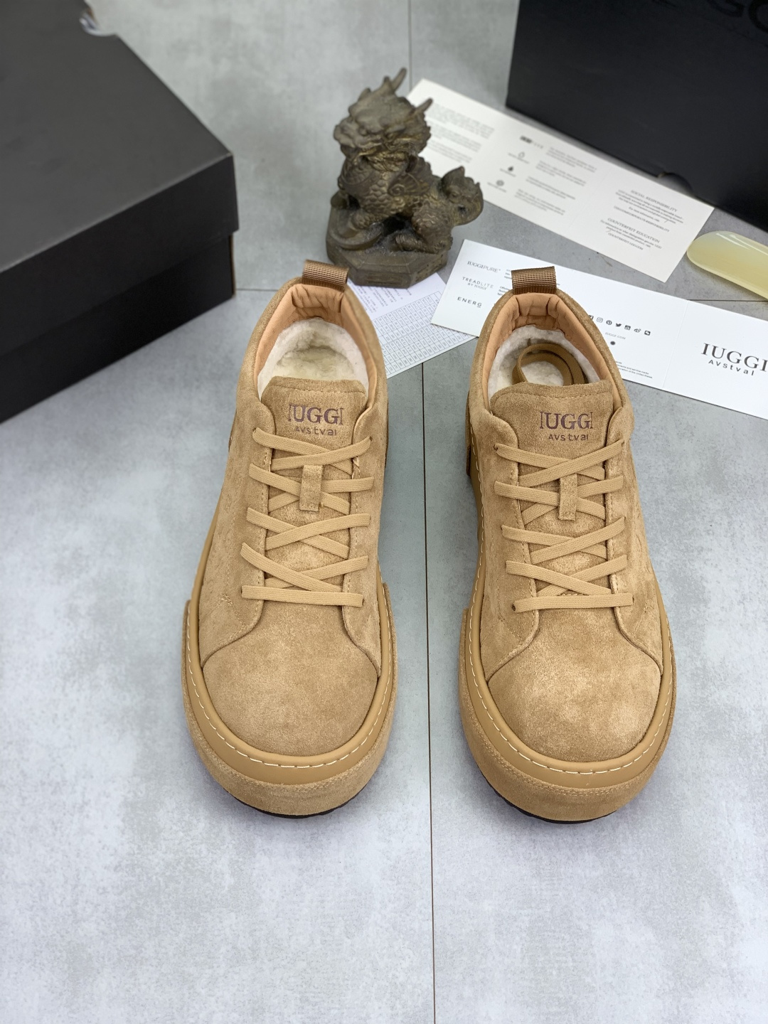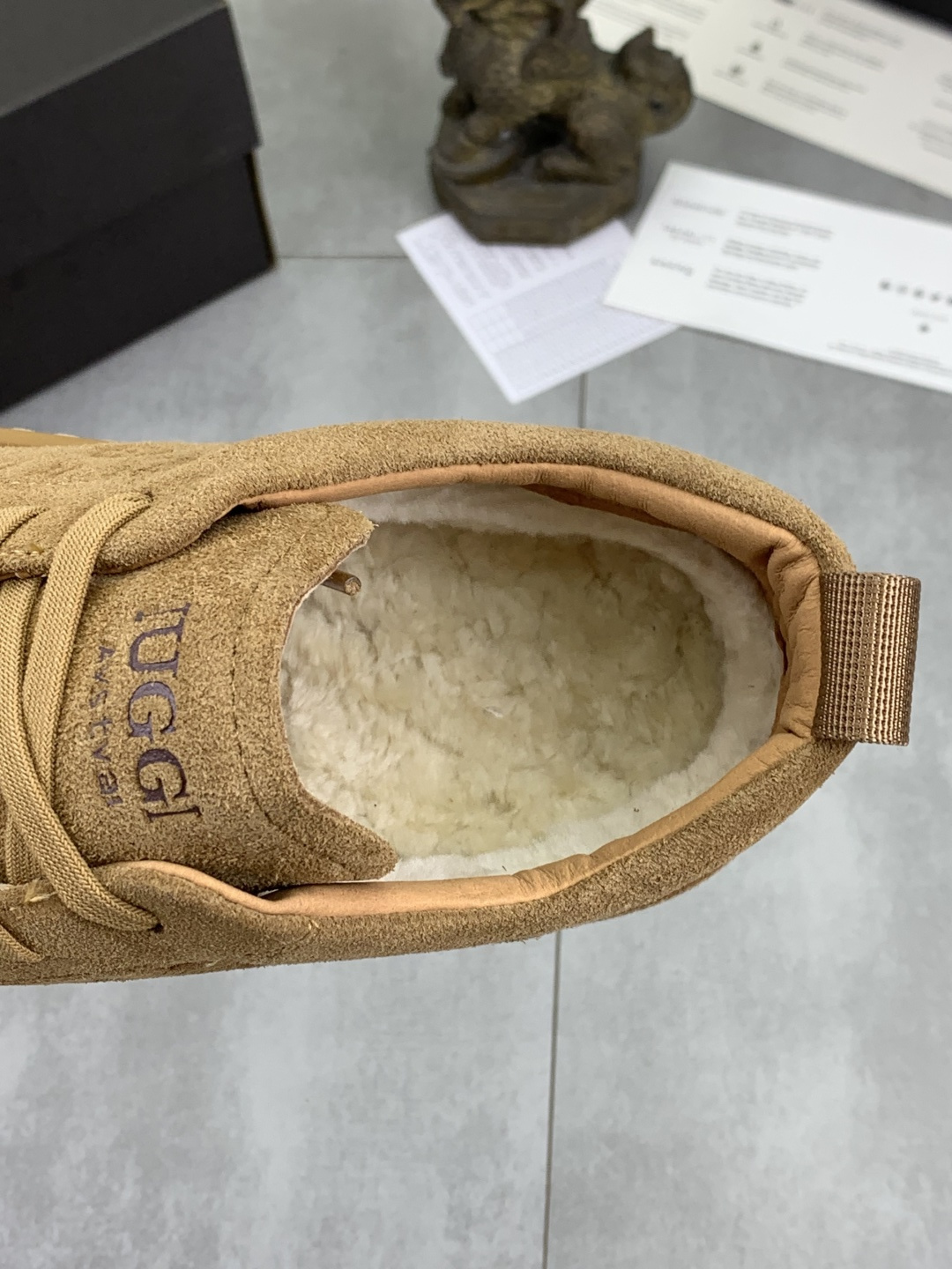 这款鞋子是AAAAA 1:1 质量 (非常棒). 使用了和原版一模一样的材料. 商标部分也保持了和UGG雪地靴一样. 图片拍摄是实物鞋子拍摄, 您所收到的实物保证和我们图片一模一样.
