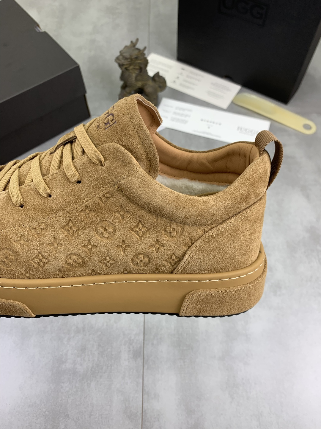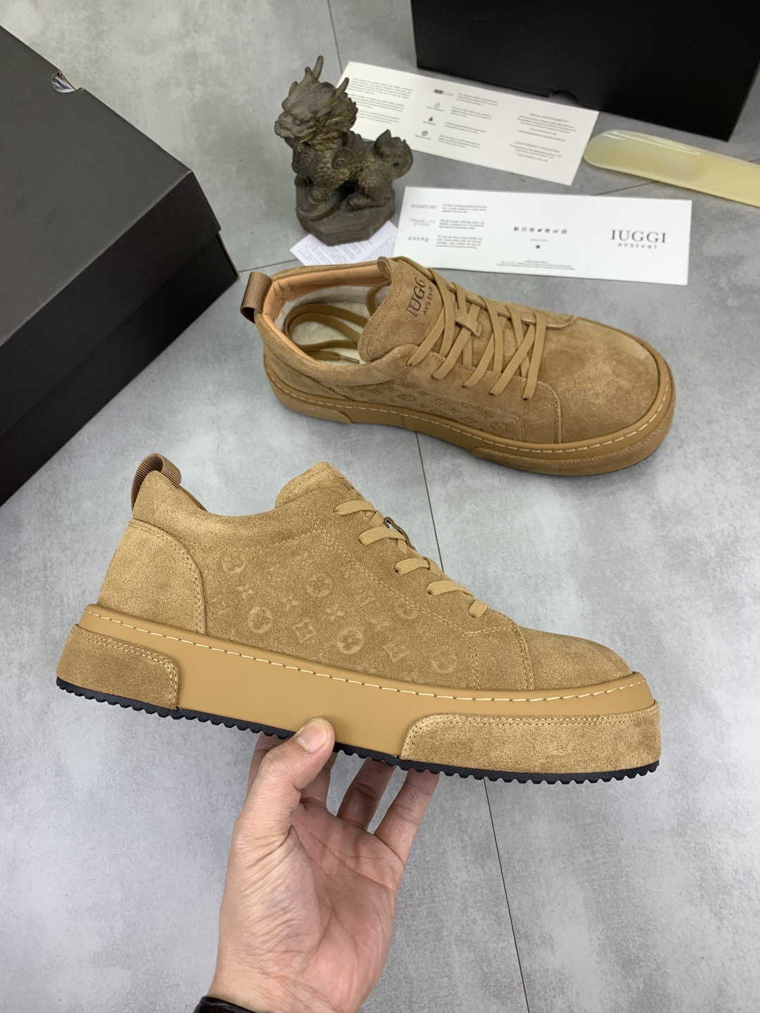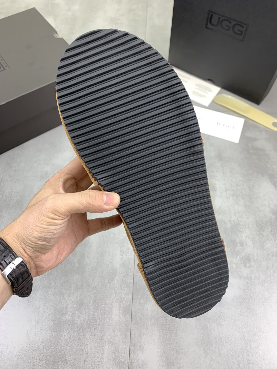 这款鞋子是AAAAA 1:1 质量 (非常棒). 使用了和原版一模一样的材料. 商标部分也保持了和UGG雪地靴一样. 图片拍摄是实物鞋子拍摄, 您所收到的实物保证和我们图片一模一样.