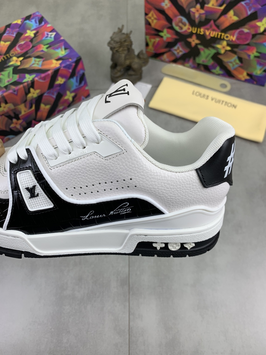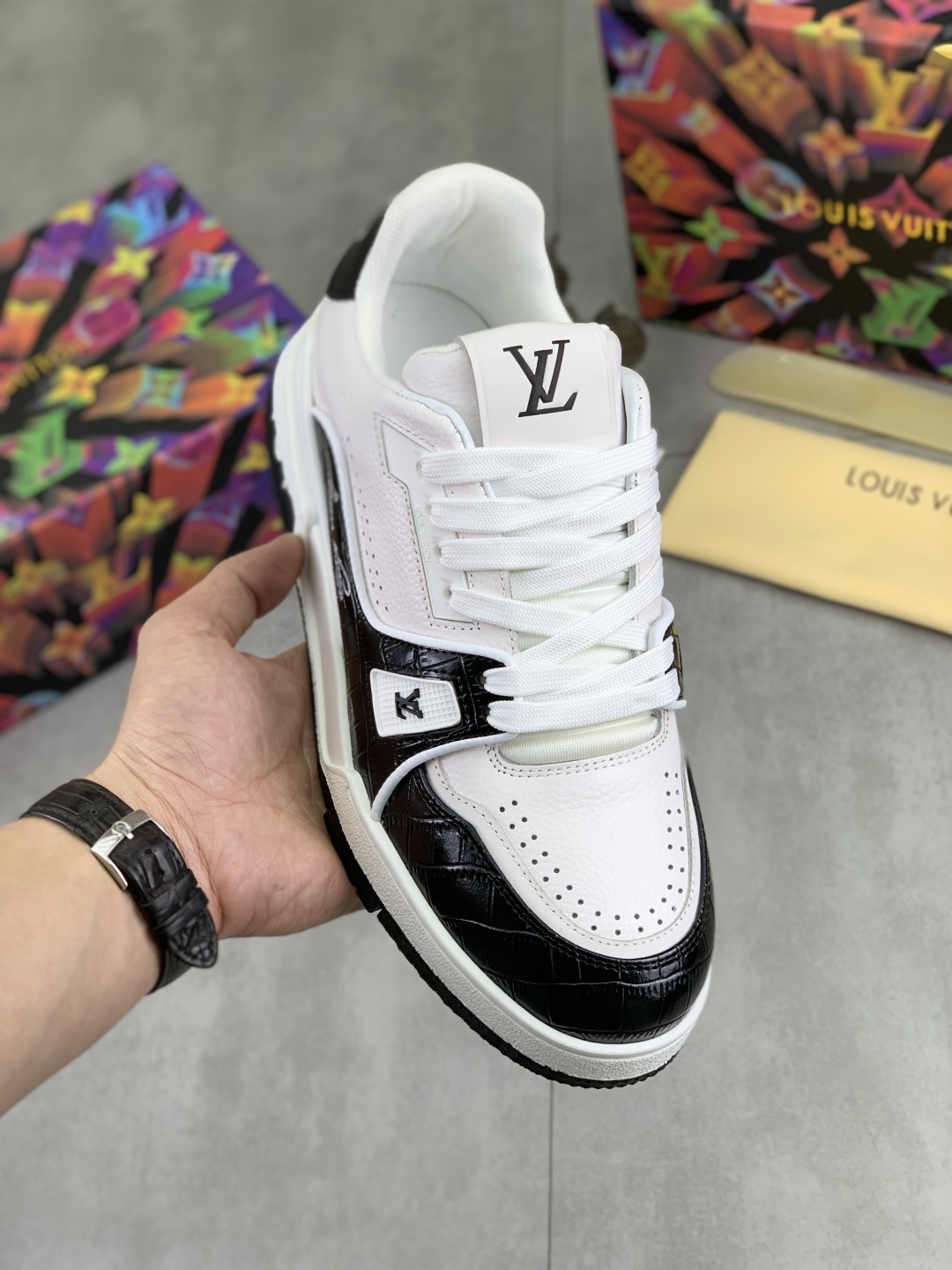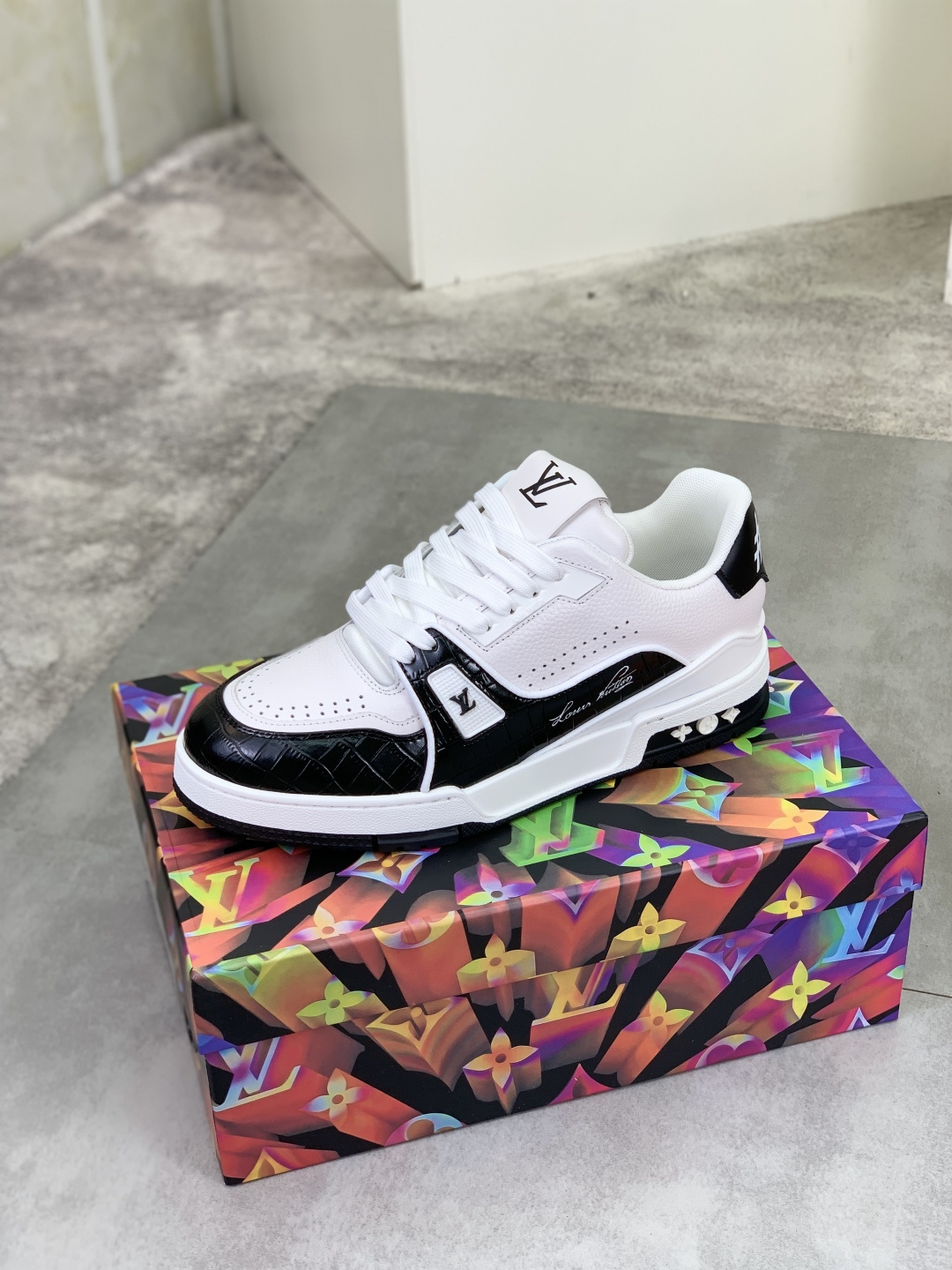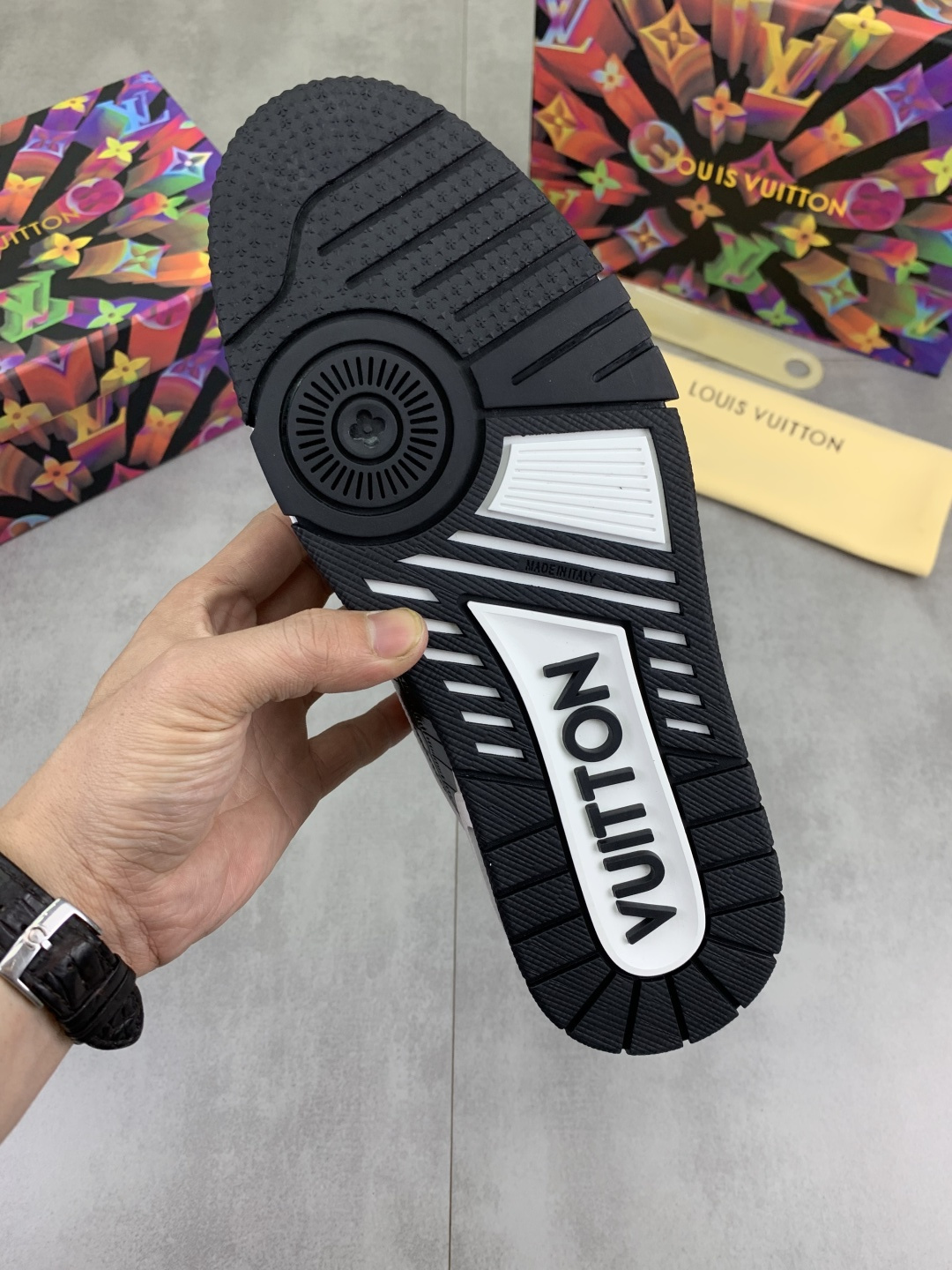 这款鞋子是AAAAA 1:1 质量 (非常棒). 使用了和原版一模一样的材料. 商标部分也保持了和路易威登/Louis Vuitton一样. 图片拍摄是实物鞋子拍摄, 您所收到的实物保证和我们图片一模一样.