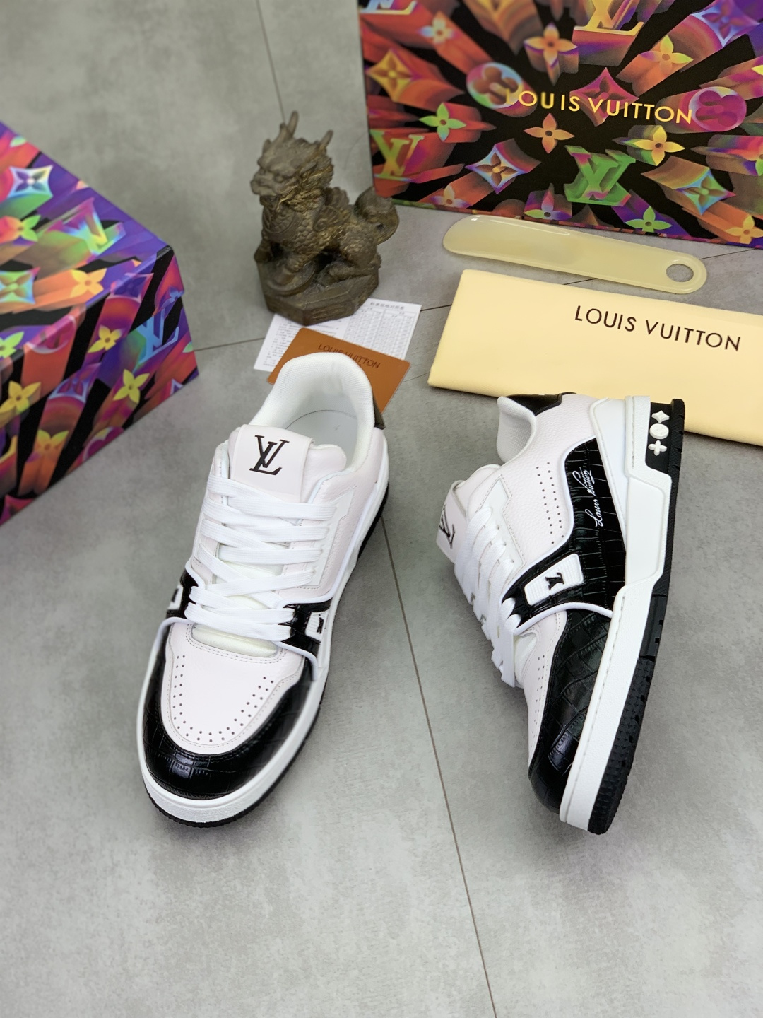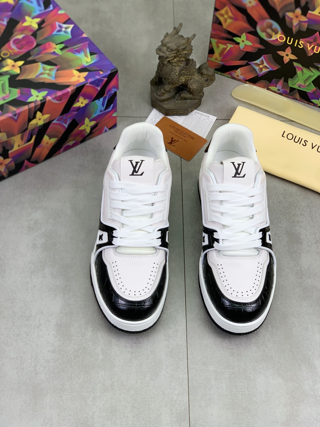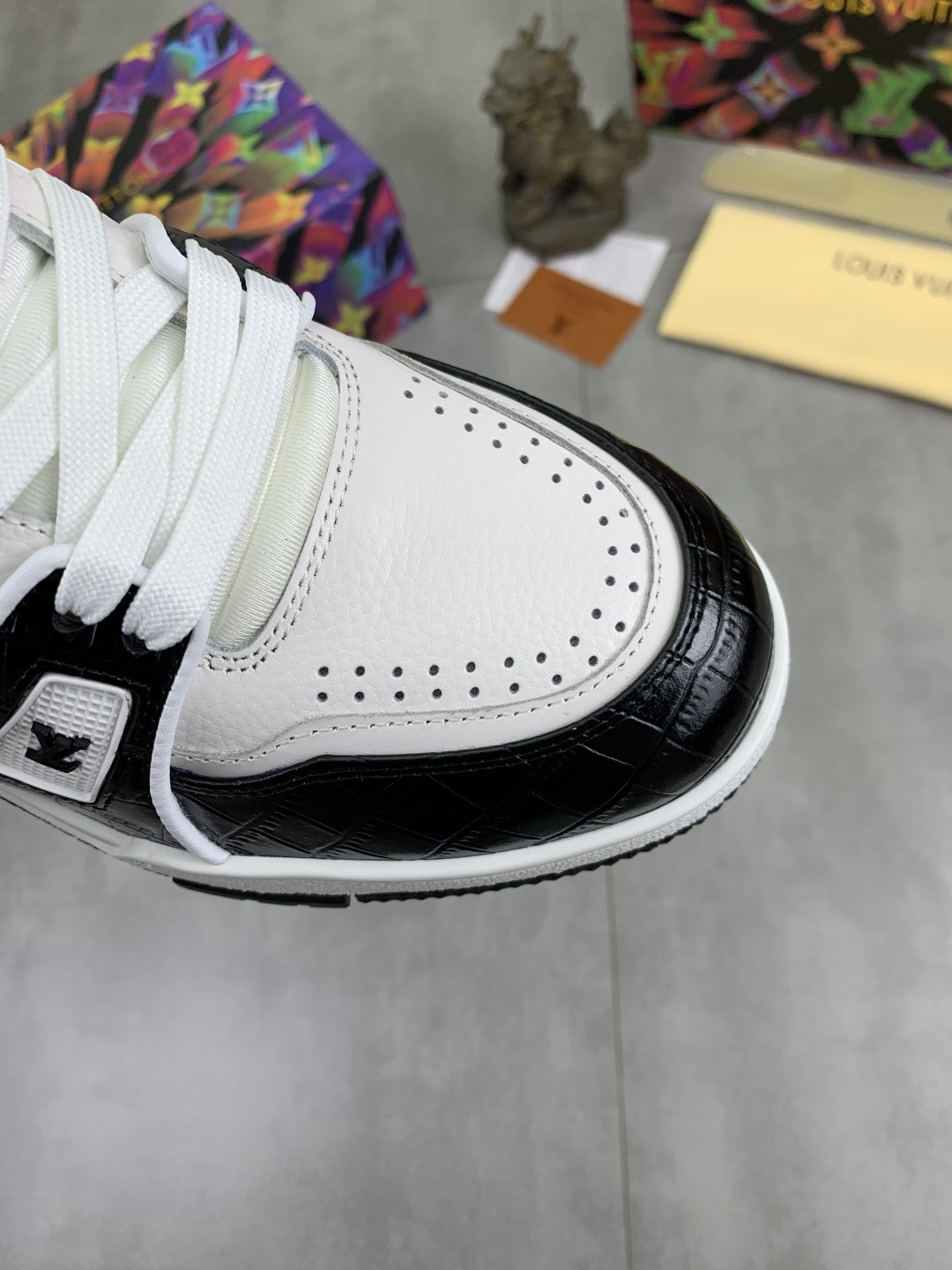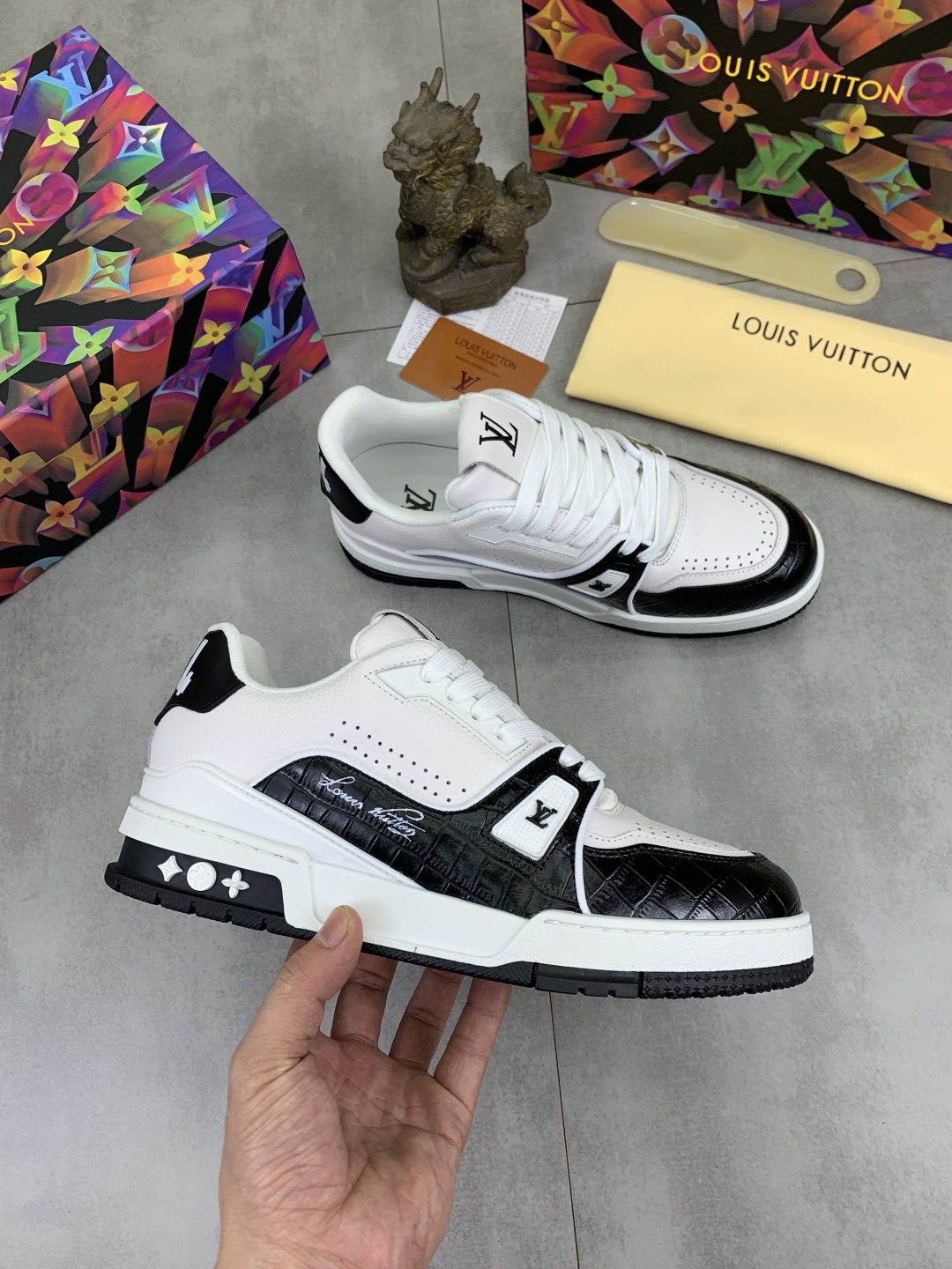 这款鞋子是AAAAA 1:1 质量 (非常棒). 使用了和原版一模一样的材料. 商标部分也保持了和路易威登/Louis Vuitton一样. 图片拍摄是实物鞋子拍摄, 您所收到的实物保证和我们图片一模一样.