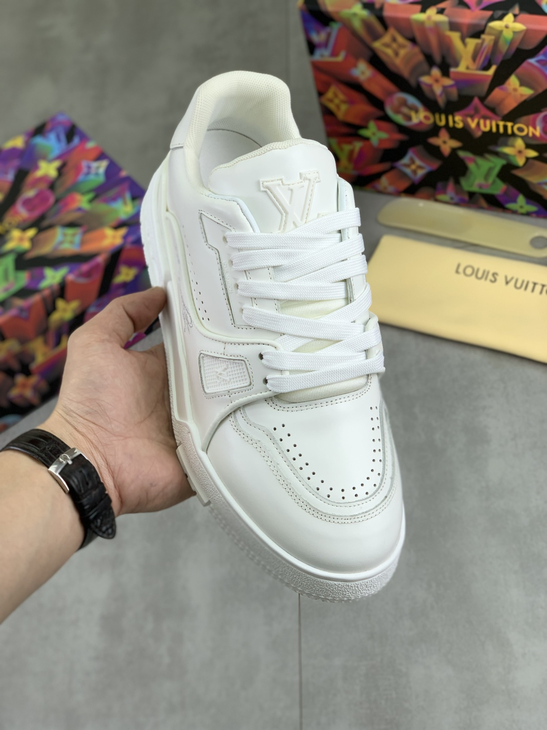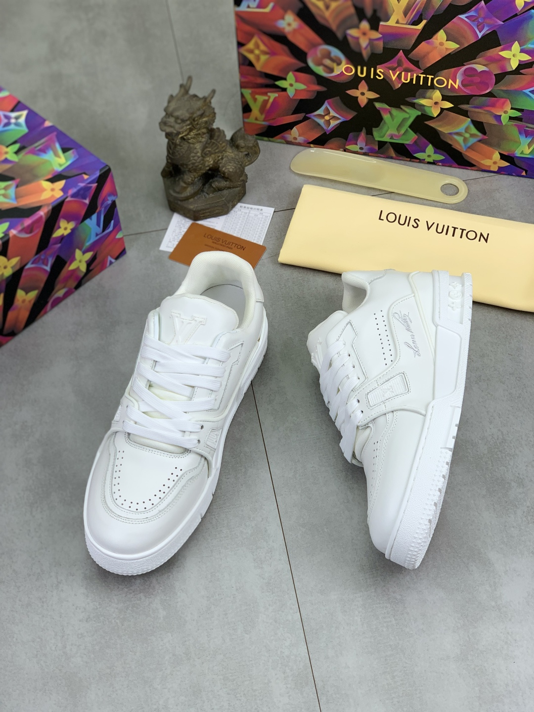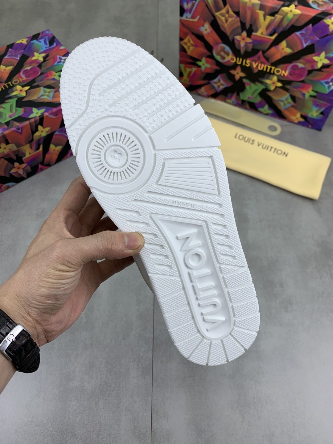 这款鞋子是AAAAA 1:1 质量 (非常棒). 使用了和原版一模一样的材料. 商标部分也保持了和路易威登/Louis Vuitton一样. 图片拍摄是实物鞋子拍摄, 您所收到的实物保证和我们图片一模一样.
