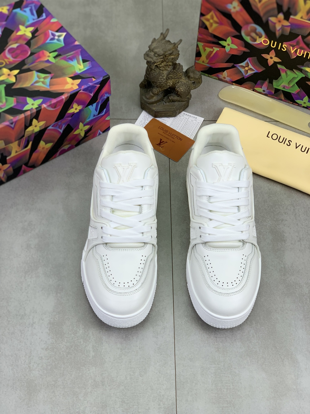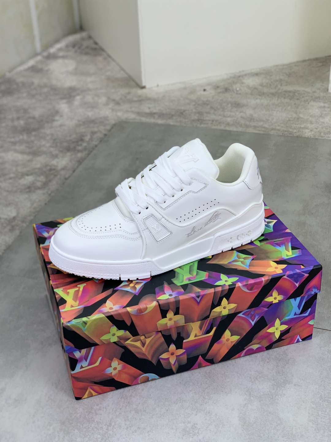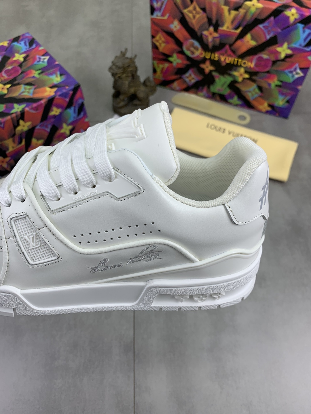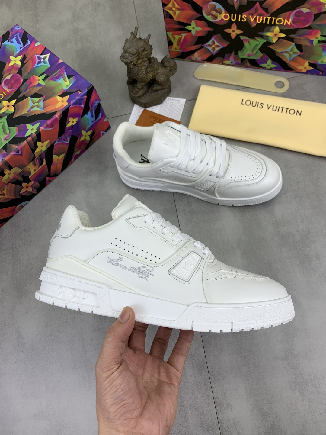 这款鞋子是AAAAA 1:1 质量 (非常棒). 使用了和原版一模一样的材料. 商标部分也保持了和路易威登/Louis Vuitton一样. 图片拍摄是实物鞋子拍摄, 您所收到的实物保证和我们图片一模一样.
