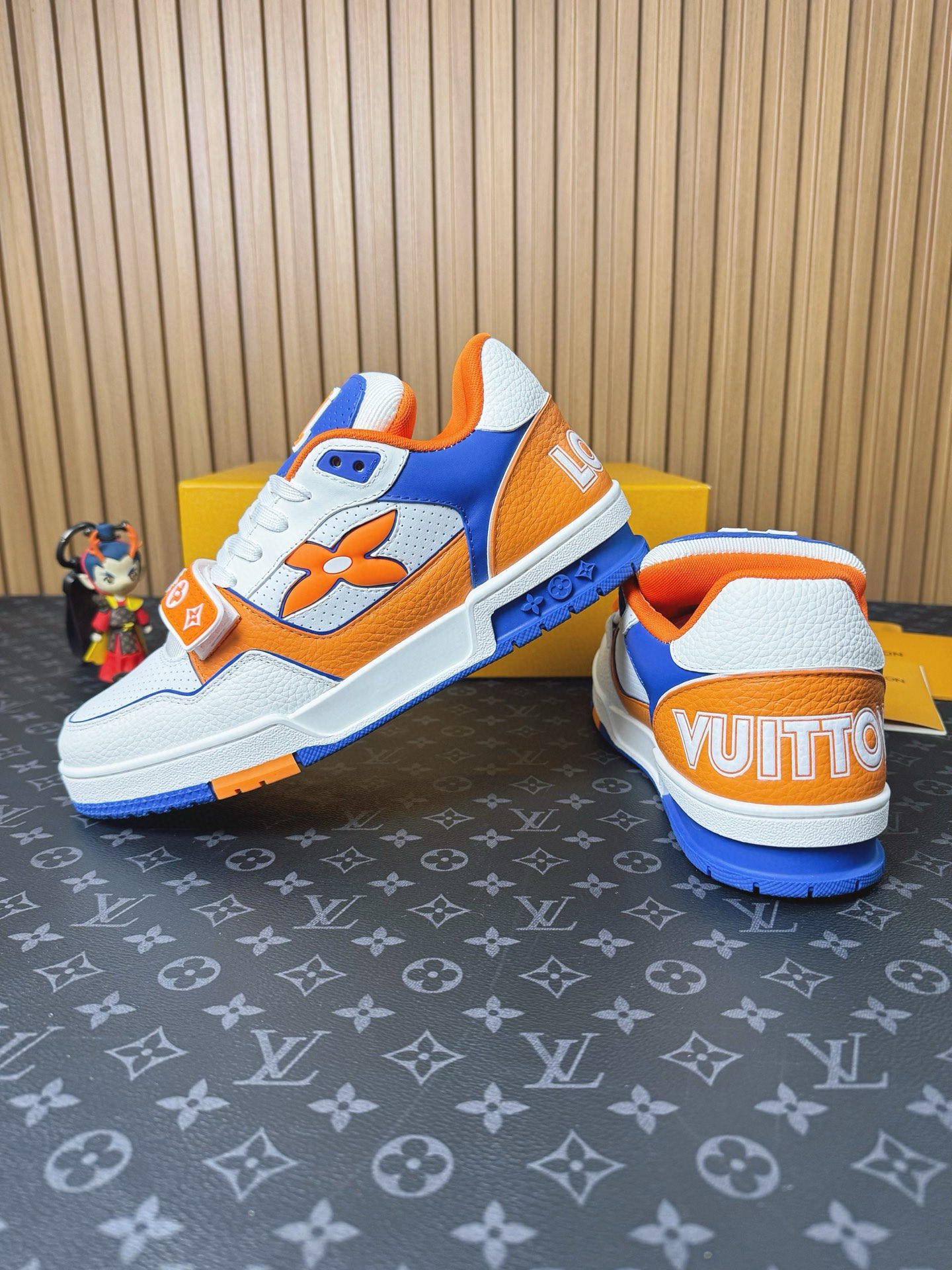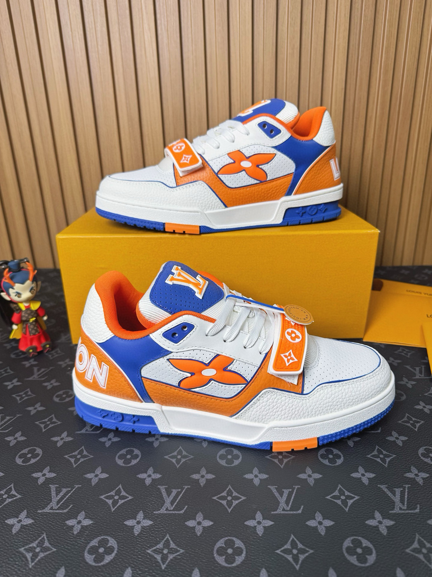 这款鞋子是AAAAA 1:1 质量 (非常棒). 使用了和原版一模一样的材料. 商标部分也保持了和路易威登/Louis Vuitton一样. 图片拍摄是实物鞋子拍摄, 您所收到的实物保证和我们图片一模一样.