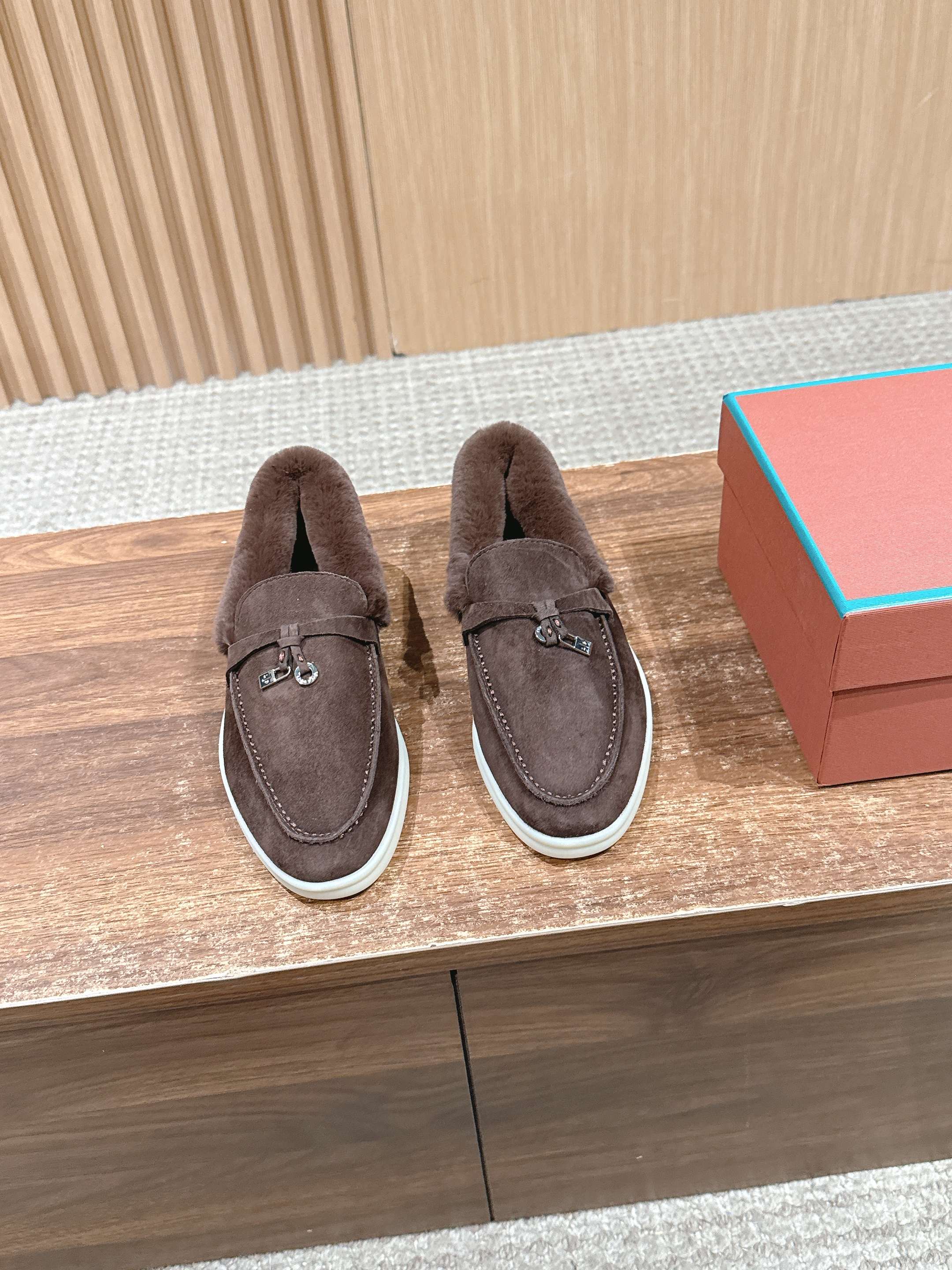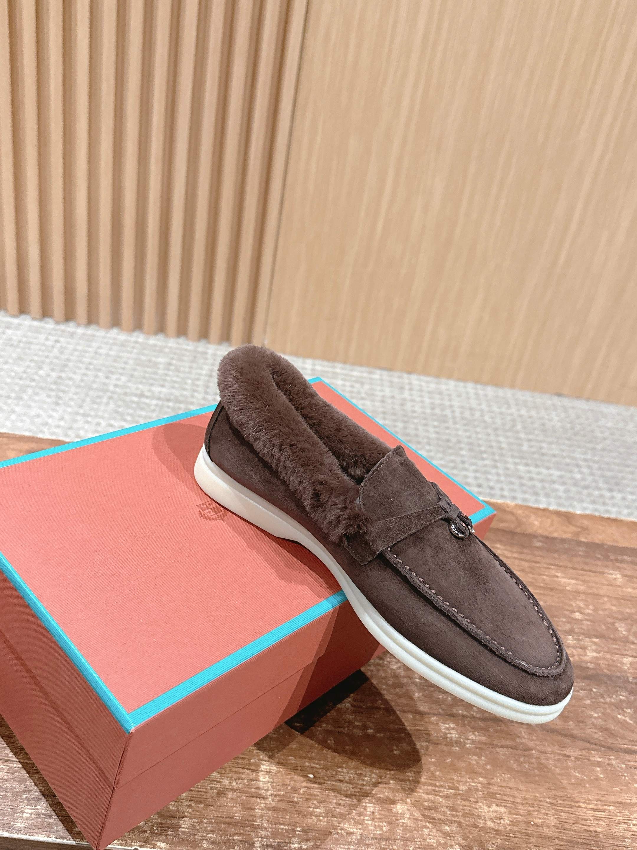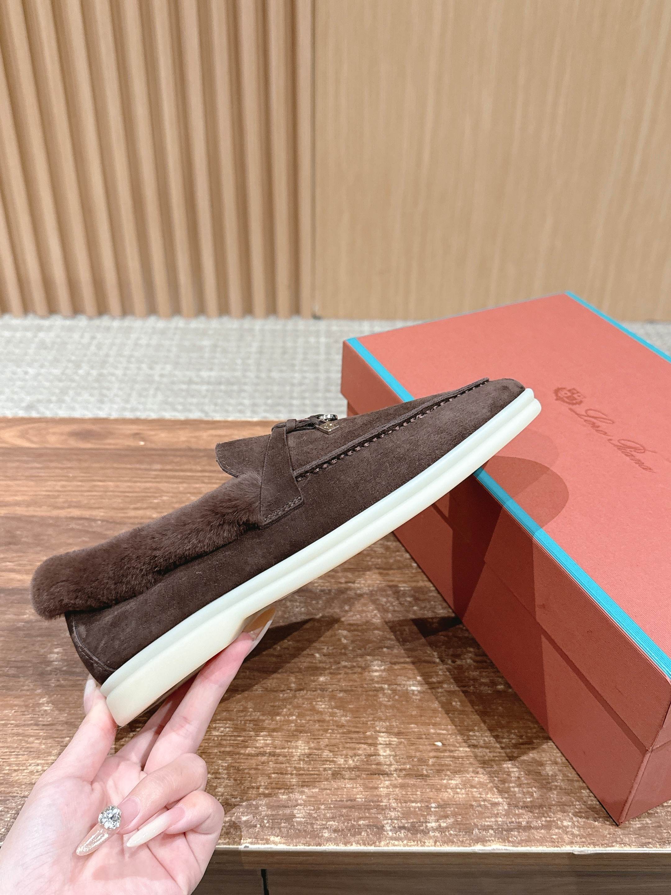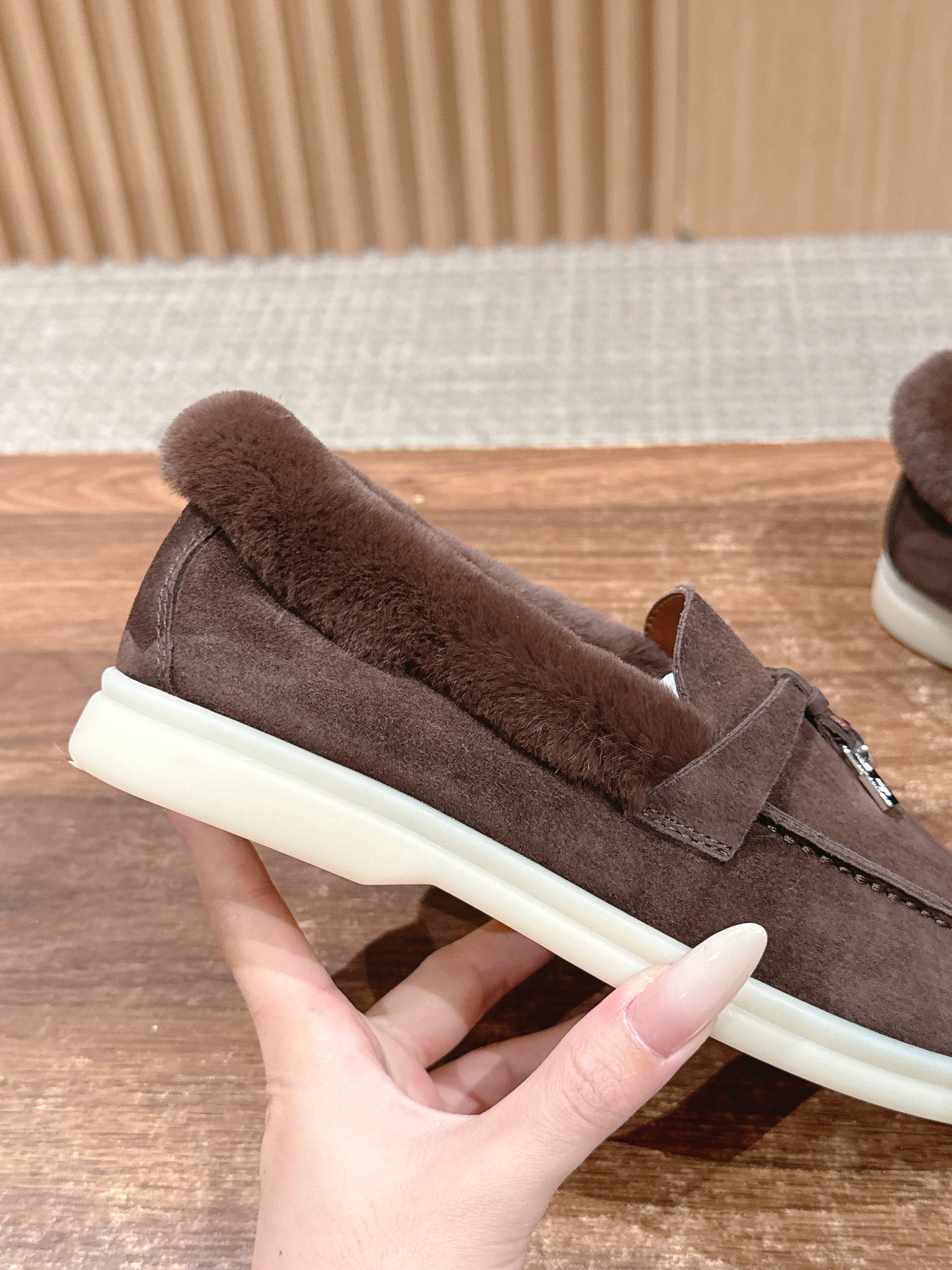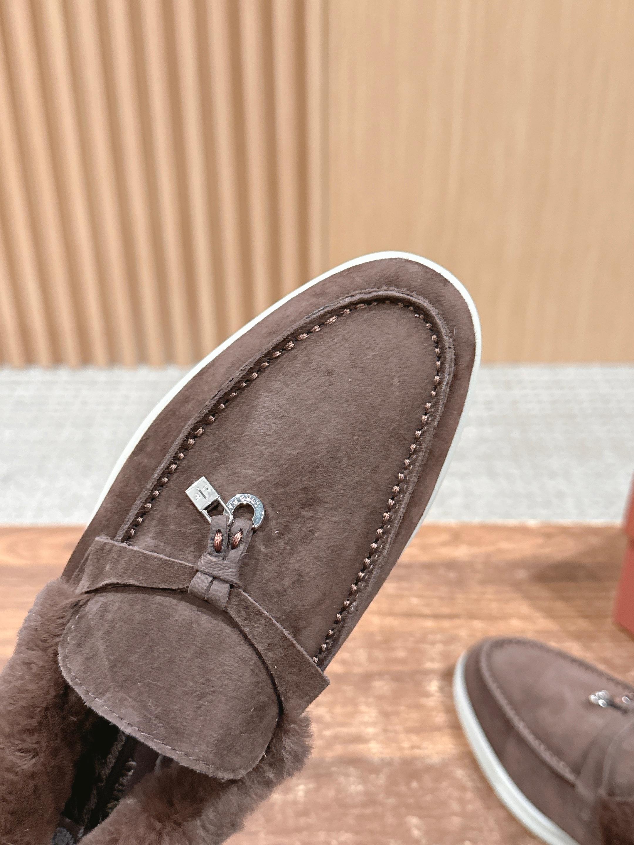 这款鞋子是AAAAA 1:1 质量 (非常棒). 使用了和原版一模一样的材料. 商标部分也保持了和洛罗皮亚纳/Loro Piana一样. 图片拍摄是实物鞋子拍摄, 您所收到的实物保证和我们图片一模一样.