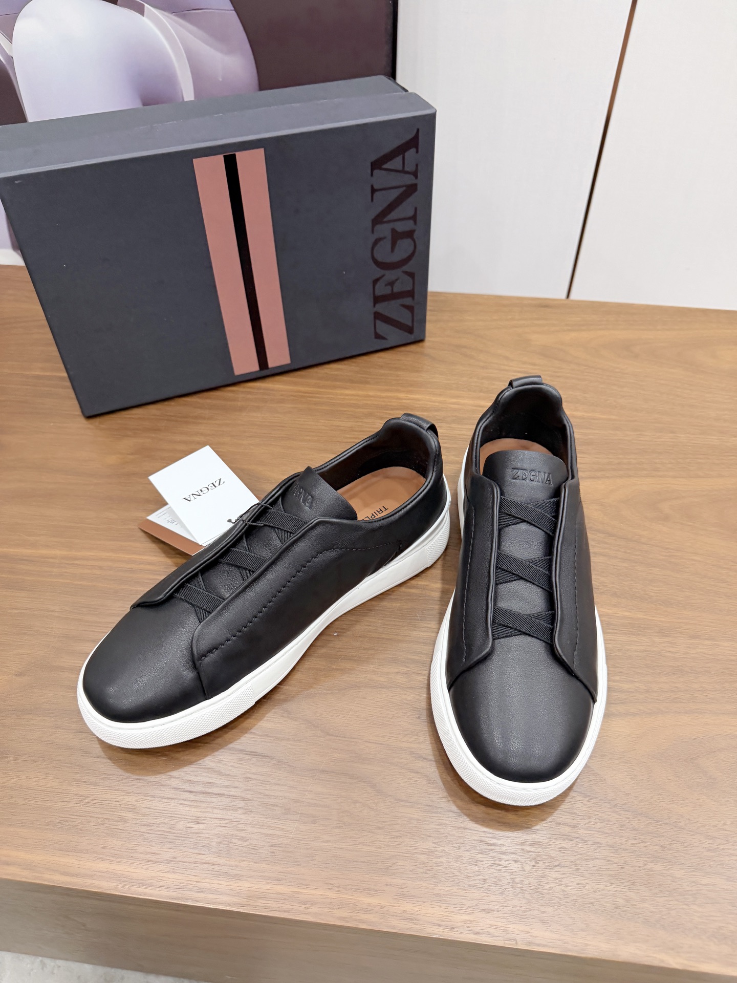 这款鞋子是AAAAA 1:1 质量 (非常棒). 使用了和原版一模一样的材料. 商标部分也保持了和杰尼亚/Zegna一样. 图片拍摄是实物鞋子拍摄, 您所收到的实物保证和我们图片一模一样.