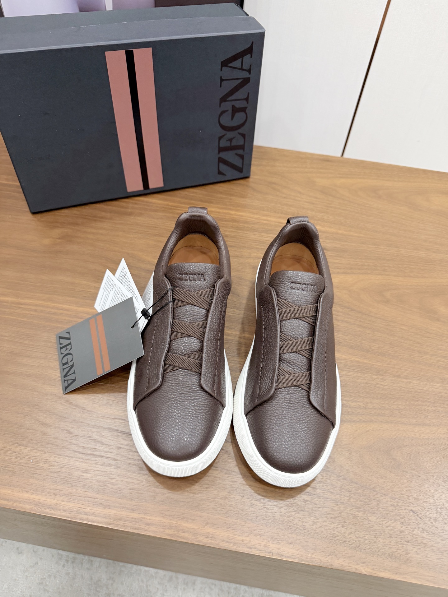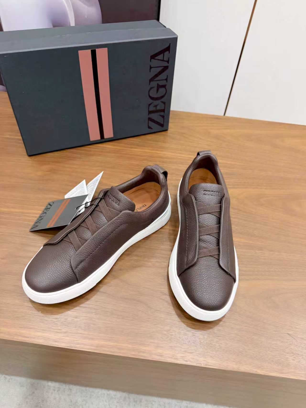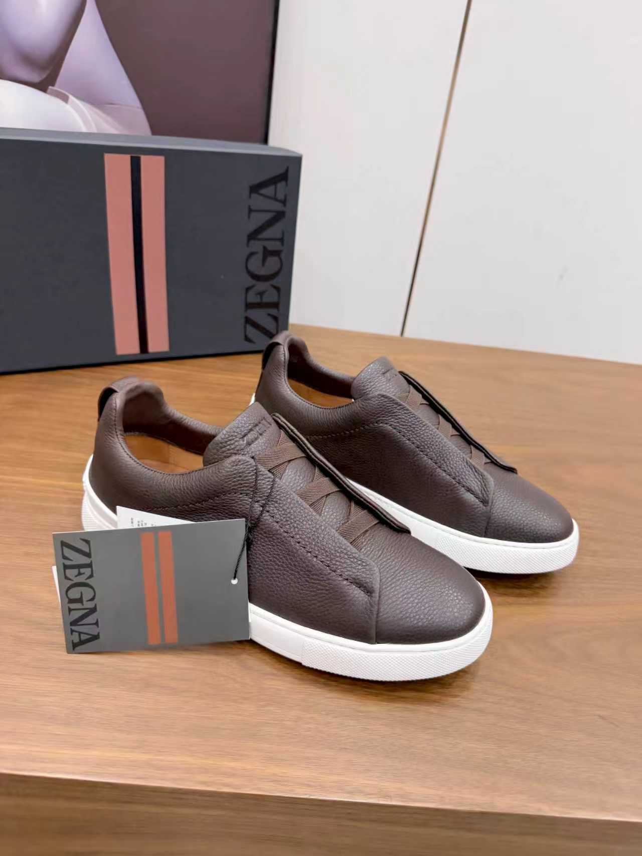 这款鞋子是AAAAA 1:1 质量 (非常棒). 使用了和原版一模一样的材料. 商标部分也保持了和杰尼亚/Zegna一样. 图片拍摄是实物鞋子拍摄, 您所收到的实物保证和我们图片一模一样.