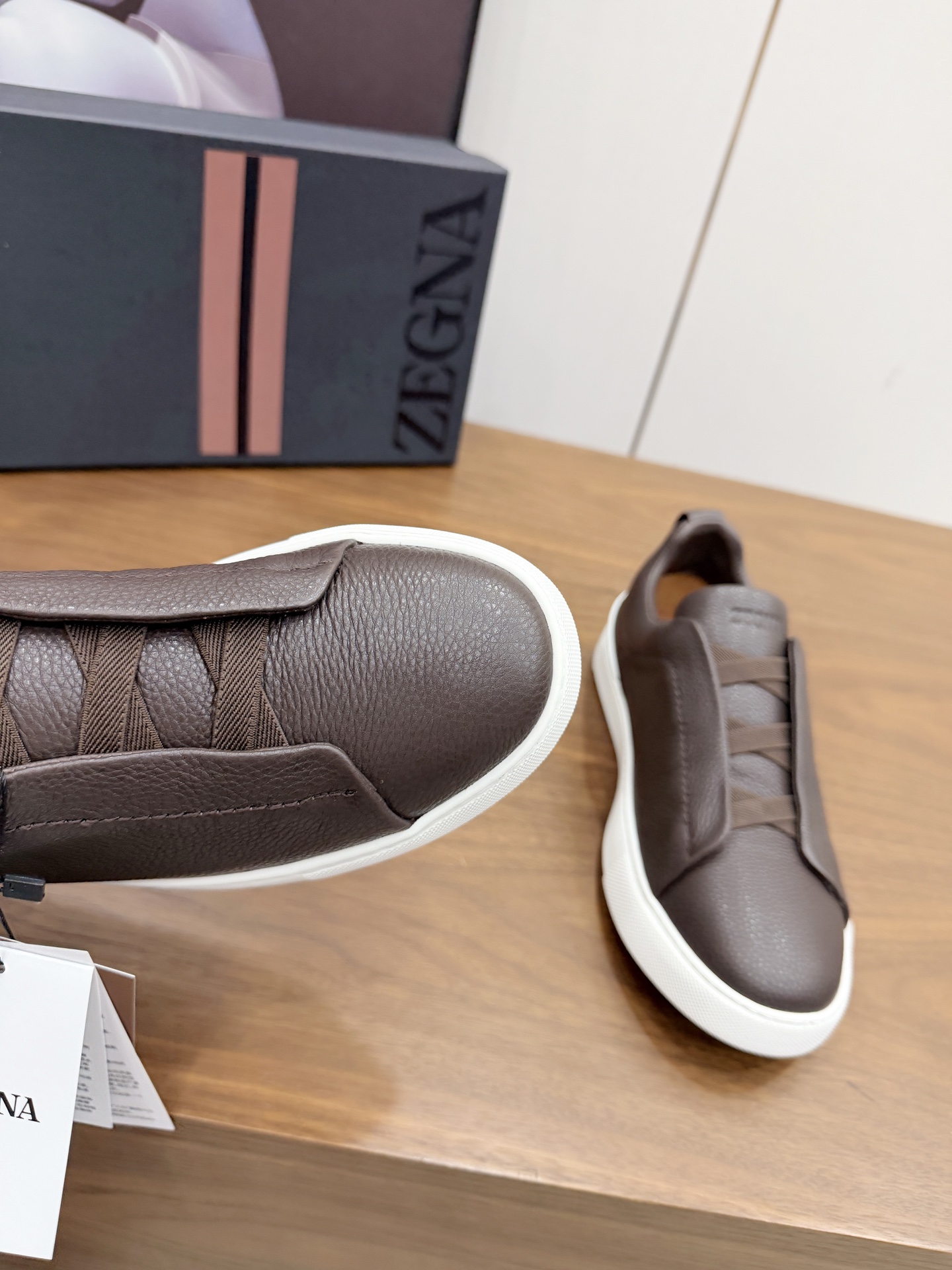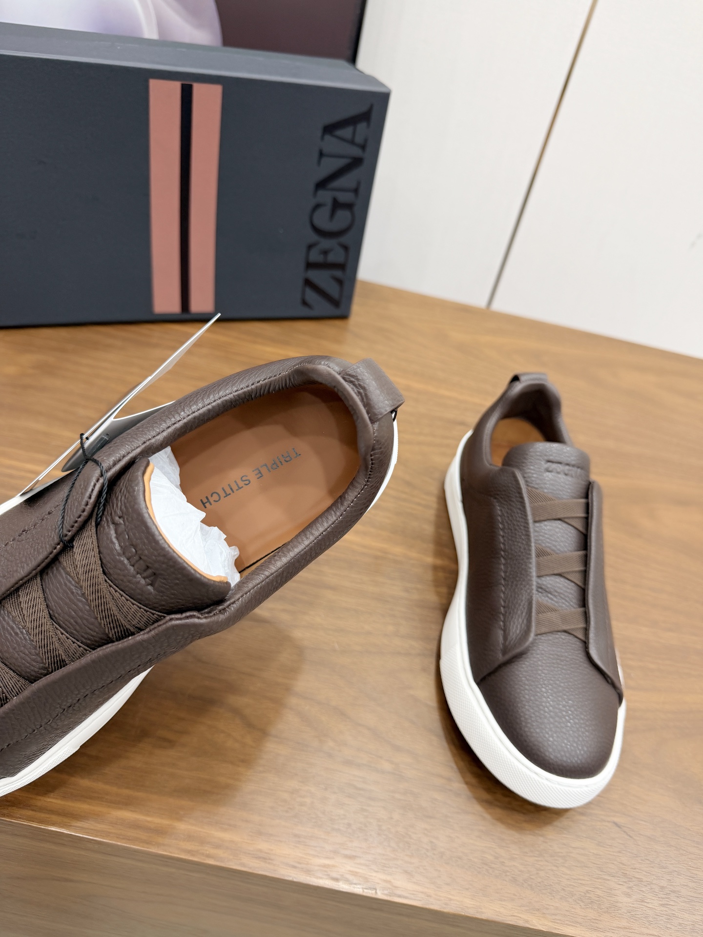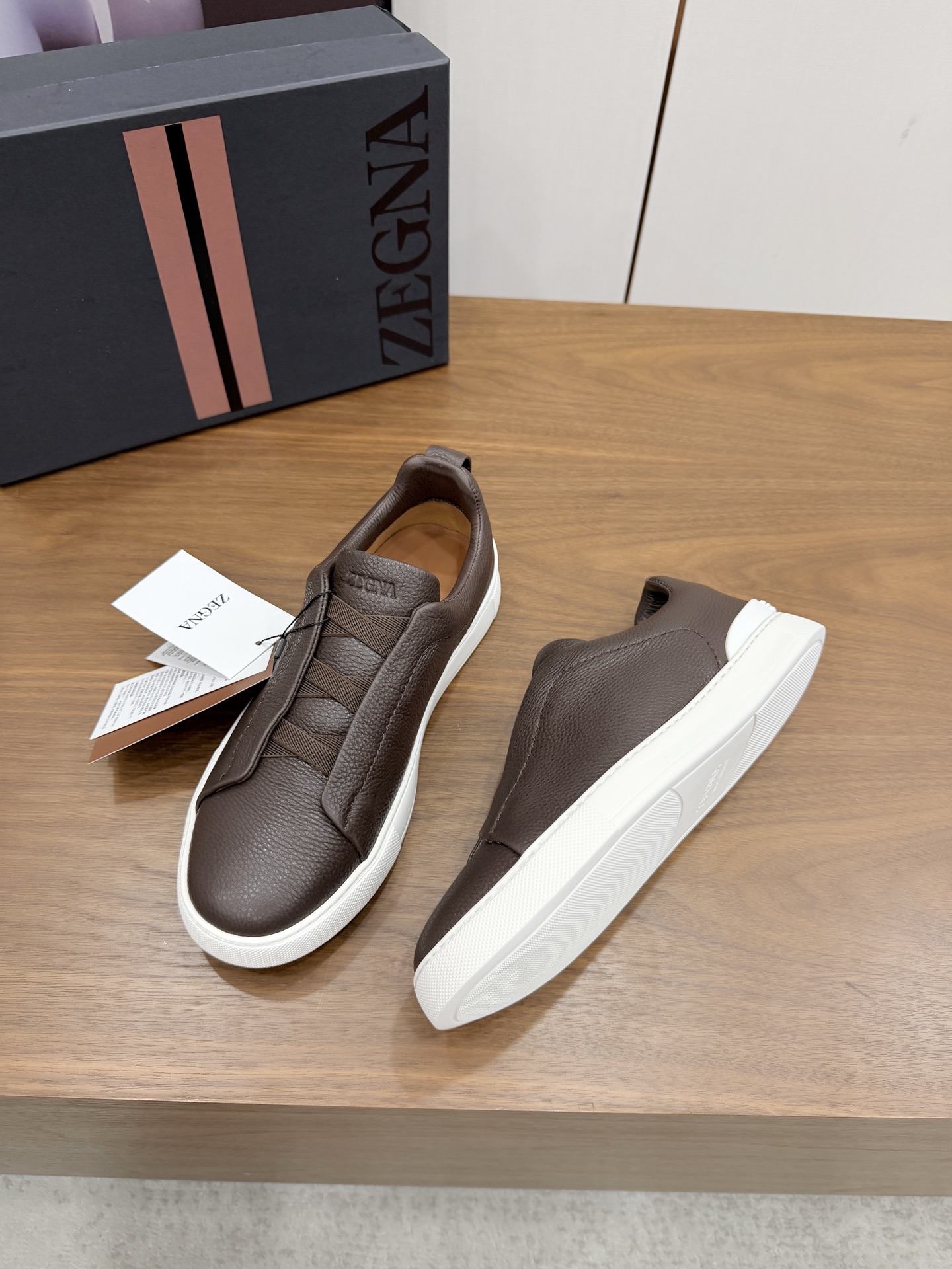 这款鞋子是AAAAA 1:1 质量 (非常棒). 使用了和原版一模一样的材料. 商标部分也保持了和杰尼亚/Zegna一样. 图片拍摄是实物鞋子拍摄, 您所收到的实物保证和我们图片一模一样.