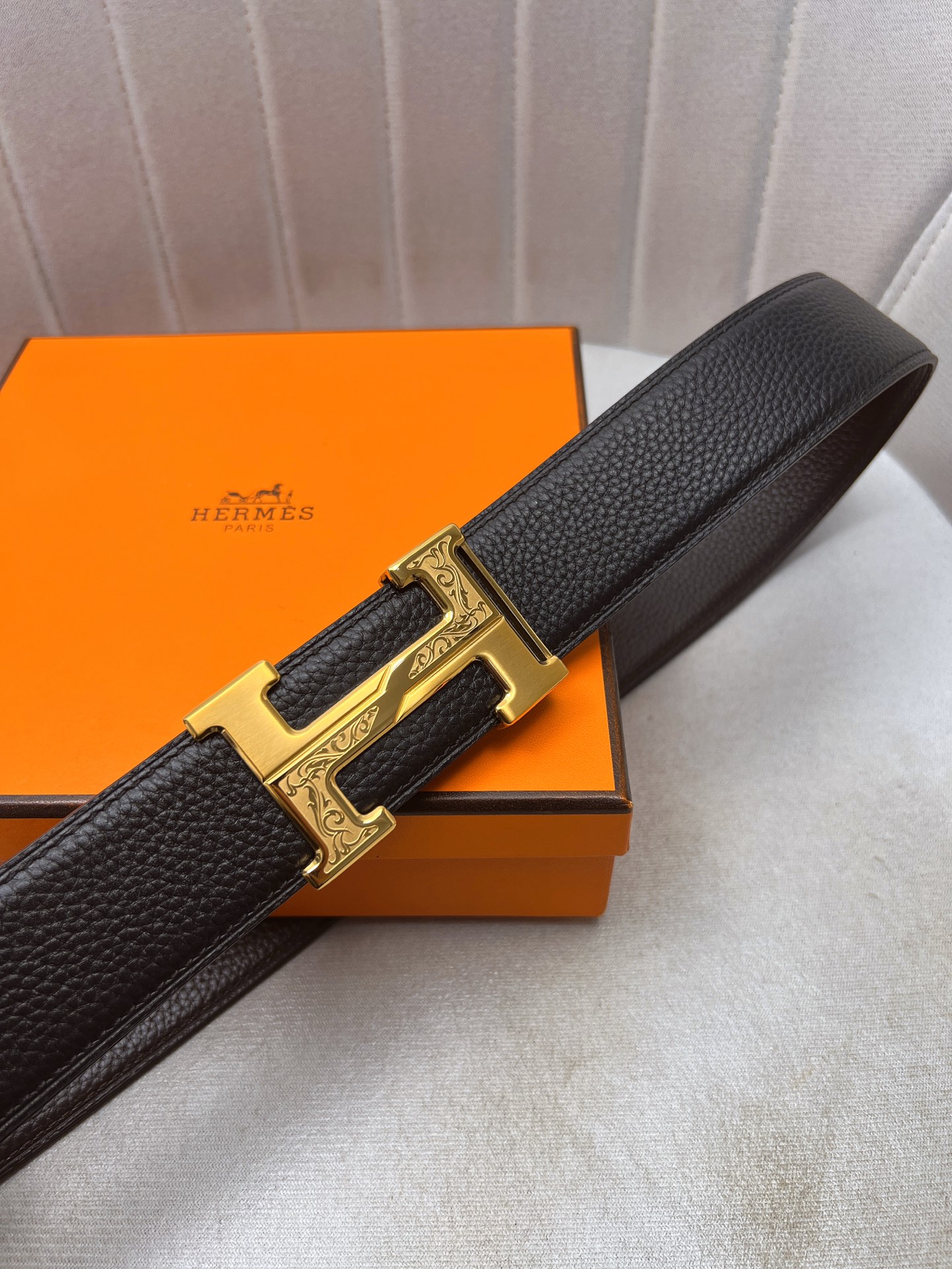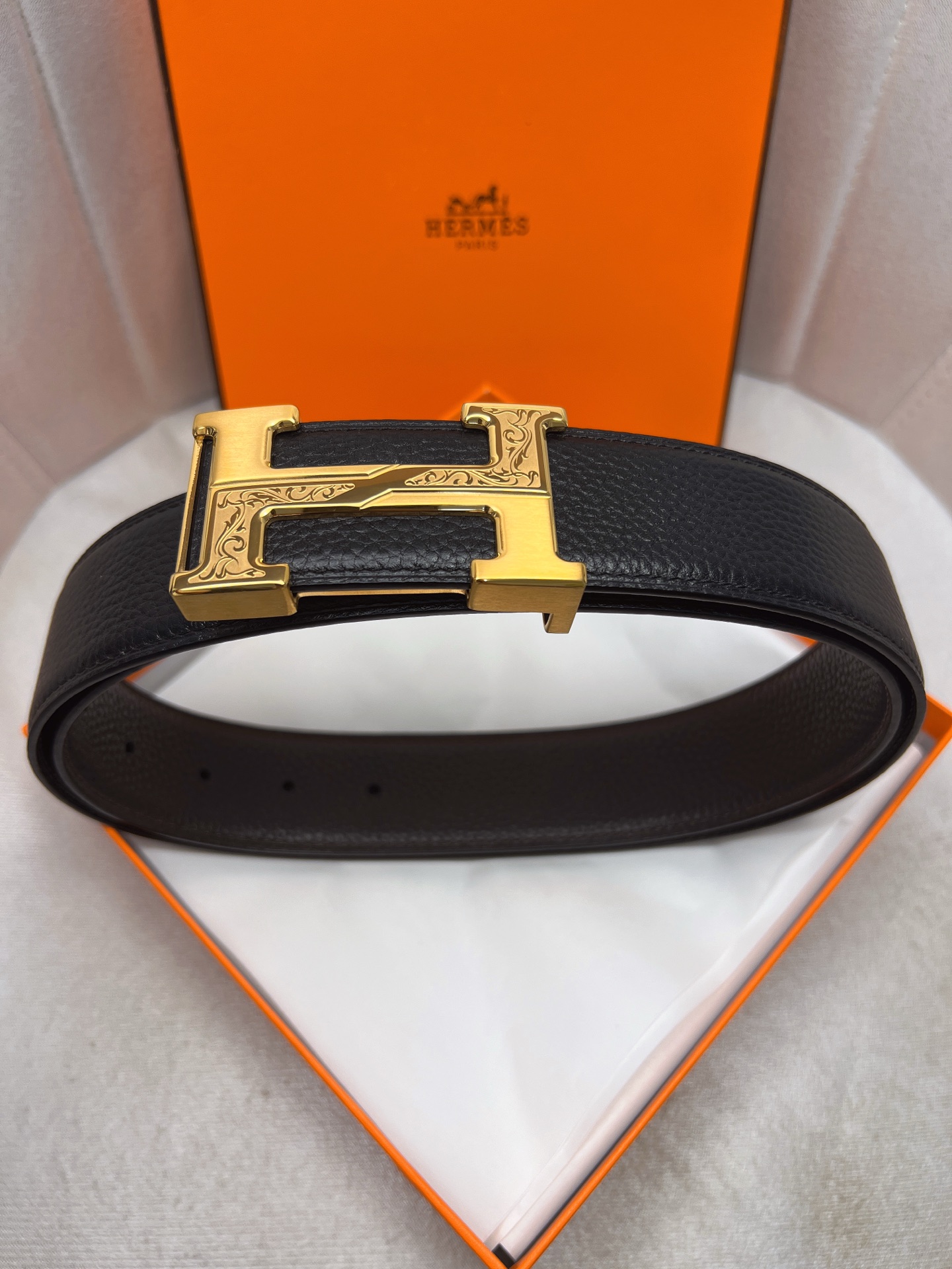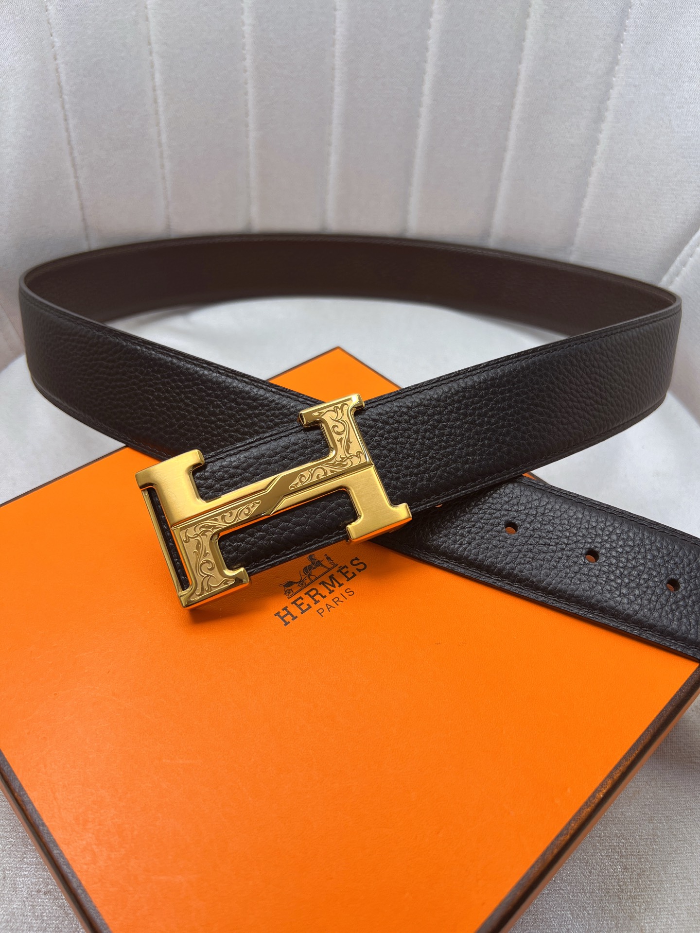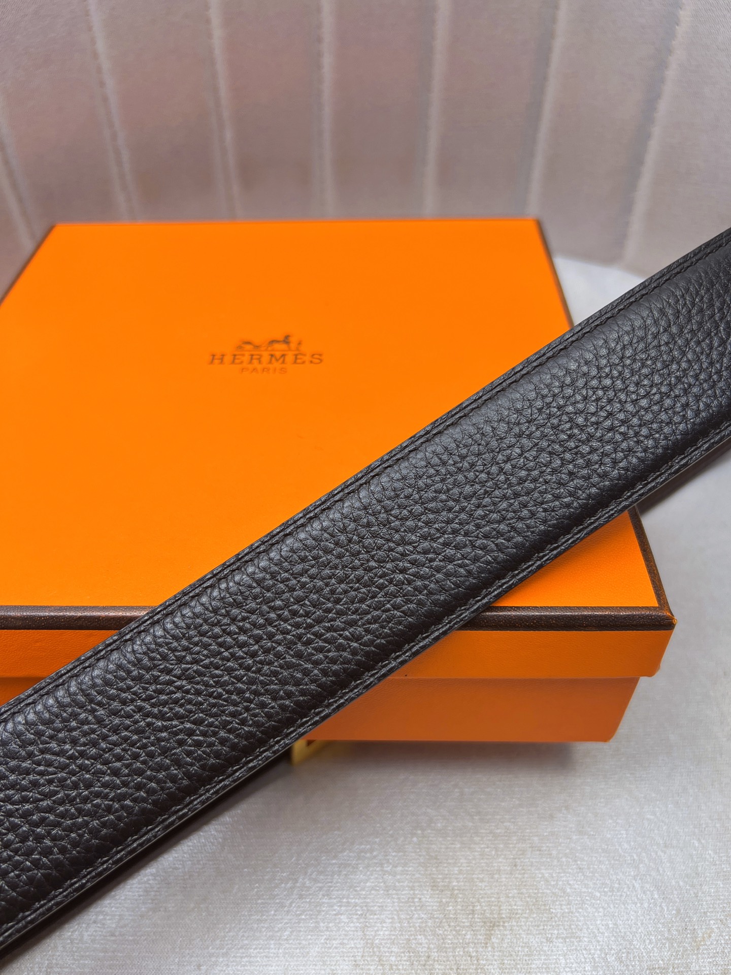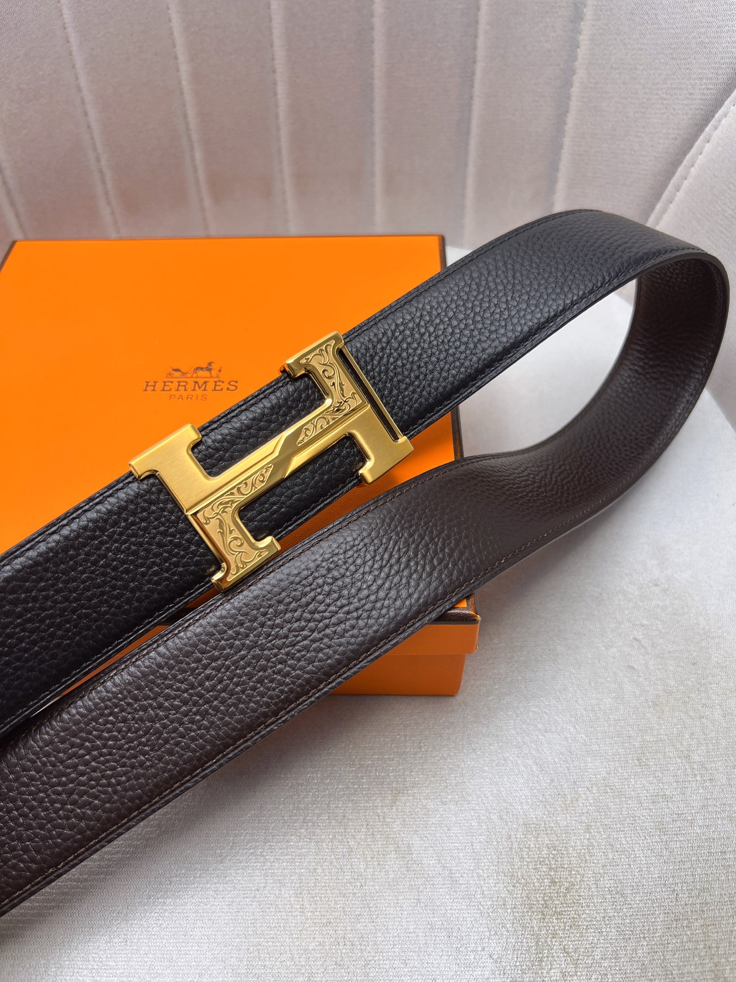 这款皮带是AAAAA 1:1 质量 (非常棒). 使用了和原版一模一样的材料. 商标部分也保持了和爱马仕/Hermes一样. 图片拍摄是实物皮带拍摄, 您所收到的实物保证和我们图片一模一样.