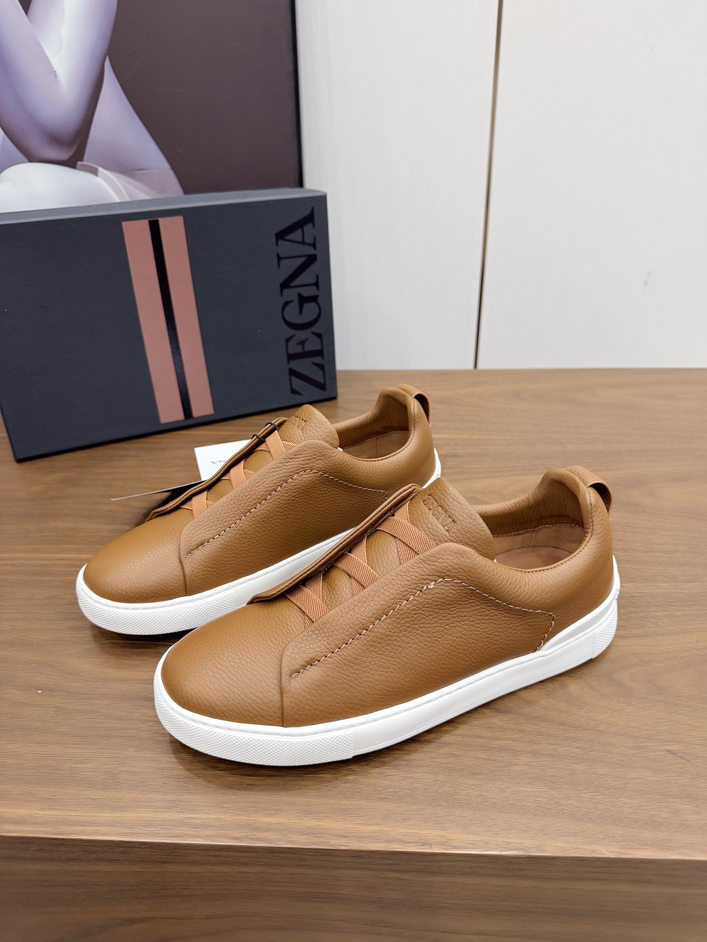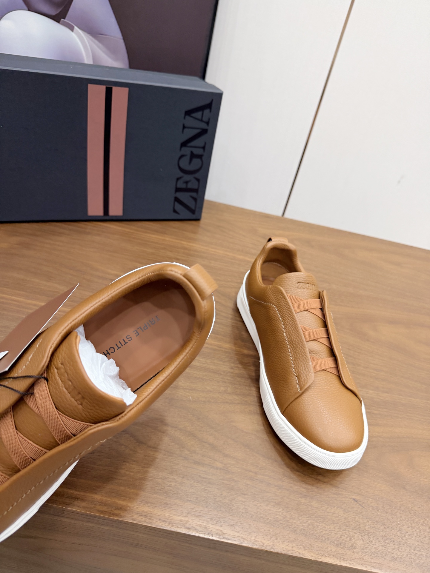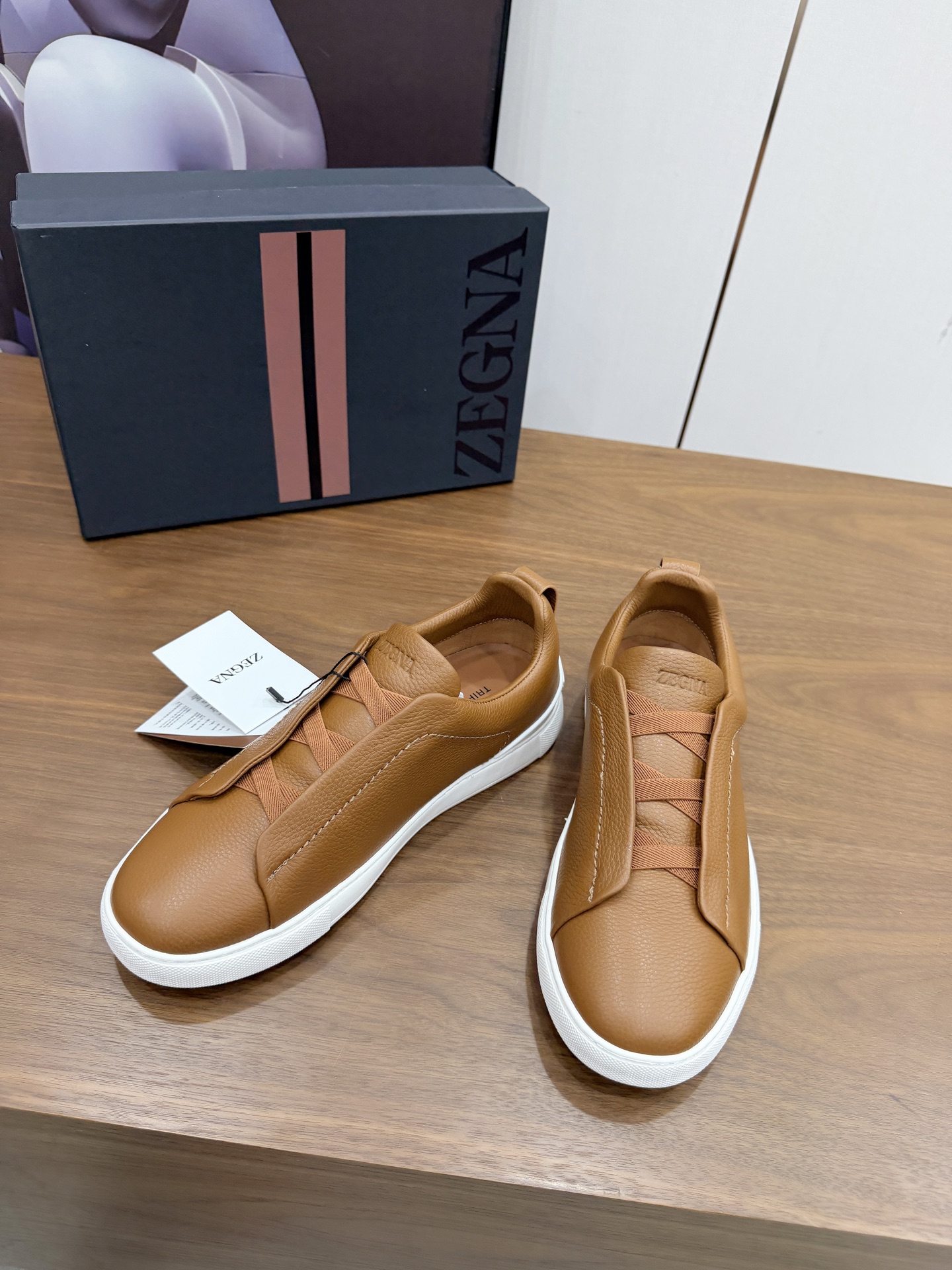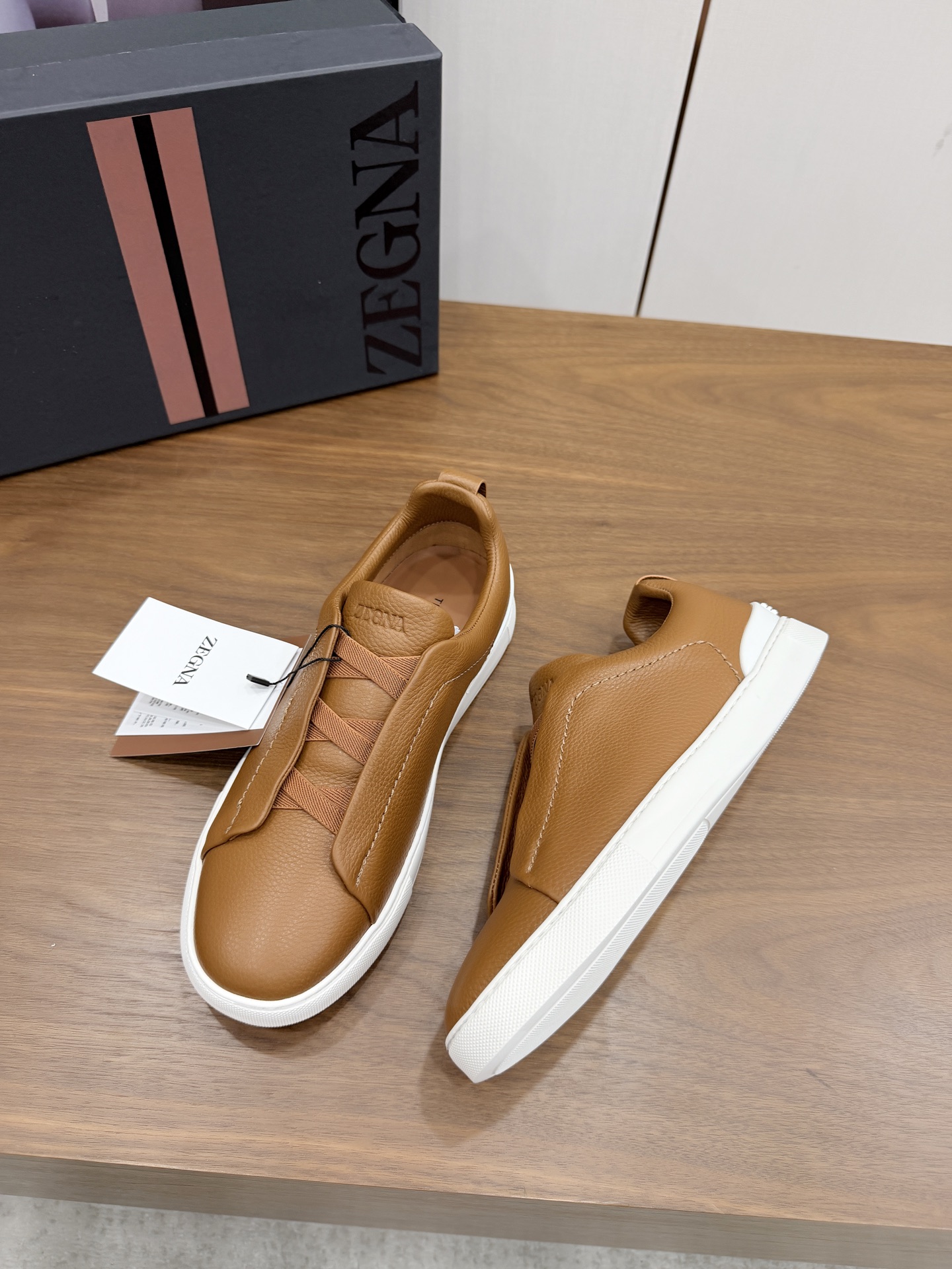 这款鞋子是AAAAA 1:1 质量 (非常棒). 使用了和原版一模一样的材料. 商标部分也保持了和杰尼亚/Zegna一样. 图片拍摄是实物鞋子拍摄, 您所收到的实物保证和我们图片一模一样.