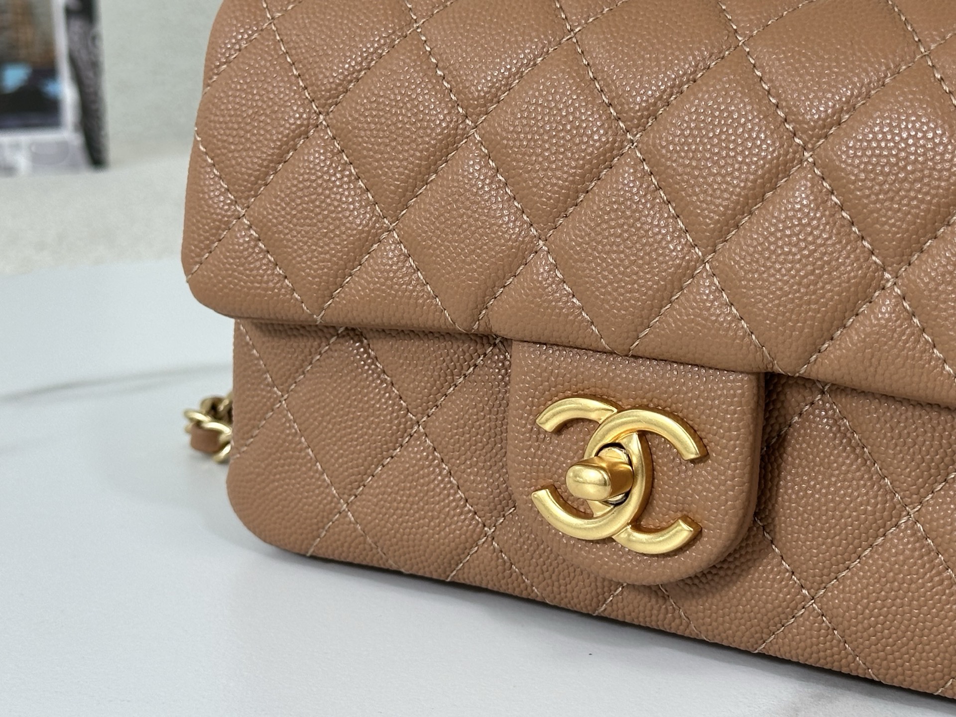 这款包包是AAAAA 1:1 质量 (非常棒). 使用了和原版一模一样的材料. 商标部分也保持了和香奈儿/Chanel一样. 图片拍摄是实物包包拍摄, 您所收到的实物保证和我们图片一模一样.