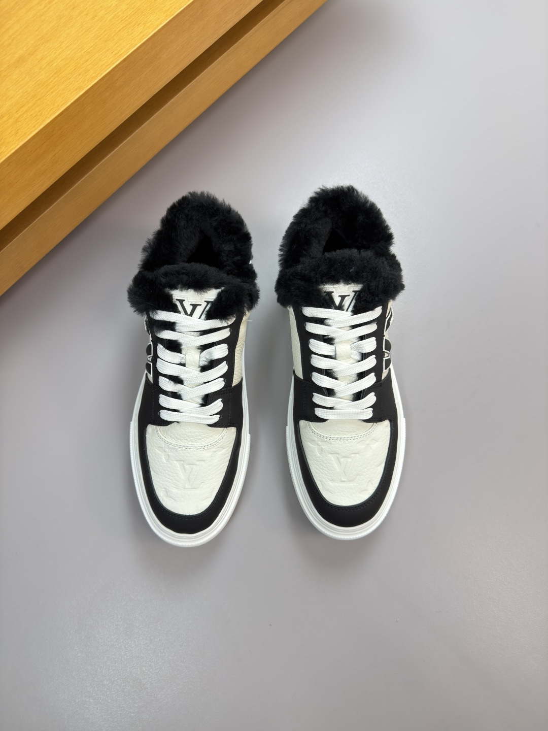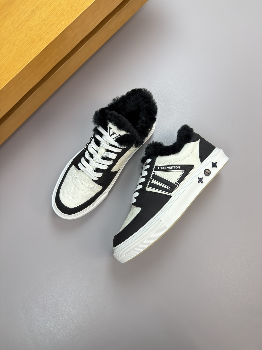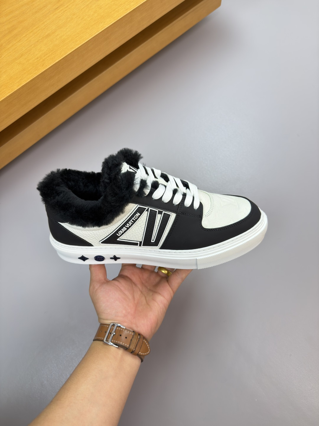 这款鞋子是AAAAA 1:1 质量 (非常棒). 使用了和原版一模一样的材料. 商标部分也保持了和路易威登/Louis Vuitton一样. 图片拍摄是实物鞋子拍摄, 您所收到的实物保证和我们图片一模一样.