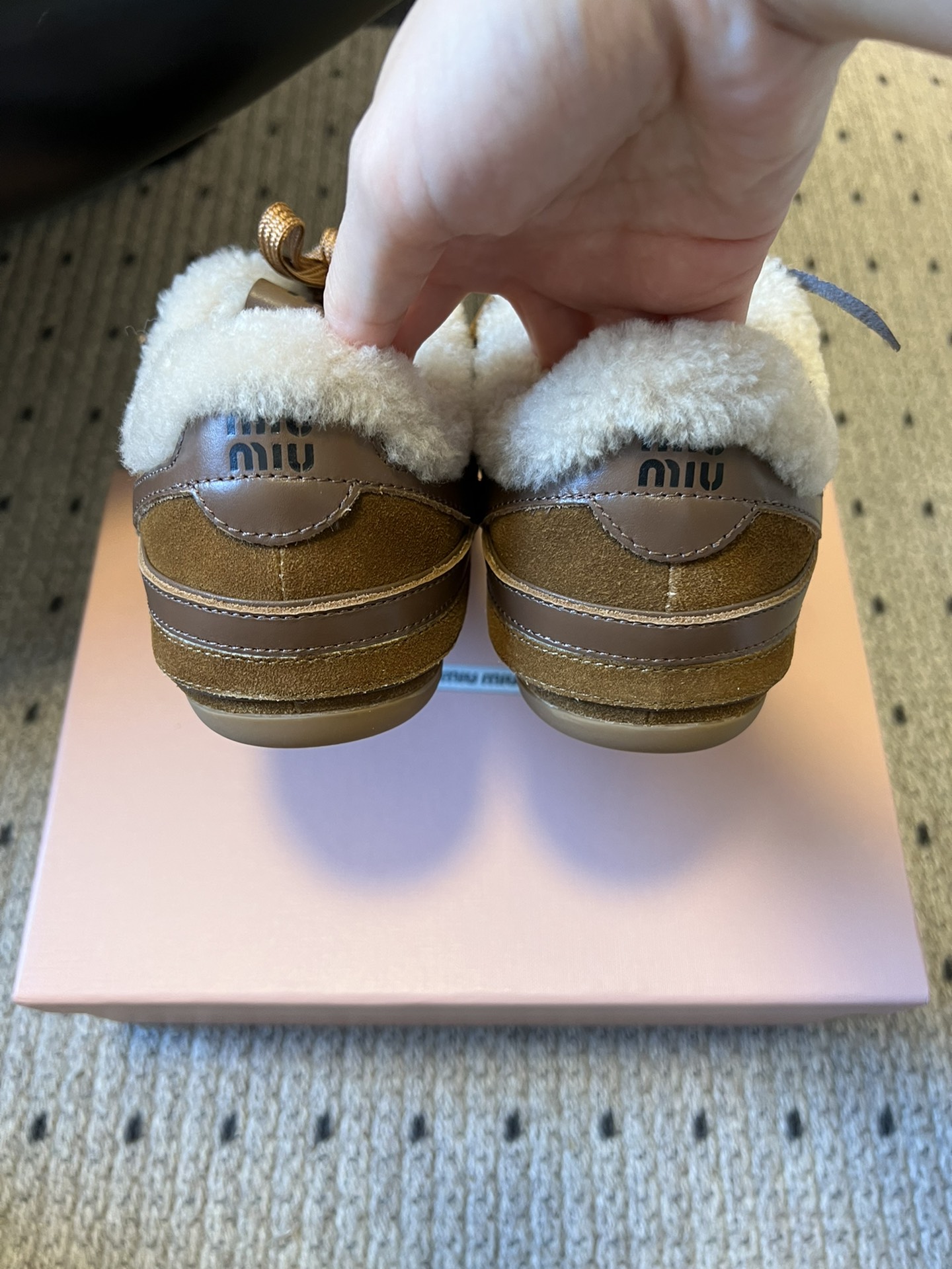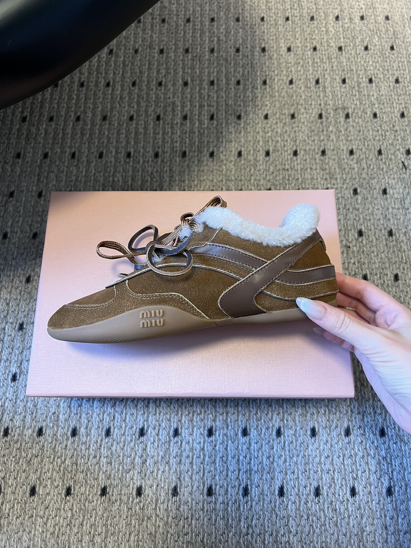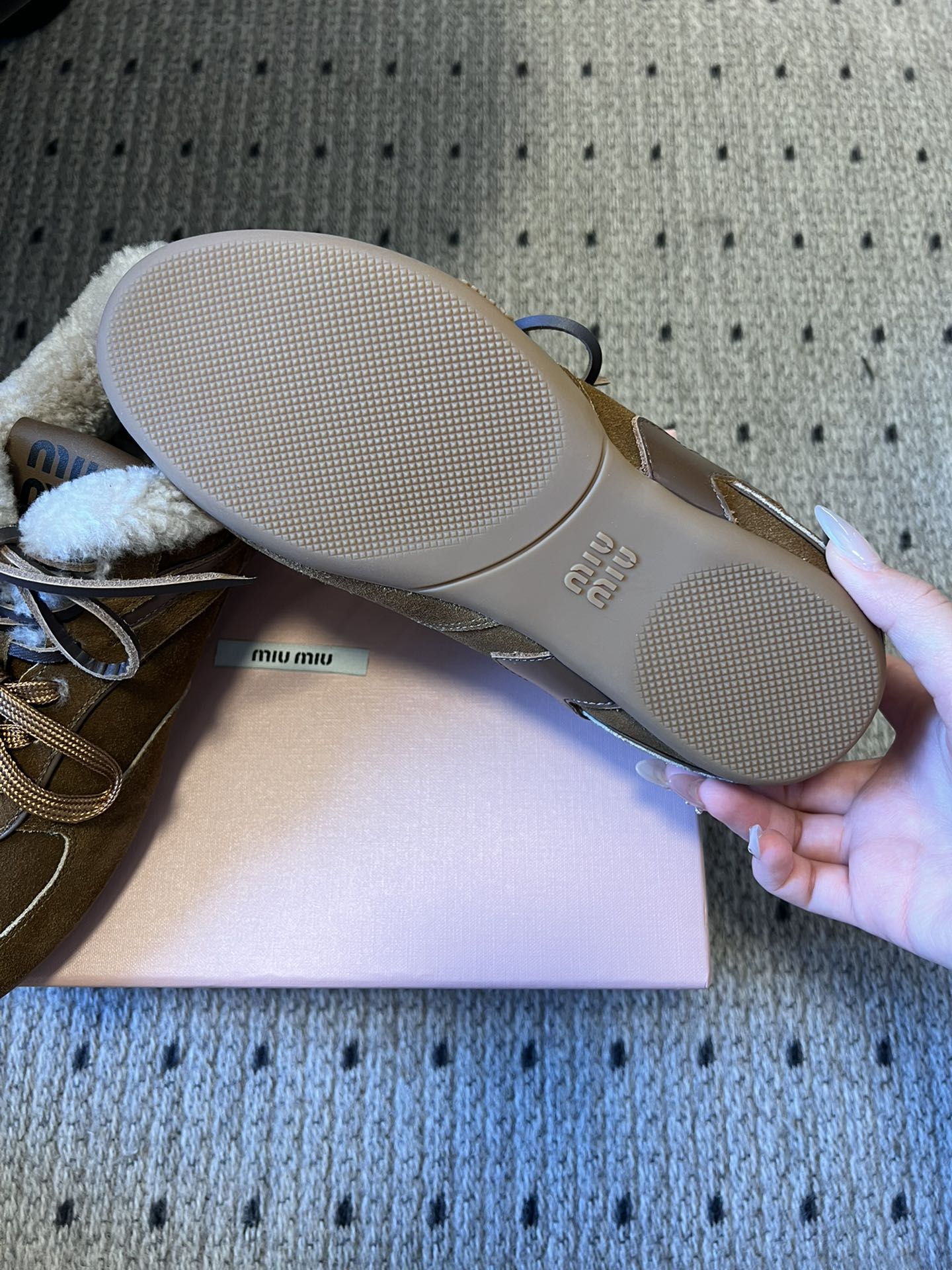 这款鞋子是AAAAA 1:1 质量 (非常棒). 使用了和原版一模一样的材料. 商标部分也保持了和缪缪/Miu Miu一样. 图片拍摄是实物鞋子拍摄, 您所收到的实物保证和我们图片一模一样.