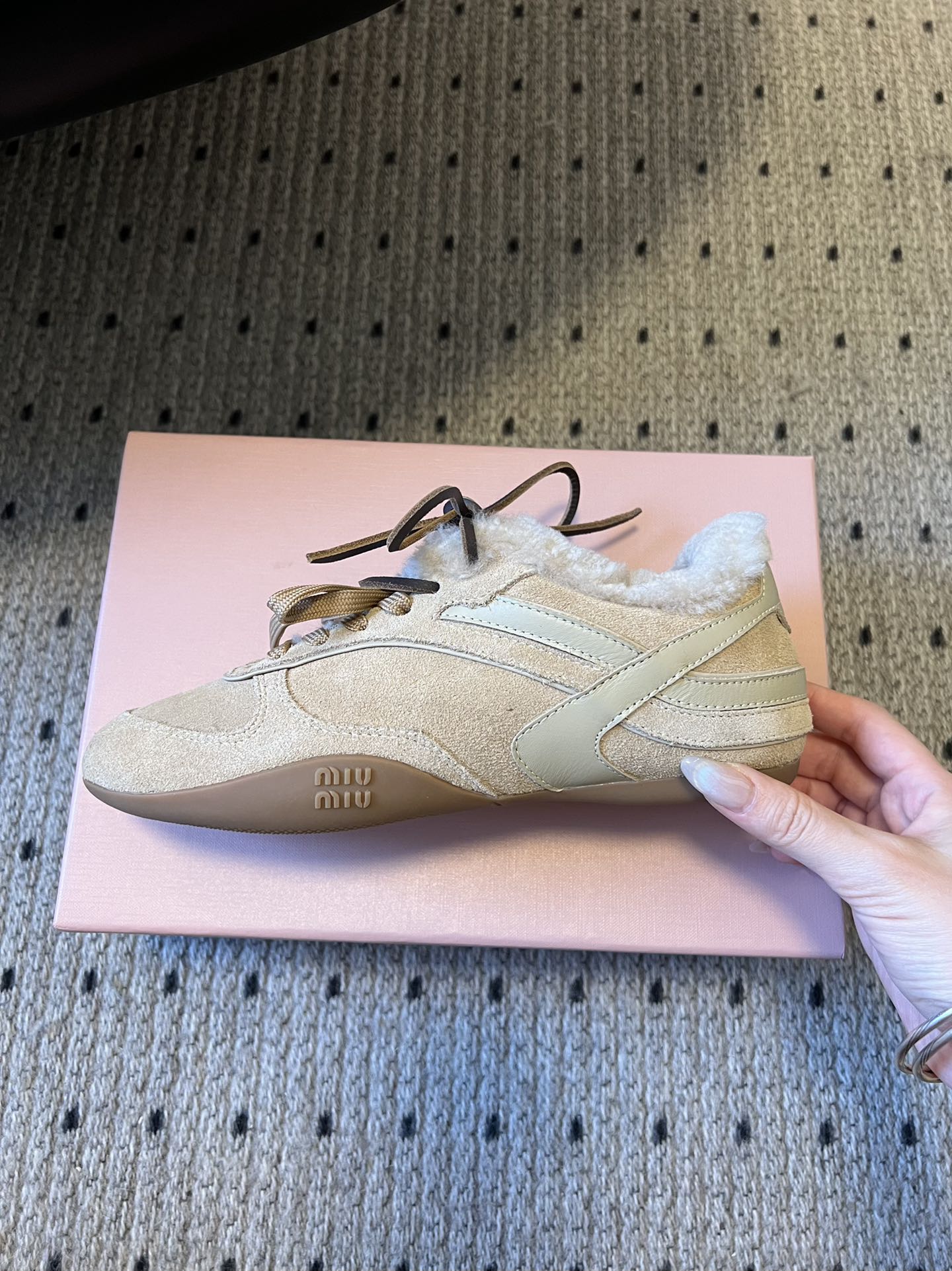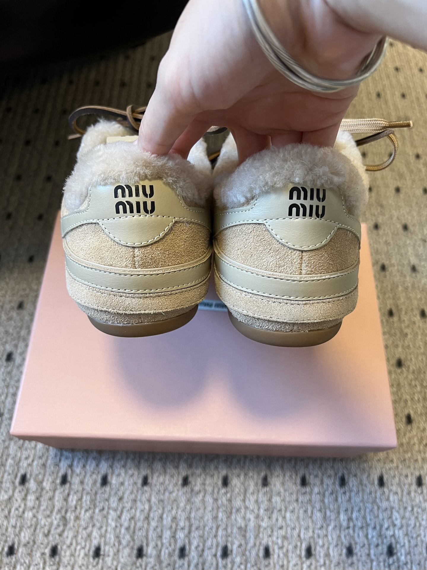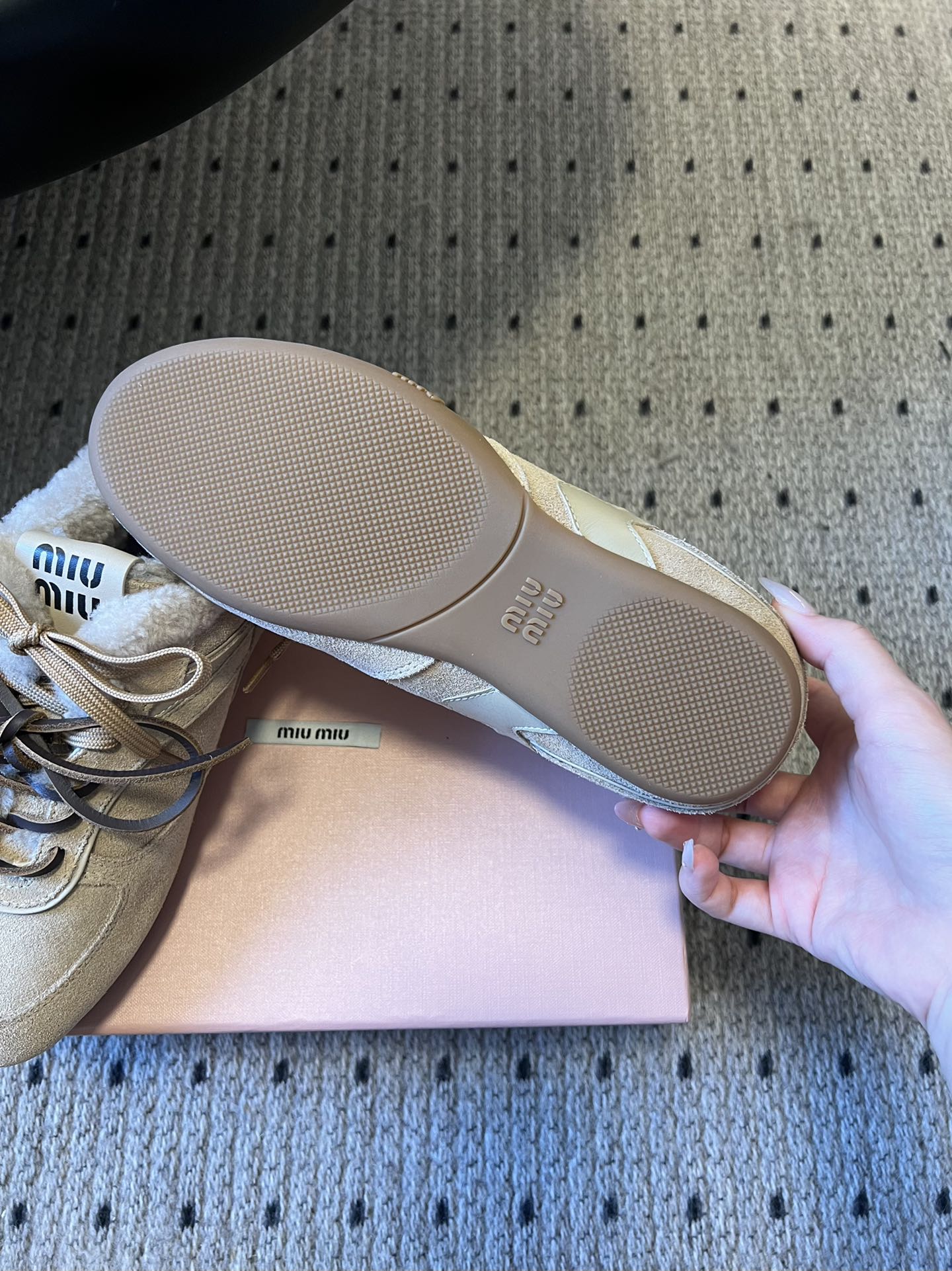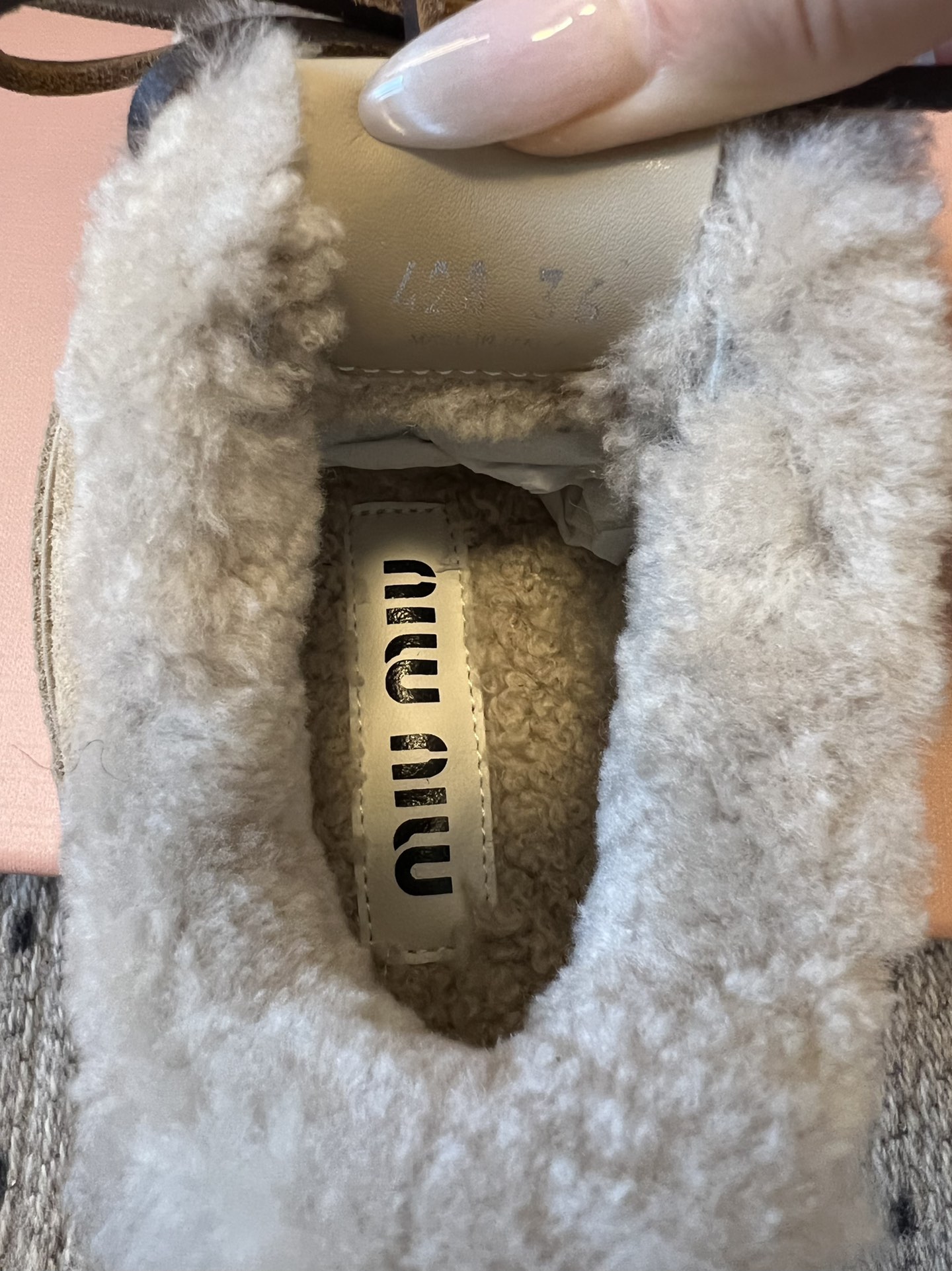 这款鞋子是AAAAA 1:1 质量 (非常棒). 使用了和原版一模一样的材料. 商标部分也保持了和缪缪/Miu Miu一样. 图片拍摄是实物鞋子拍摄, 您所收到的实物保证和我们图片一模一样.
