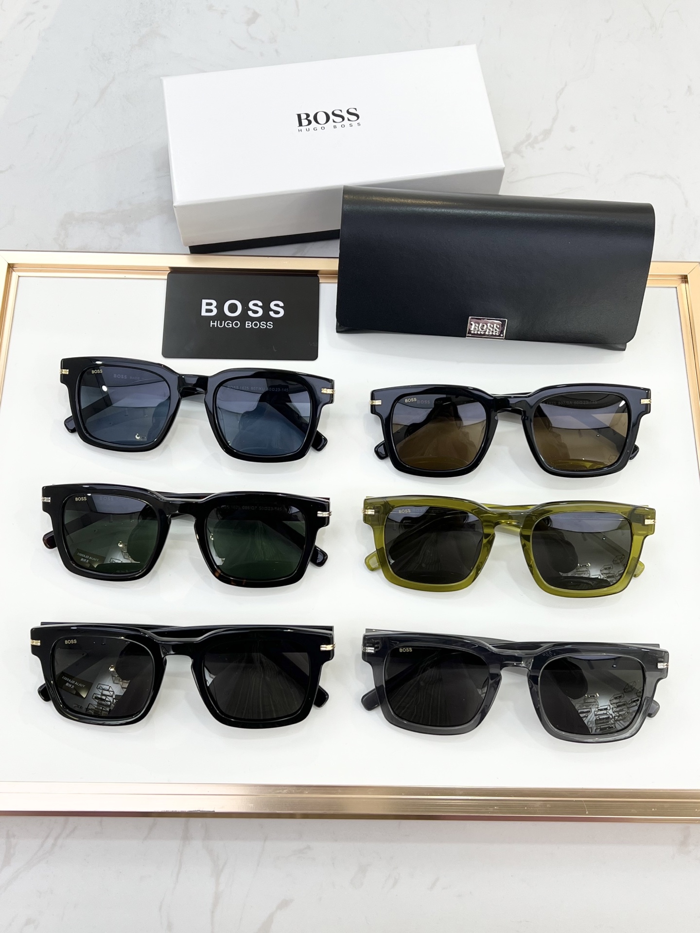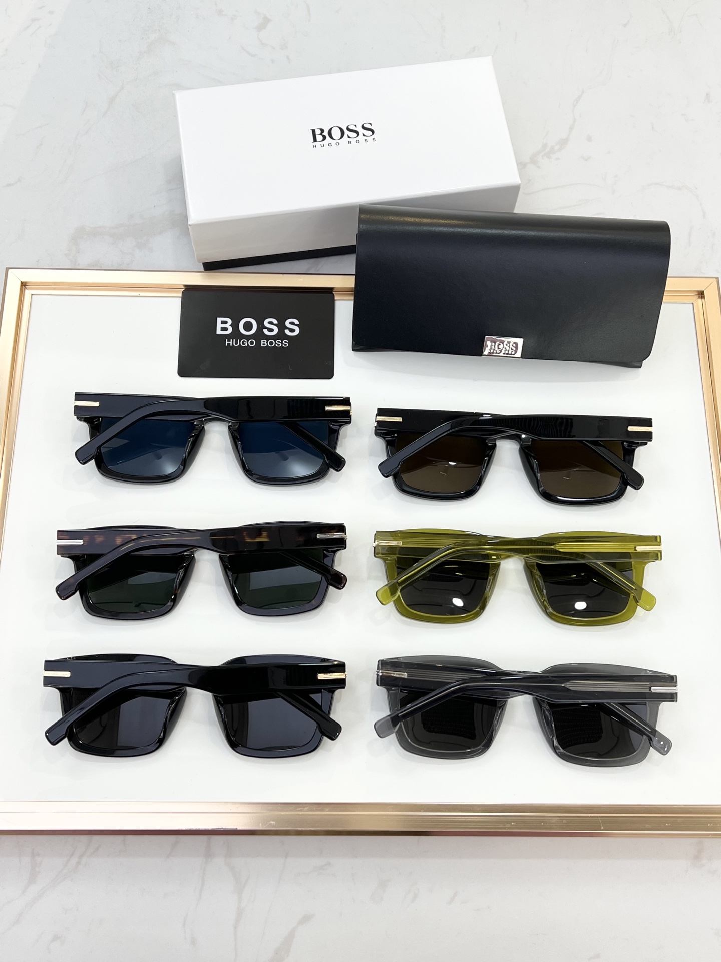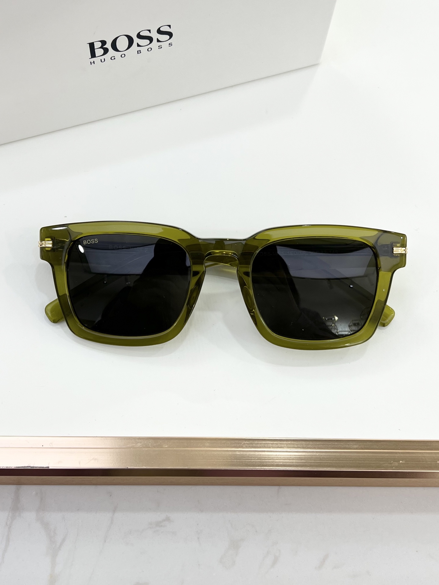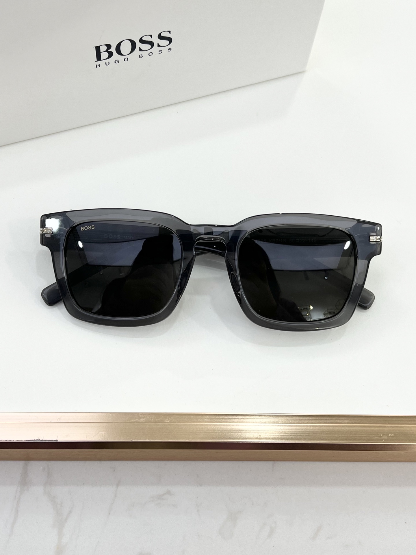 这款太阳眼镜是AAAAA 1:1 质量 (非常棒). 使用了和原版一模一样的材料. 商标部分也保持了和BOSS一样. 图片拍摄是实物太阳眼镜拍摄, 您所收到的实物保证和我们图片一模一样.
