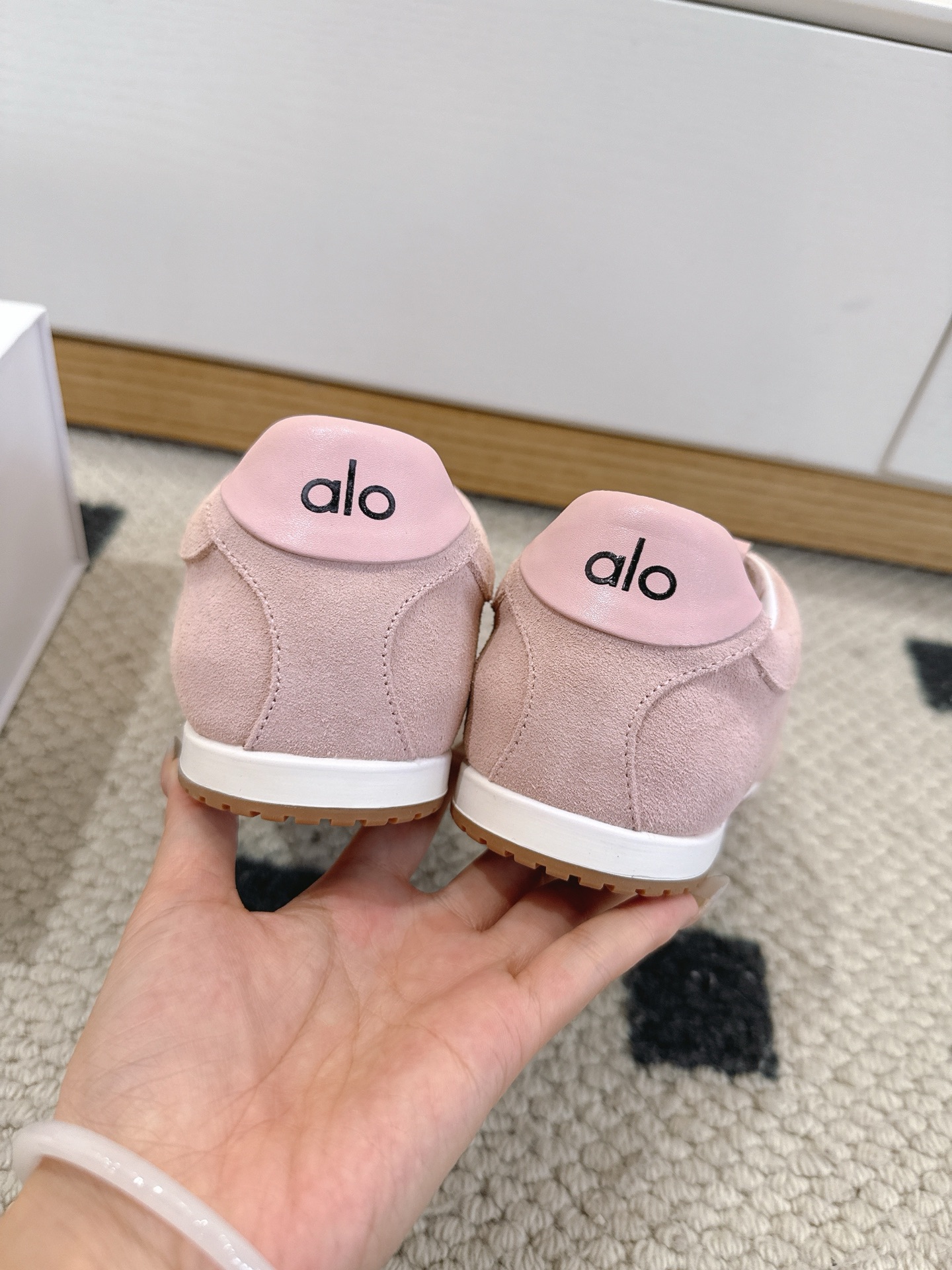 这款鞋子是AAAAA 1:1 质量 (非常棒). 使用了和原版一模一样的材料. 商标部分也保持了和Alo Yoga一样. 图片拍摄是实物鞋子拍摄, 您所收到的实物保证和我们图片一模一样.