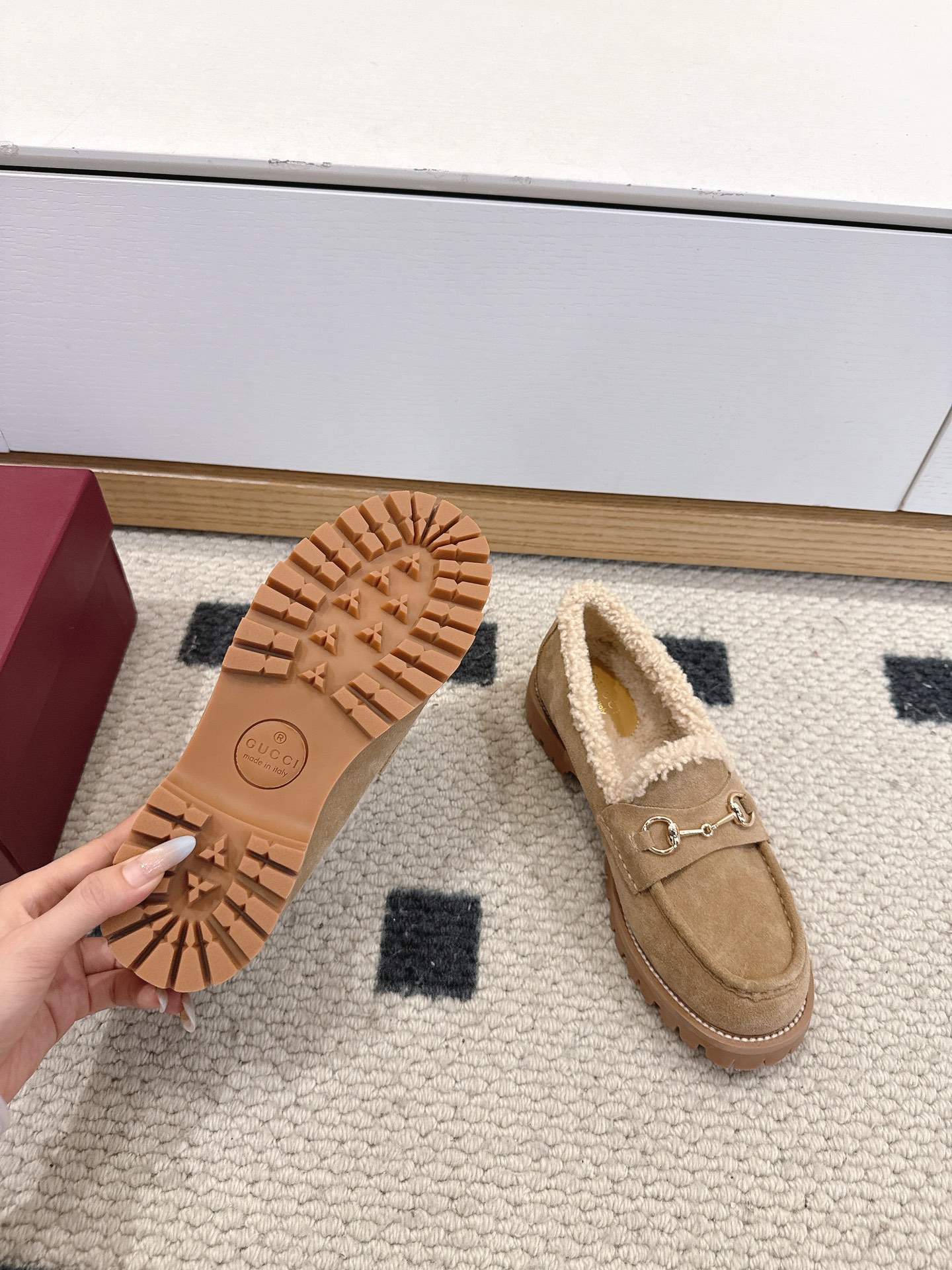 这款鞋子是AAAAA 1:1 质量 (非常棒). 使用了和原版一模一样的材料. 商标部分也保持了和古奇/Gucci一样. 图片拍摄是实物鞋子拍摄, 您所收到的实物保证和我们图片一模一样.