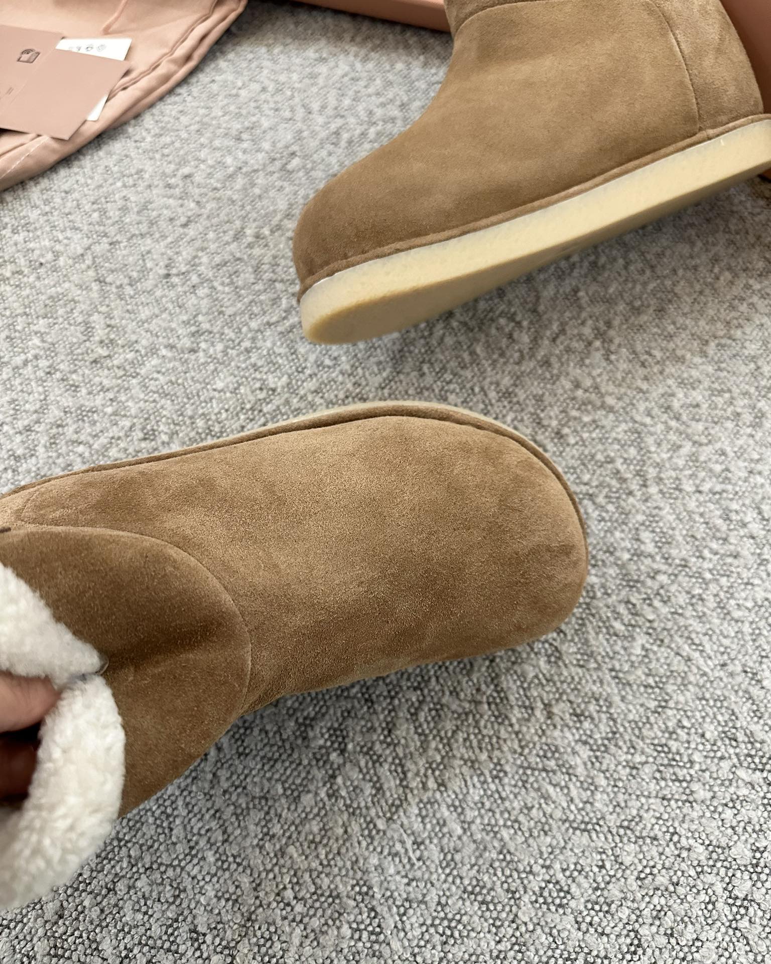 这款鞋子是AAAAA 1:1 质量 (非常棒). 使用了和原版一模一样的材料. 商标部分也保持了和UGG雪地靴一样. 图片拍摄是实物鞋子拍摄, 您所收到的实物保证和我们图片一模一样.